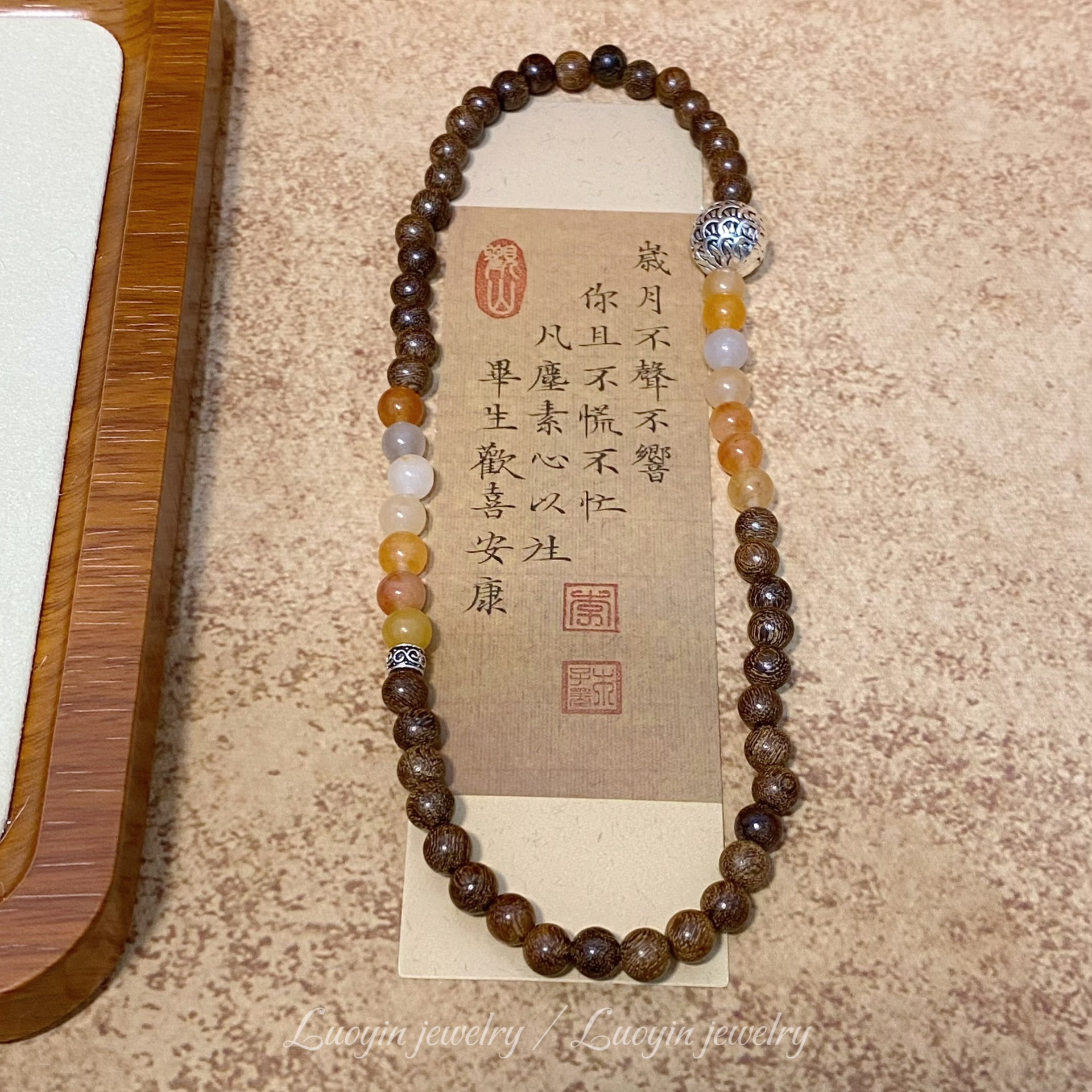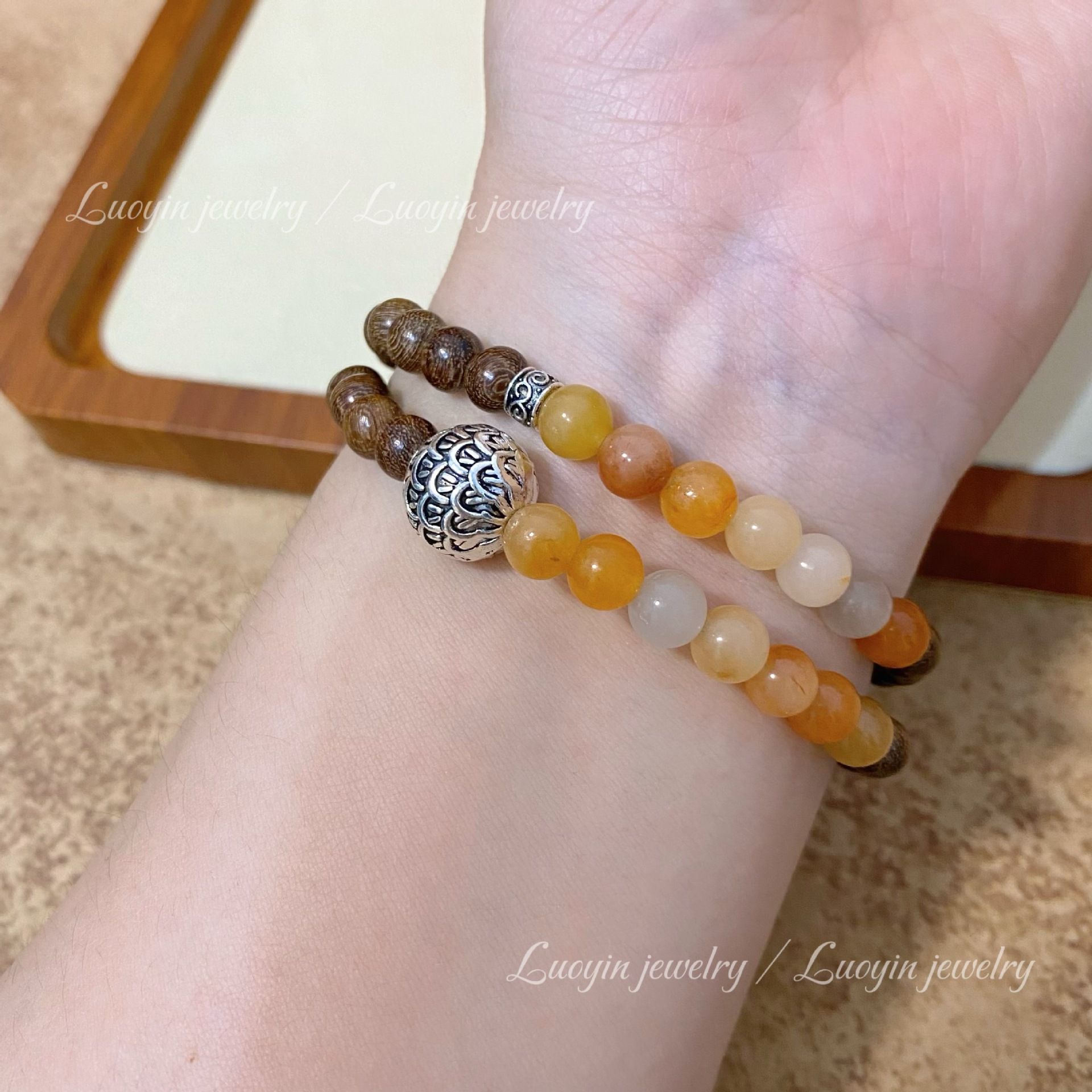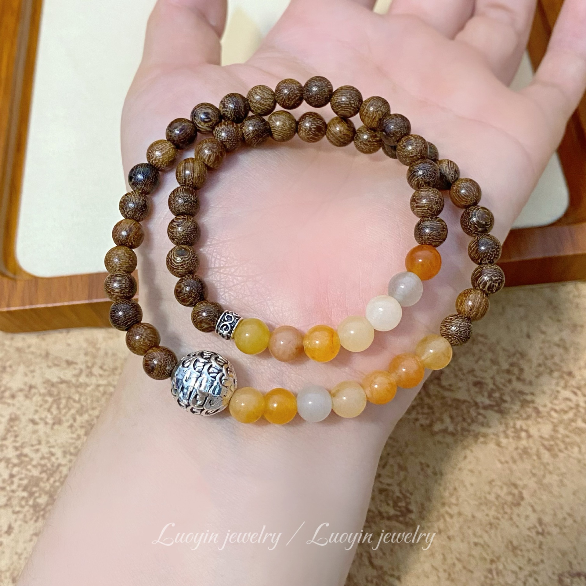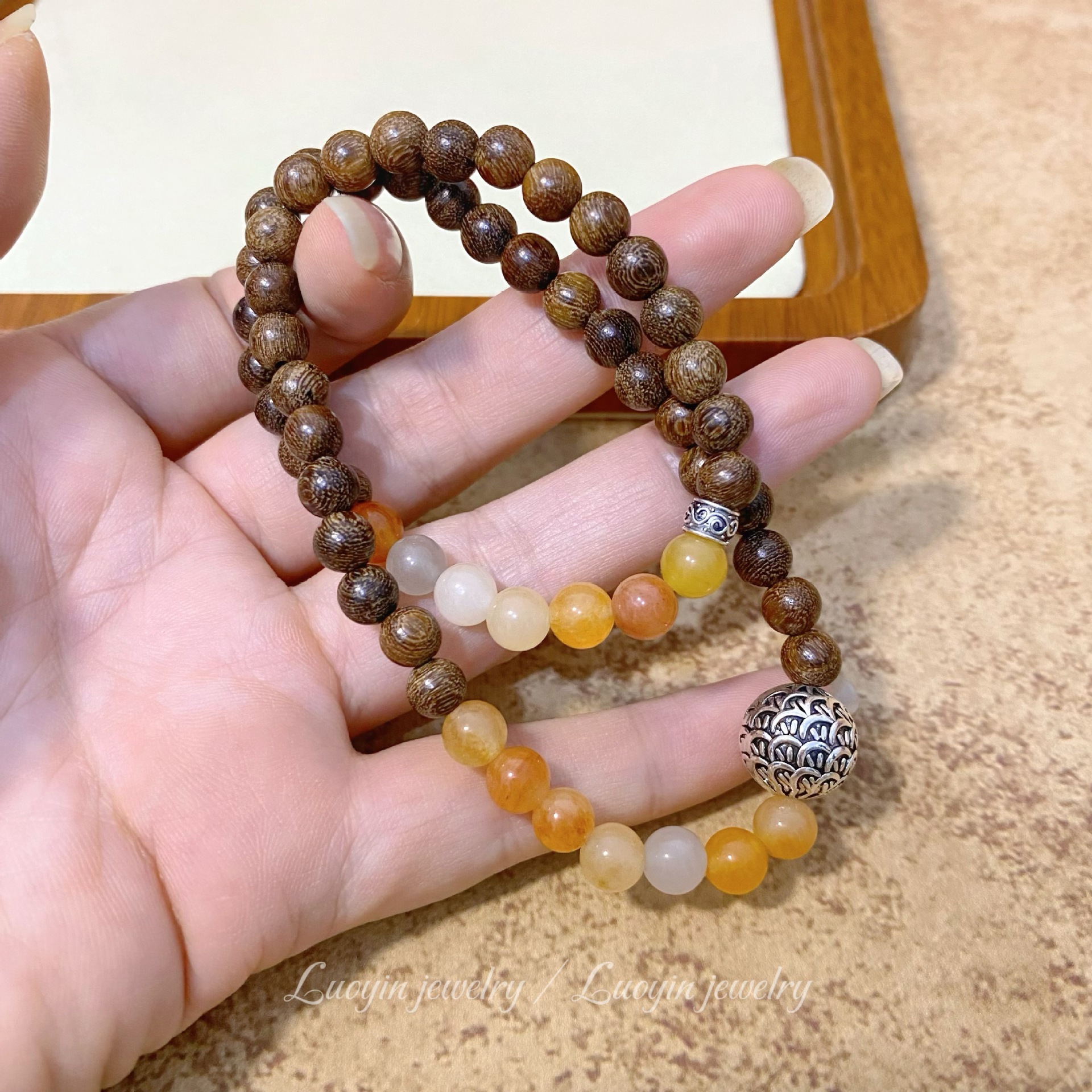 【新中式金丝檀木手链】搭配金丝玉双圈佛珠文玩 男女古风小众木质手串