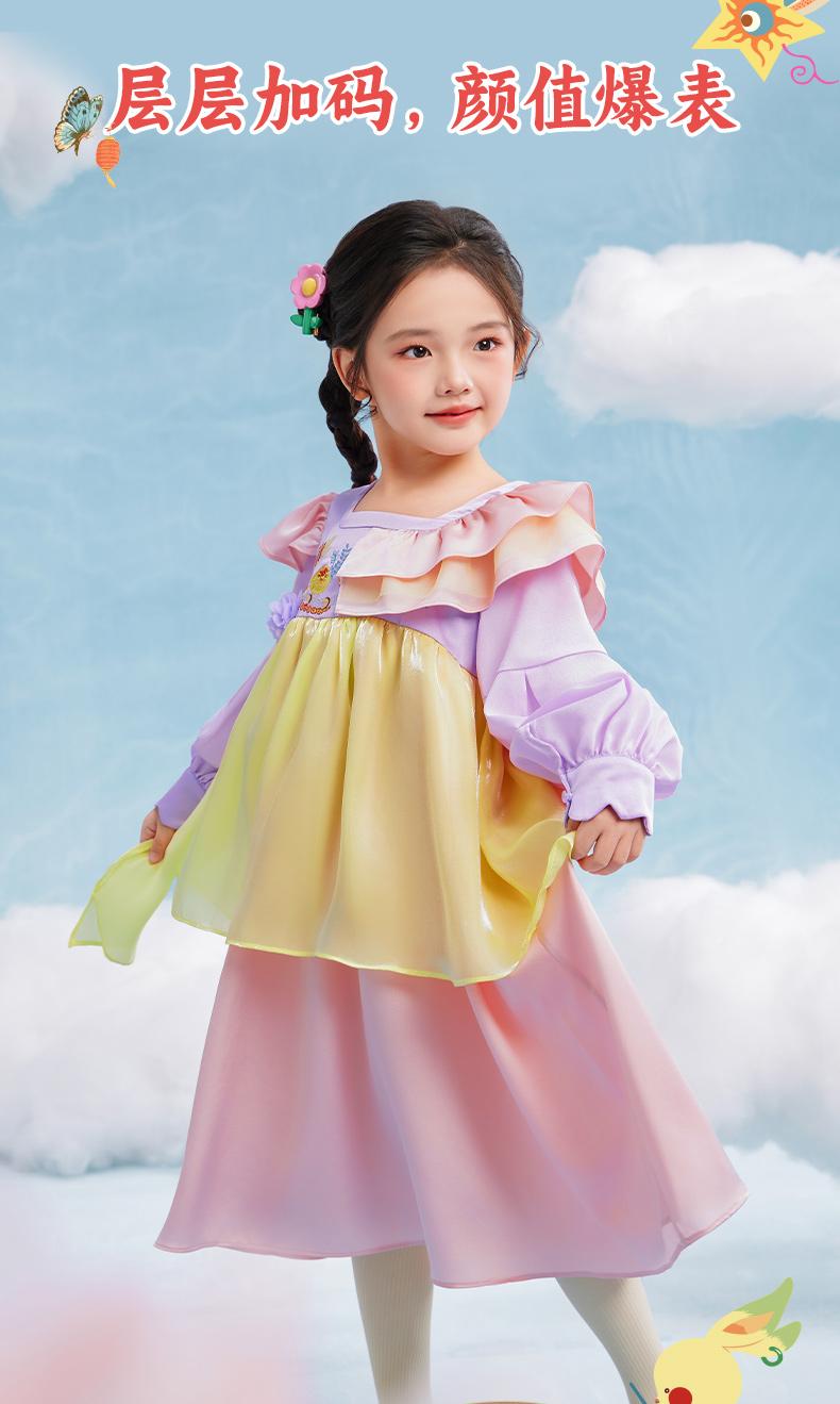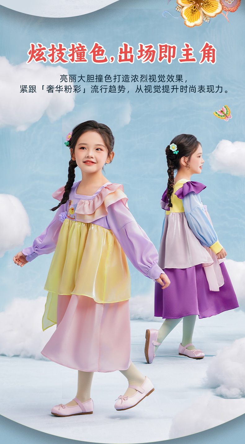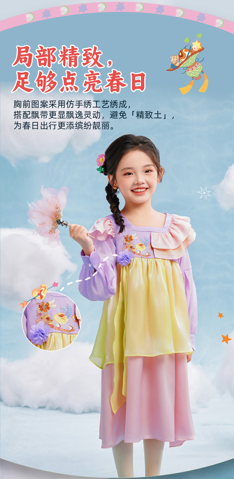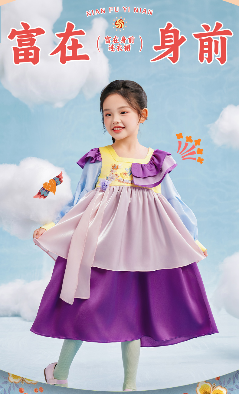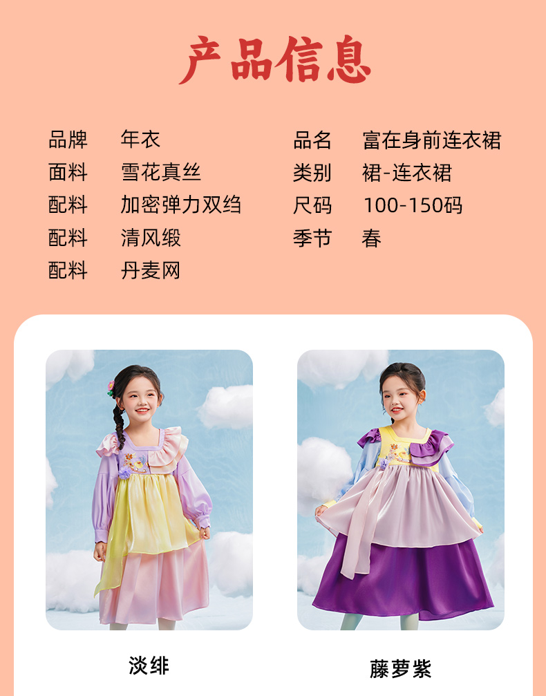 年衣童装女童连衣裙春季2025新款汉服裙新中式国风大童女孩公主裙礼服富在身前连衣裙
