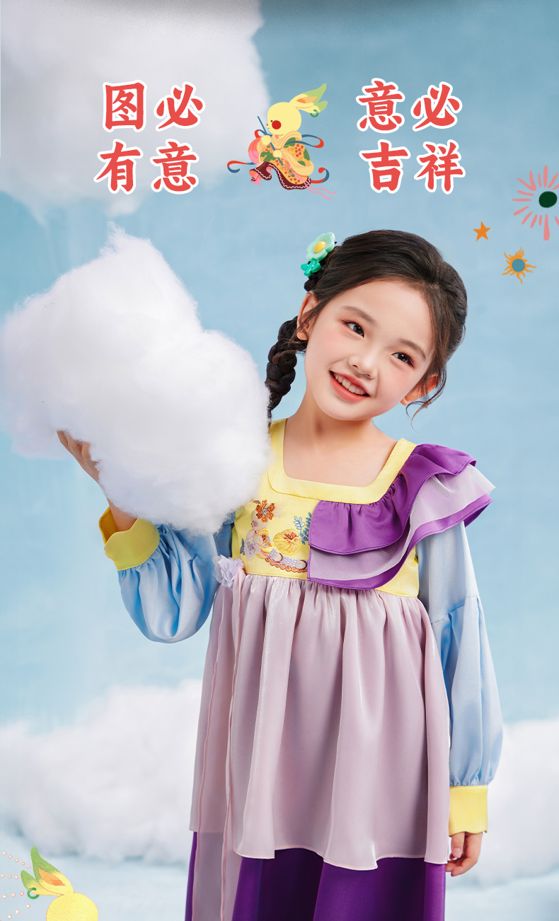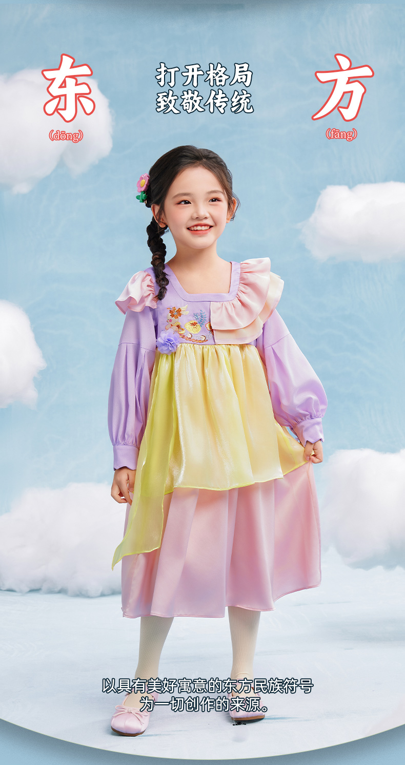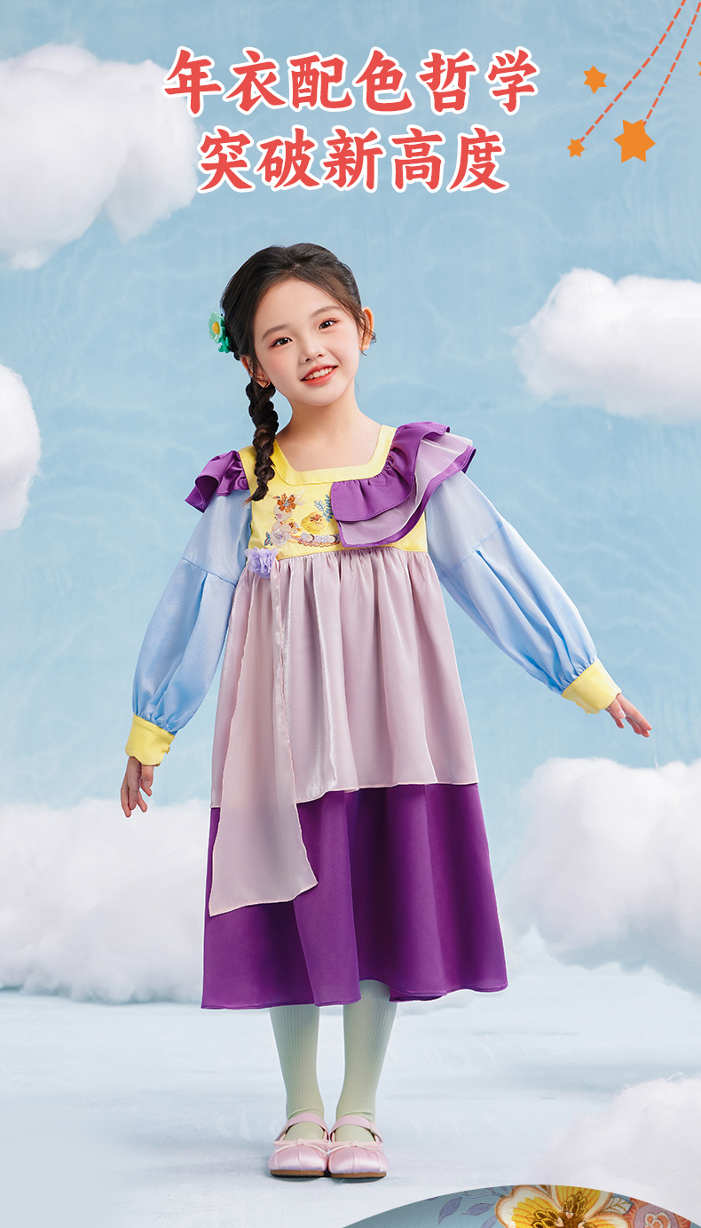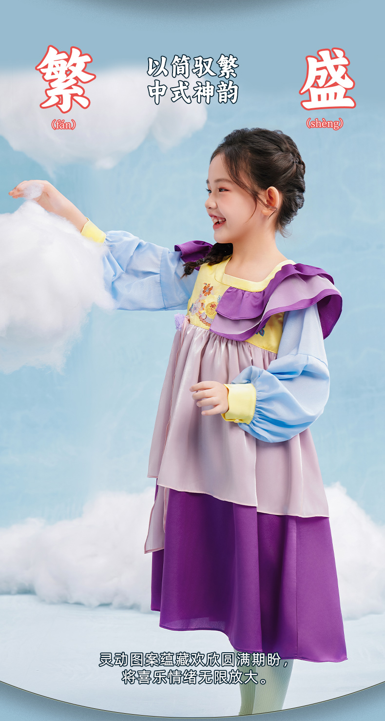 年衣童装女童连衣裙春季2025新款汉服裙新中式国风大童女孩公主裙礼服富在身前连衣裙