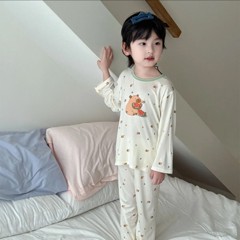 【25.9元/套起】儿童家居服春夏韩版儿童七分袖莫代尔睡衣套装薄款天丝儿童空调服