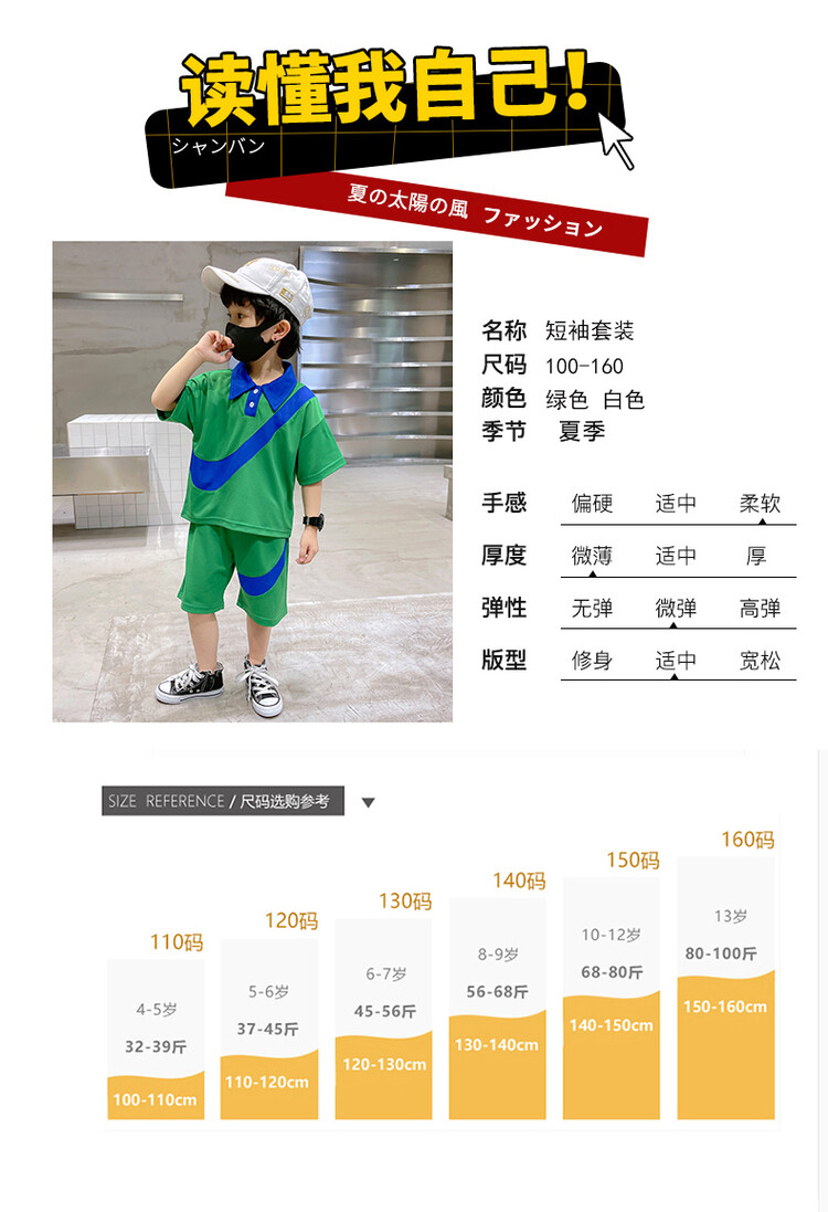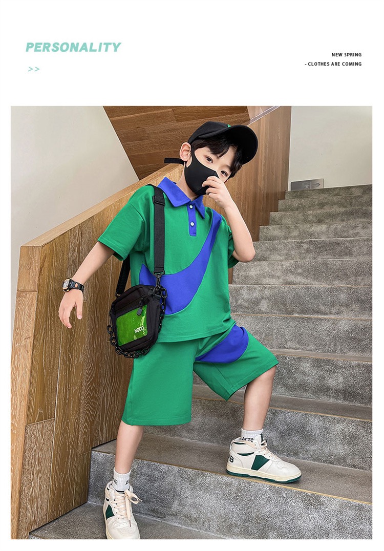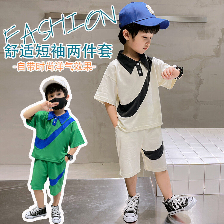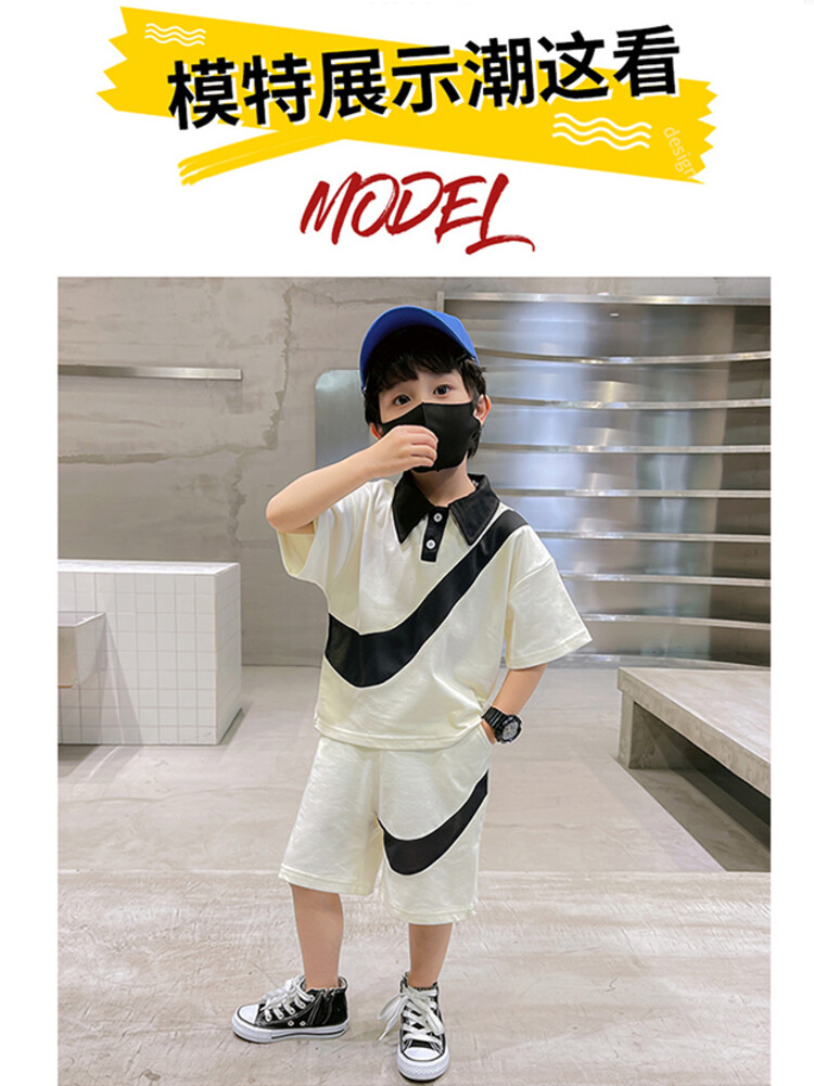 男童帅气的钩子夏款套装,面料简约不花哨,立体有型又好看自带潇洒buff~为了照顾宝贝的每一处舒适感觉休闲运动范儿的设计,上身版型利索面料手感细腻,不易起球,耐脏抗磨