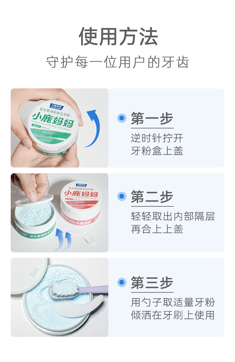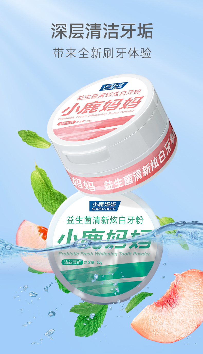 【深层清洁 ❗️护齿留香】小鹿妈妈牙粉 便携式益生菌洁牙粉洗牙粉 牙齿清洁清新口气非美白。ya