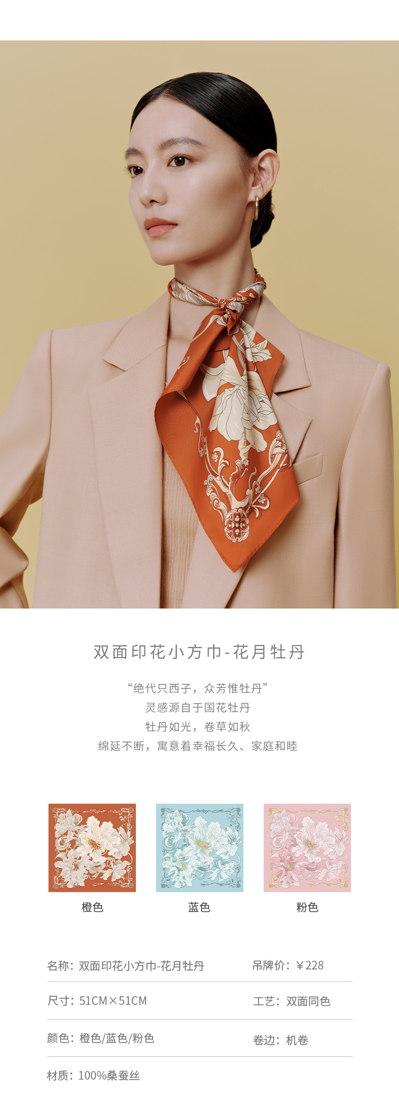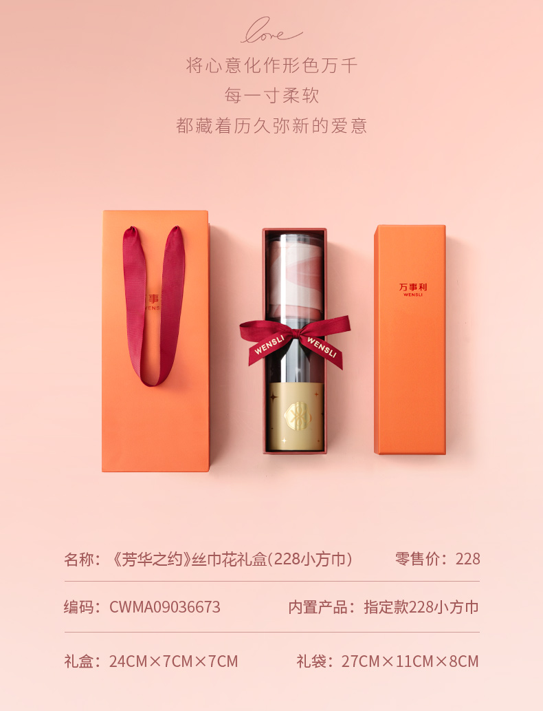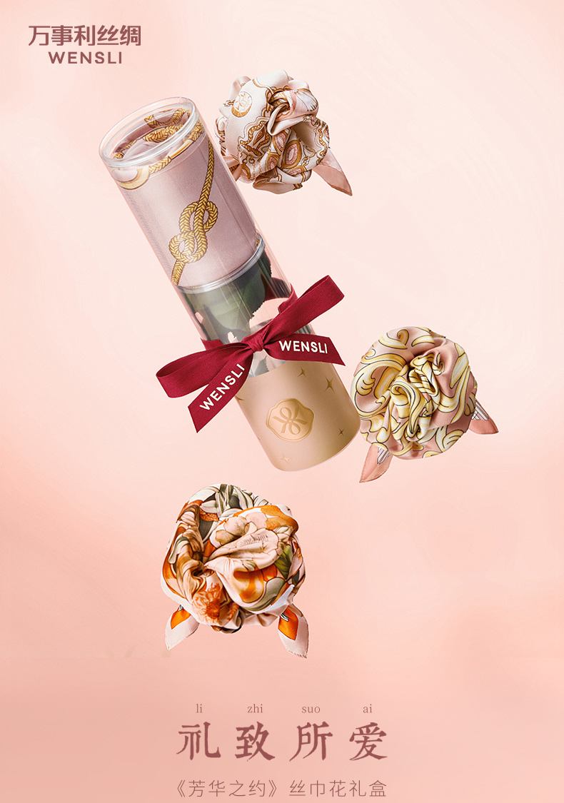 万事利《芳华之约》丝巾花礼盒(小方巾)