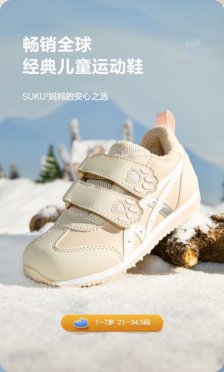 ASICS/亚瑟士童鞋2024新款加绒保暖宝宝学步鞋棉鞋柔软厚绒COTLA