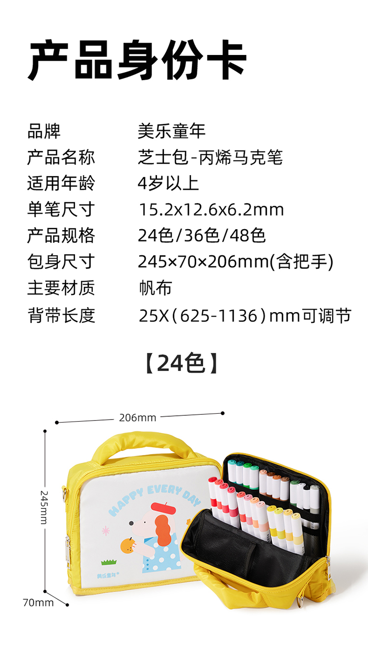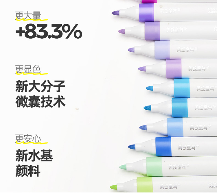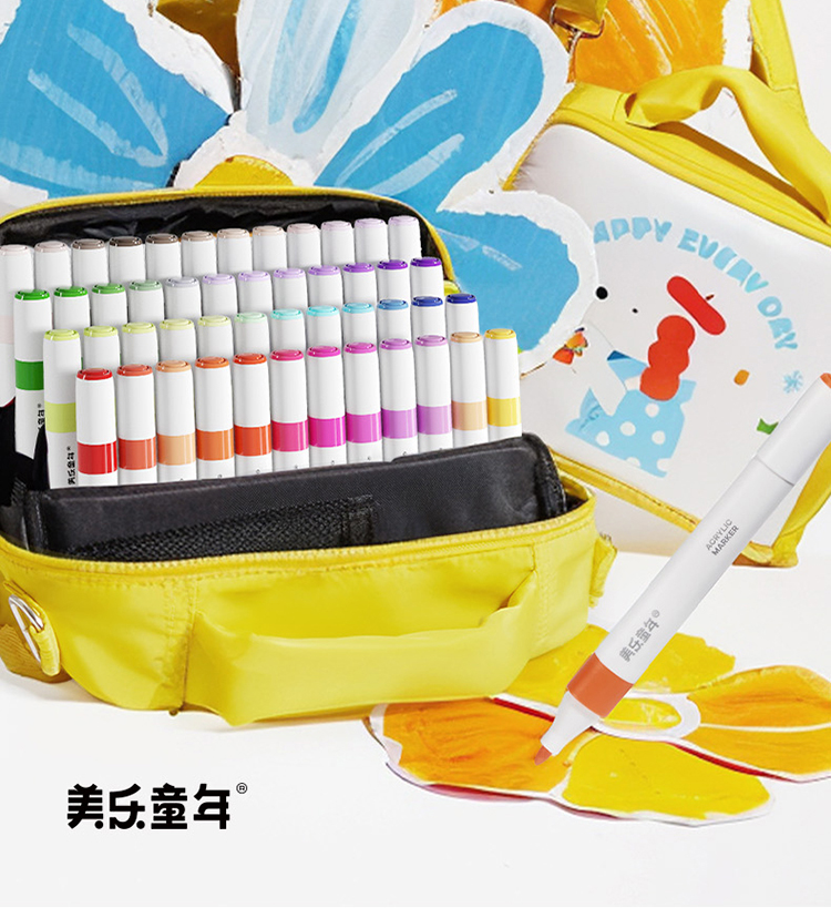 美乐童年芝士包丙烯马克笔幼儿园小学生专用一年级美术儿童无毒可洗24色36色不透色可叠色画画笔芯画笔水彩笔