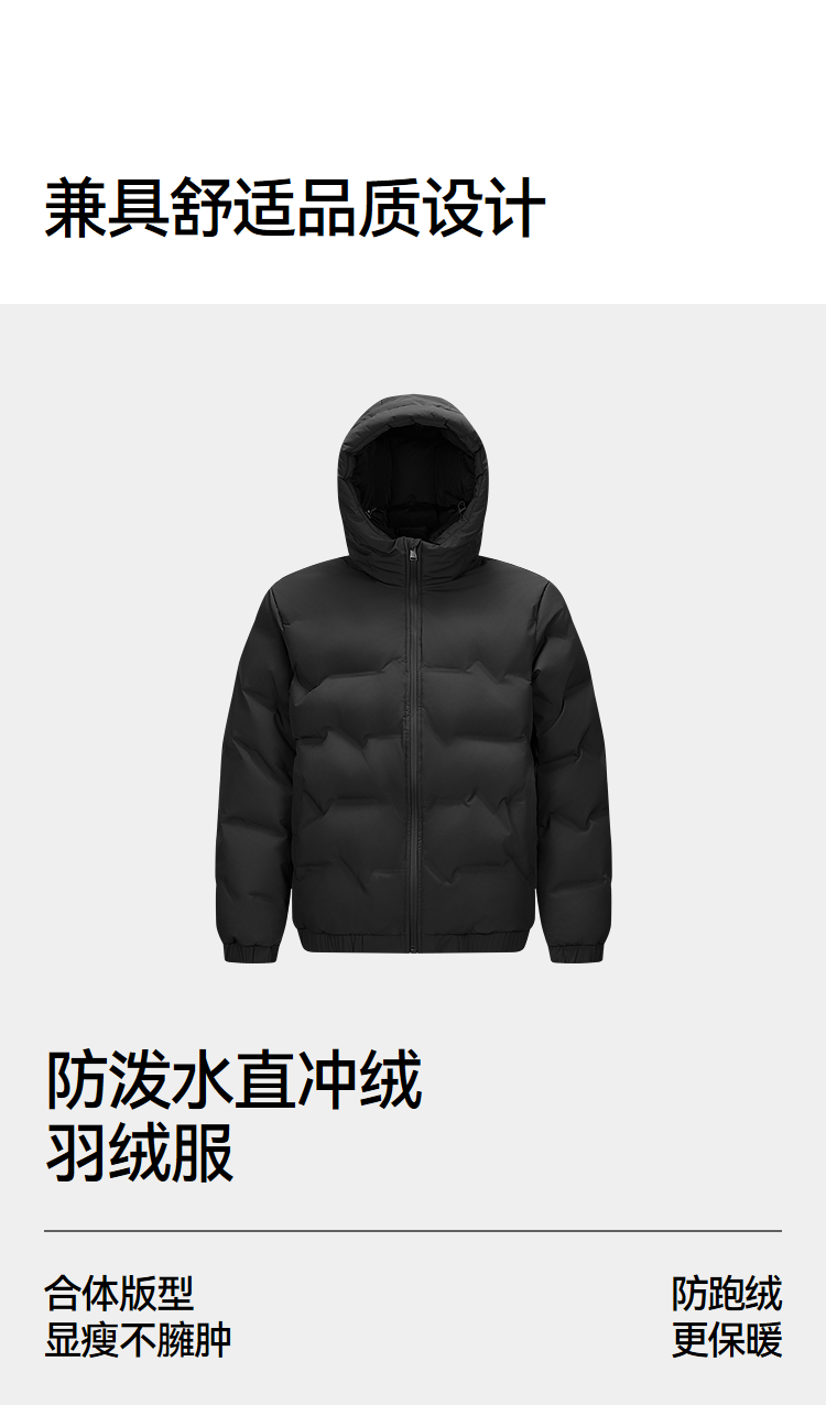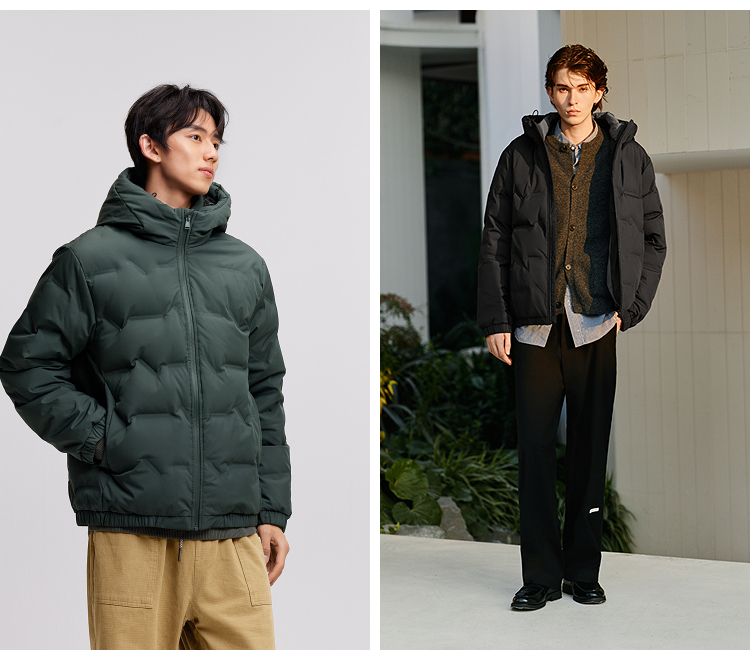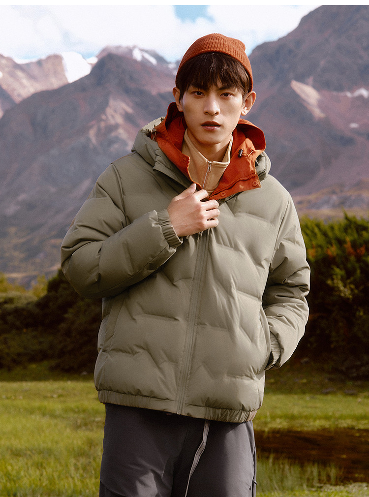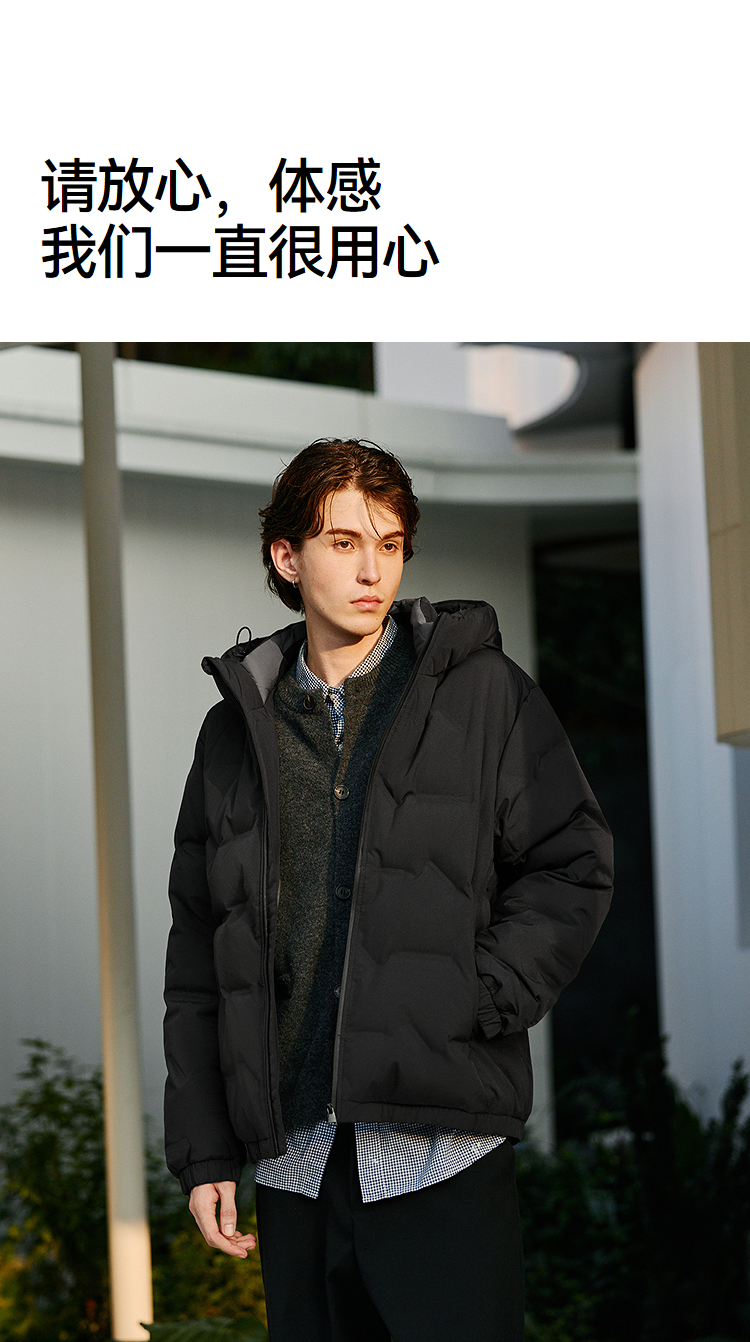 森马羽绒服男冬90绒子防泼水外套直充绒无缝压胶纯色百搭连帽上衣