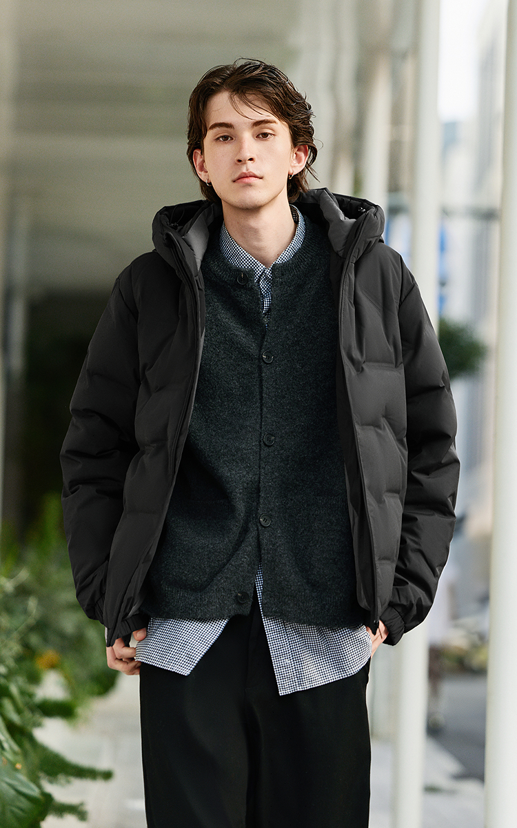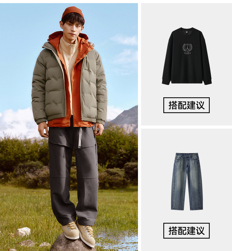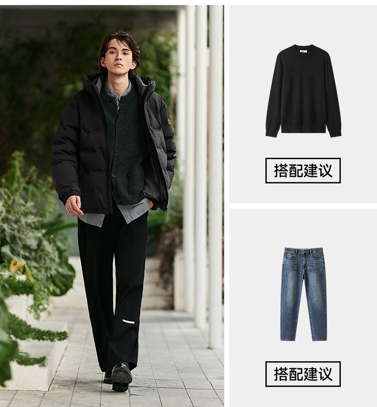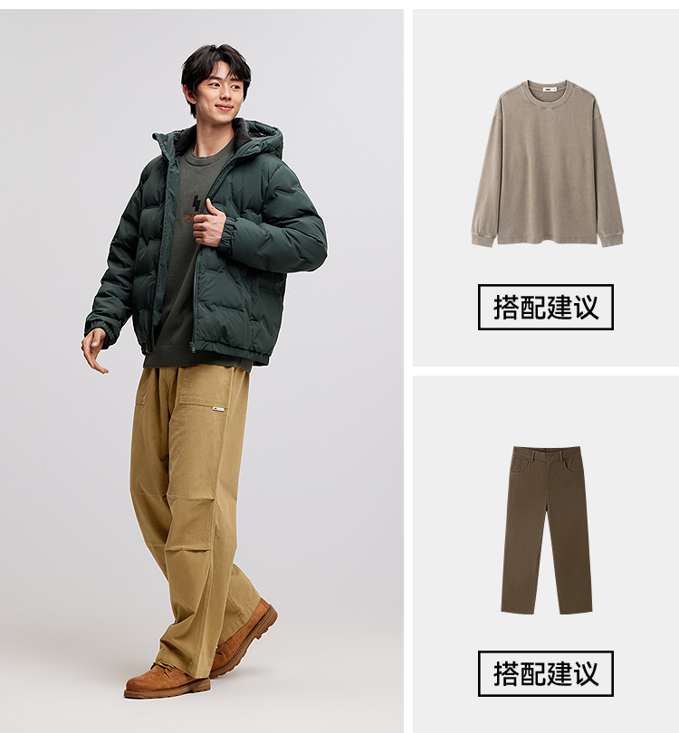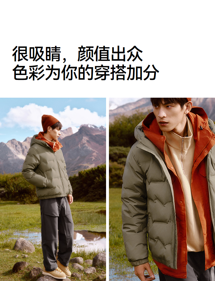 森马羽绒服男冬90绒子防泼水外套直充绒无缝压胶纯色百搭连帽上衣