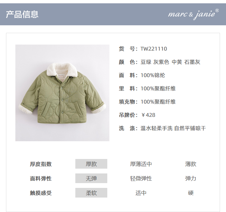 马克珍妮秋冬新款 男女童仿羊羔绒翻领棉衣 儿童外套221110