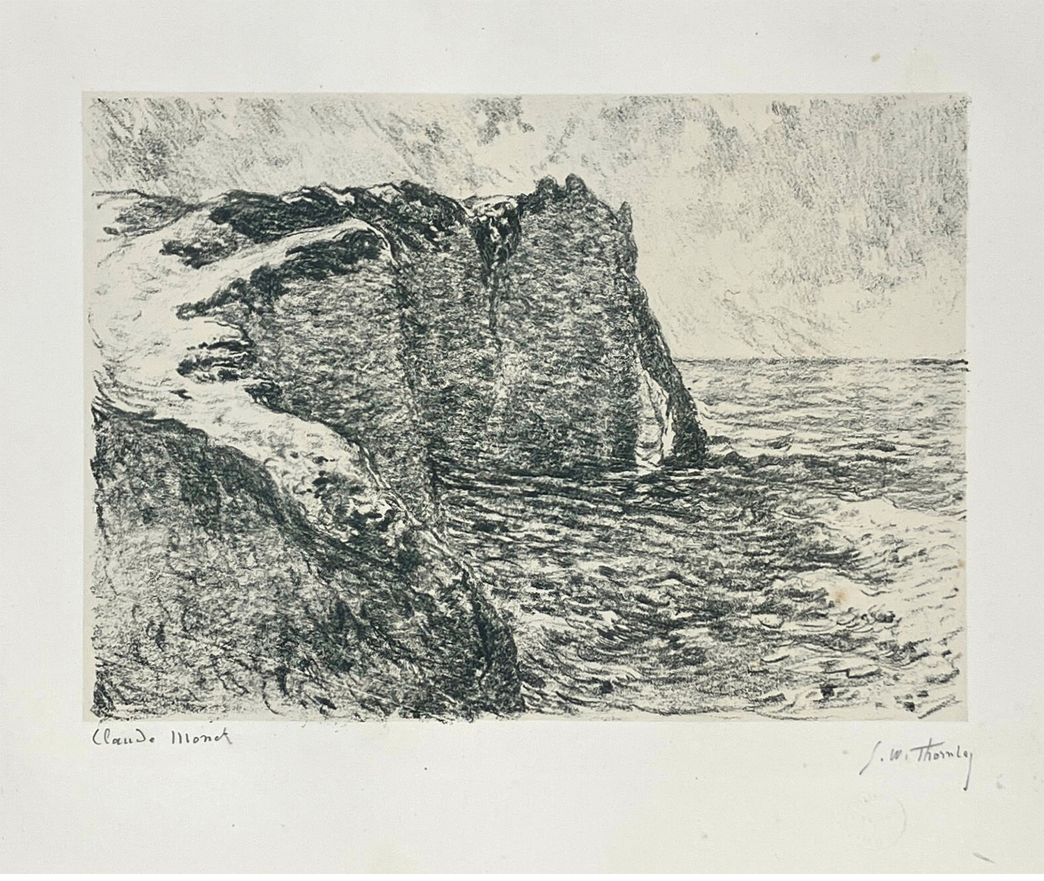 1892年代法国巴黎Goupil出版印象派大师莫奈授权版画家Georges William Thornley出品限量石版画作品《海崖》