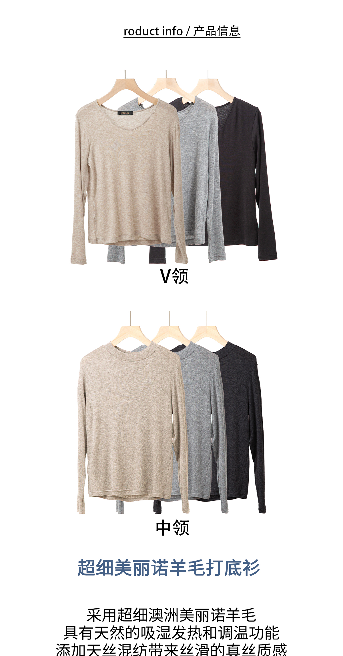 超细美丽诺羊毛打底衫