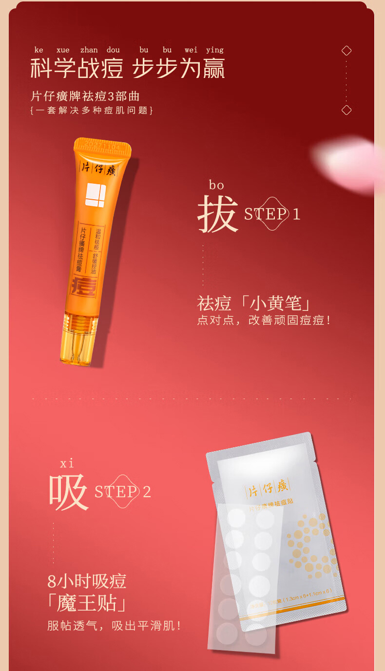 【国货之光】片仔癀袪痘三件套袪痘膏 袪痘贴 舒缓凝胶 改善痘肌淡化痘印女男士祛痘套装