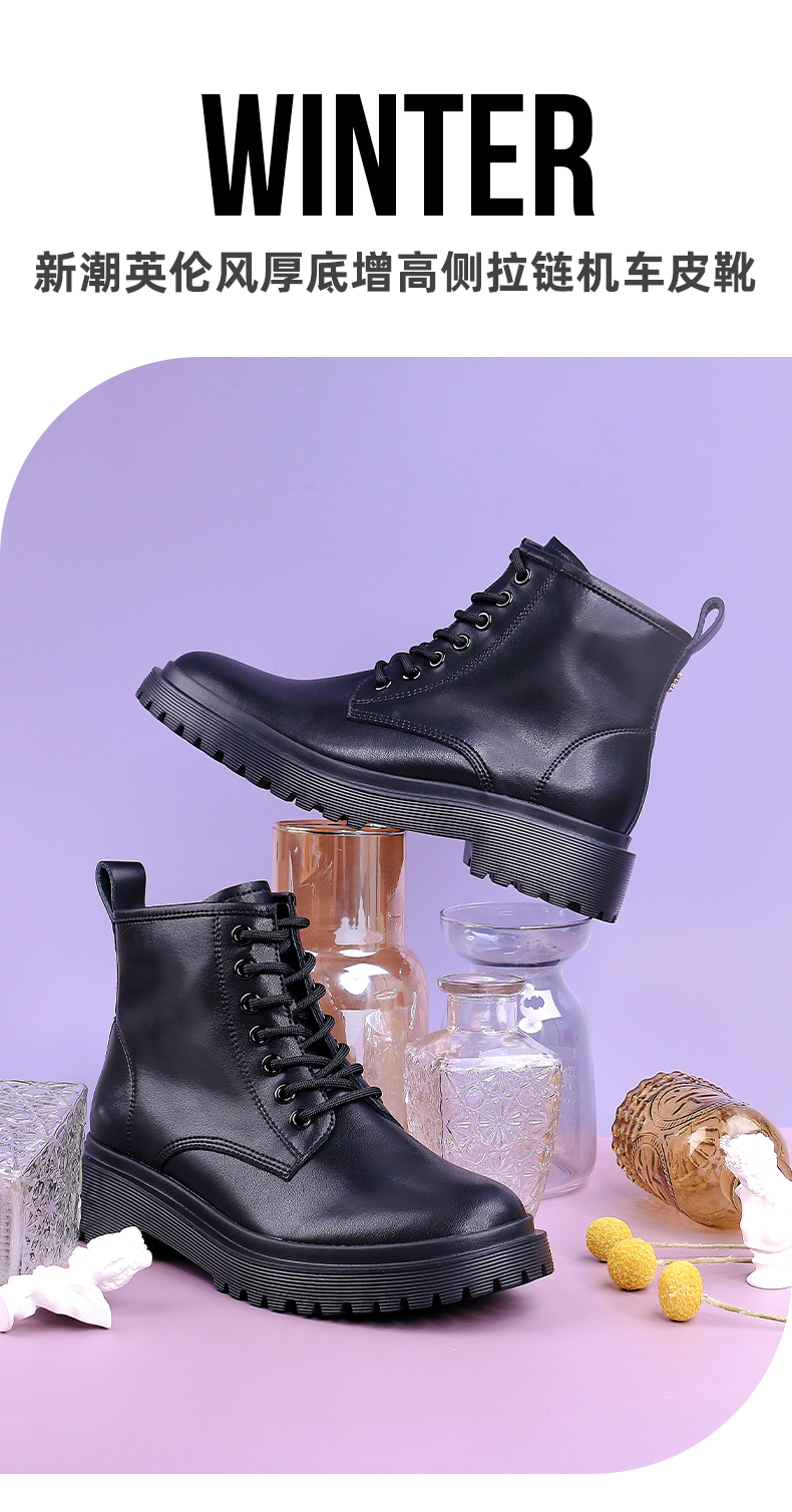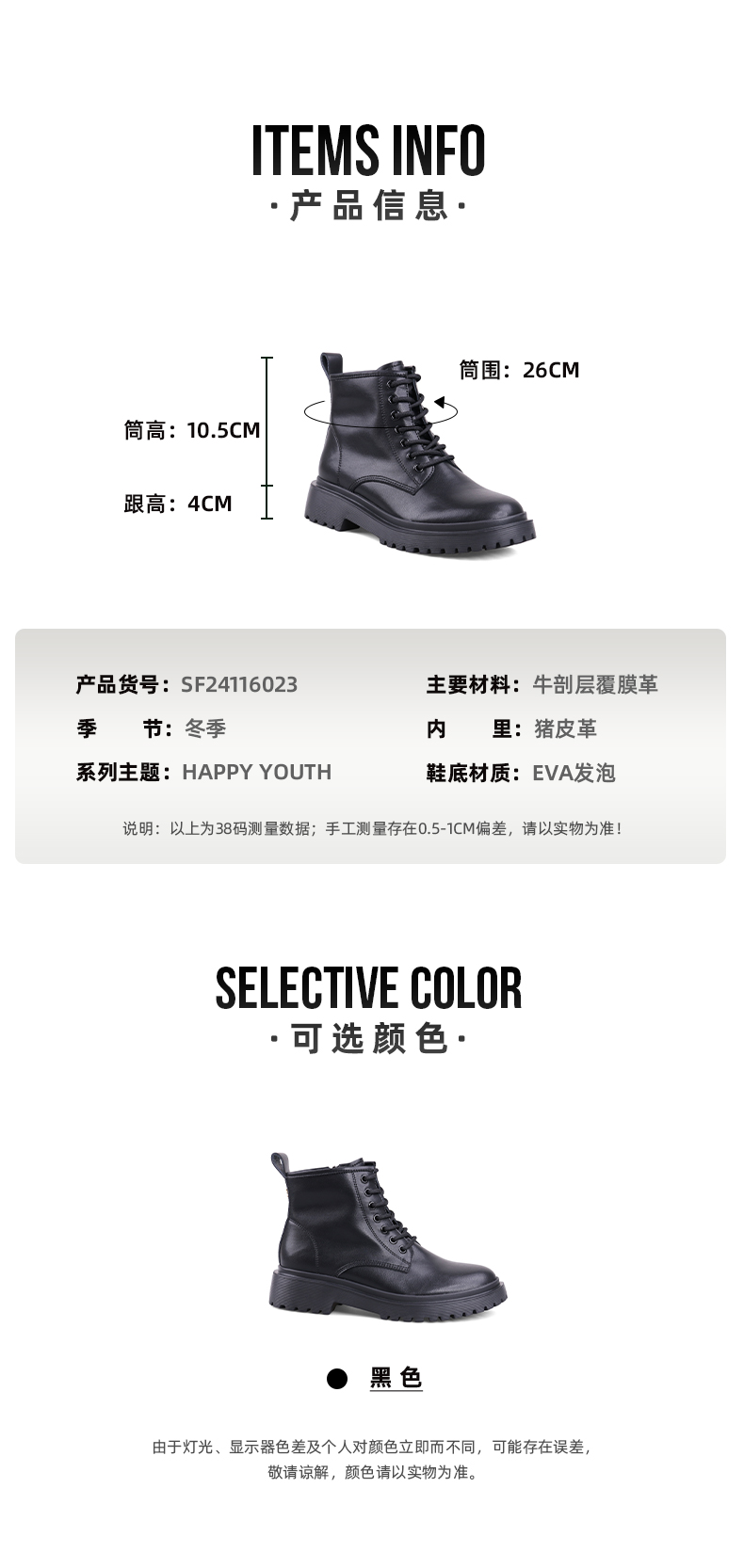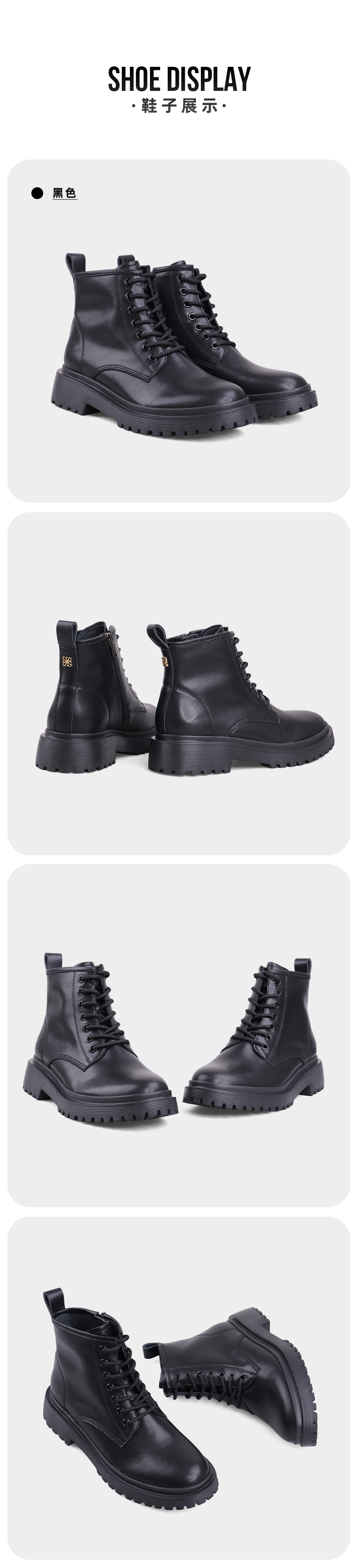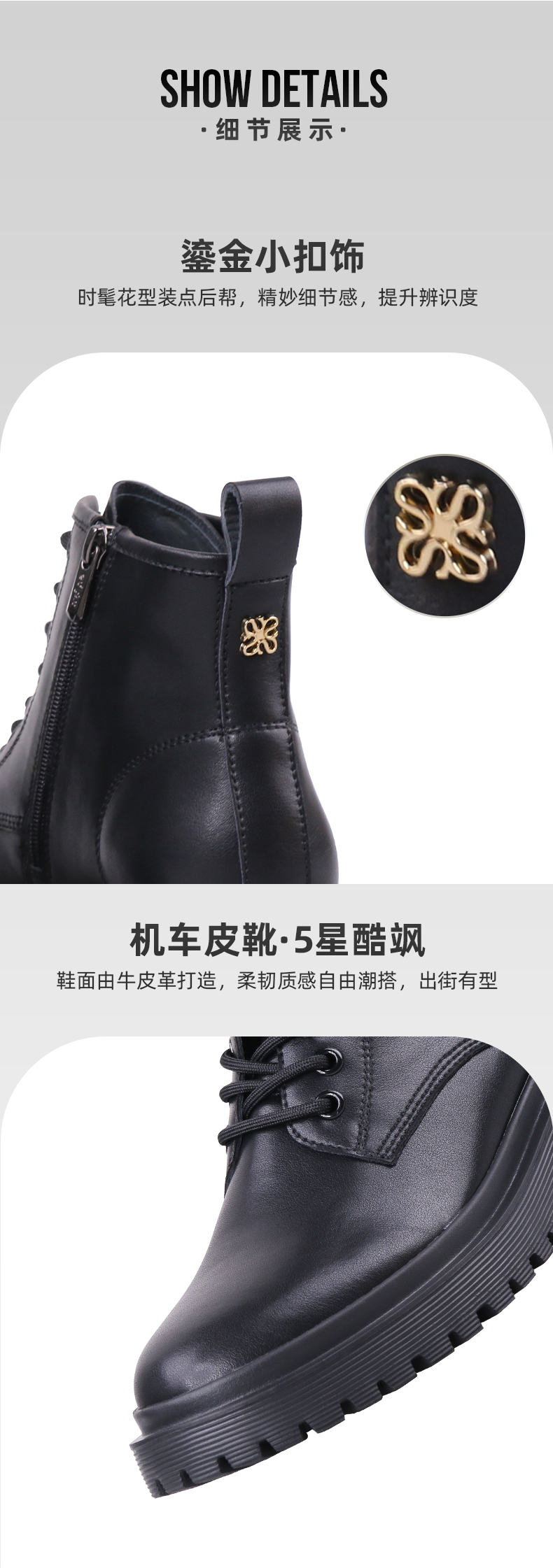【春节不打烊】Safiya/索菲娅 马丁靴2022冬季新潮英伦风厚底增高侧拉链机车皮靴 SF24116023