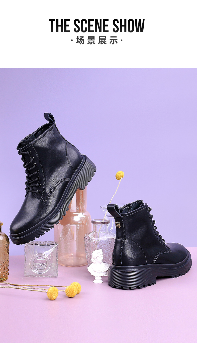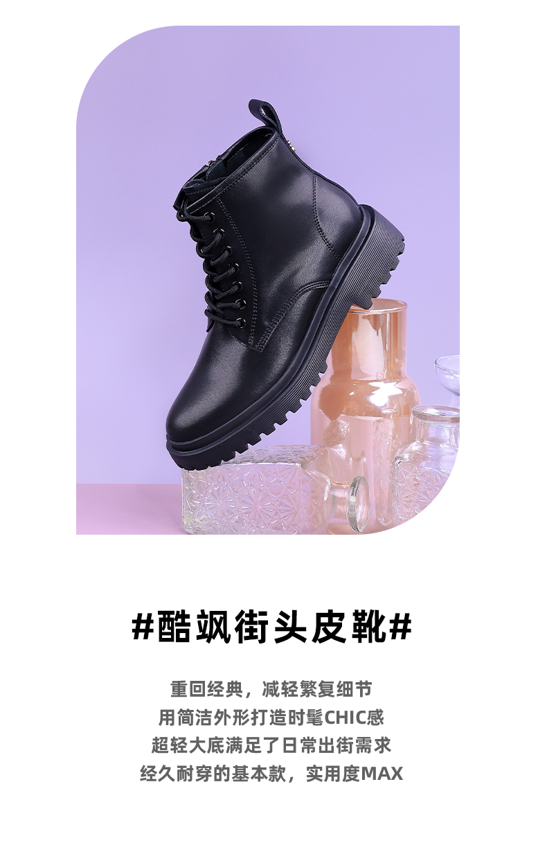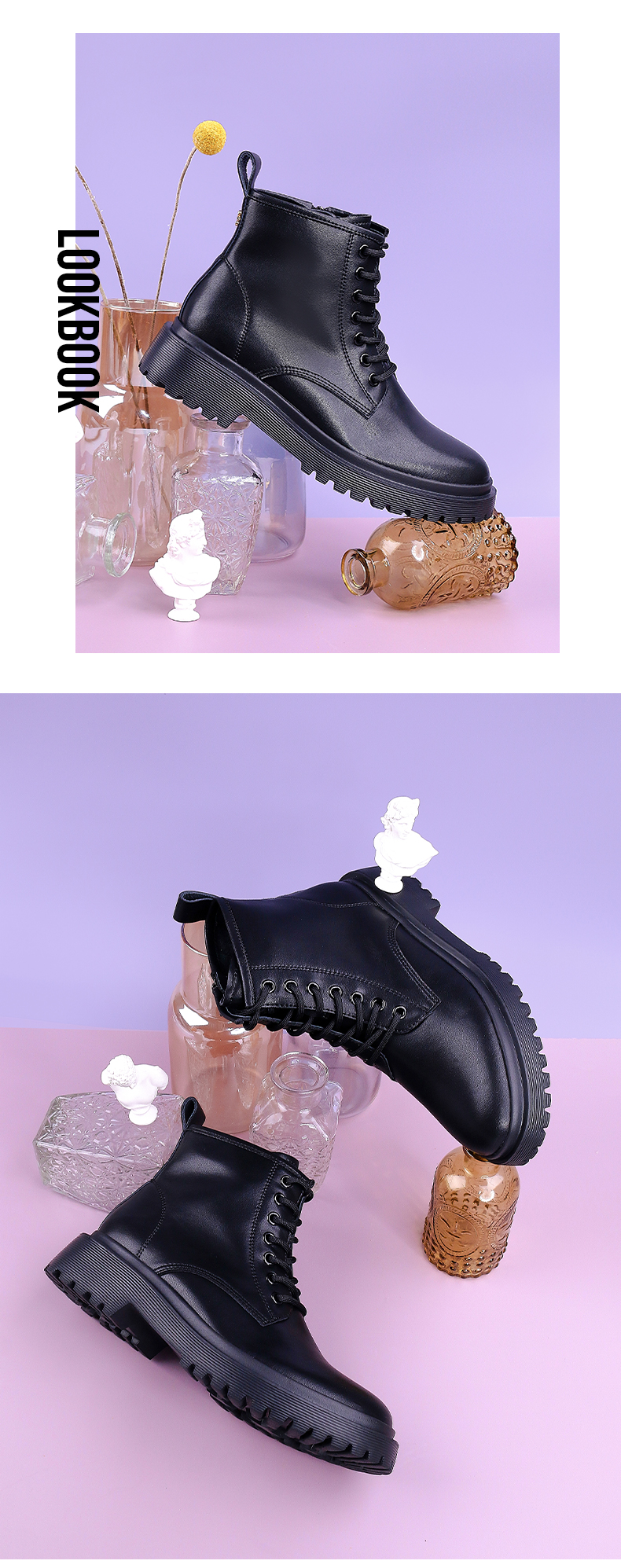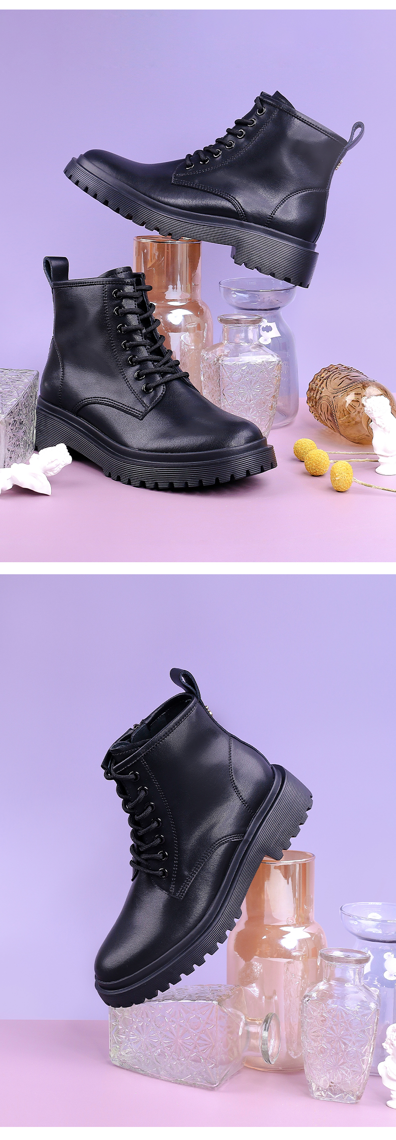 【春节不打烊】Safiya/索菲娅 马丁靴2022冬季新潮英伦风厚底增高侧拉链机车皮靴 SF24116023