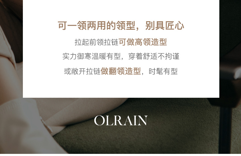 - “精致”是欧芮儿olrain品牌文化的核心,欧芮儿认为,精致的女人,不但要外在动人,更要内在迷人,内外兼修,有魅力、有气质、有内涵,自信而不自傲,优雅而不矫揉,自有万种风情而不轻浮,更不故作矜持。