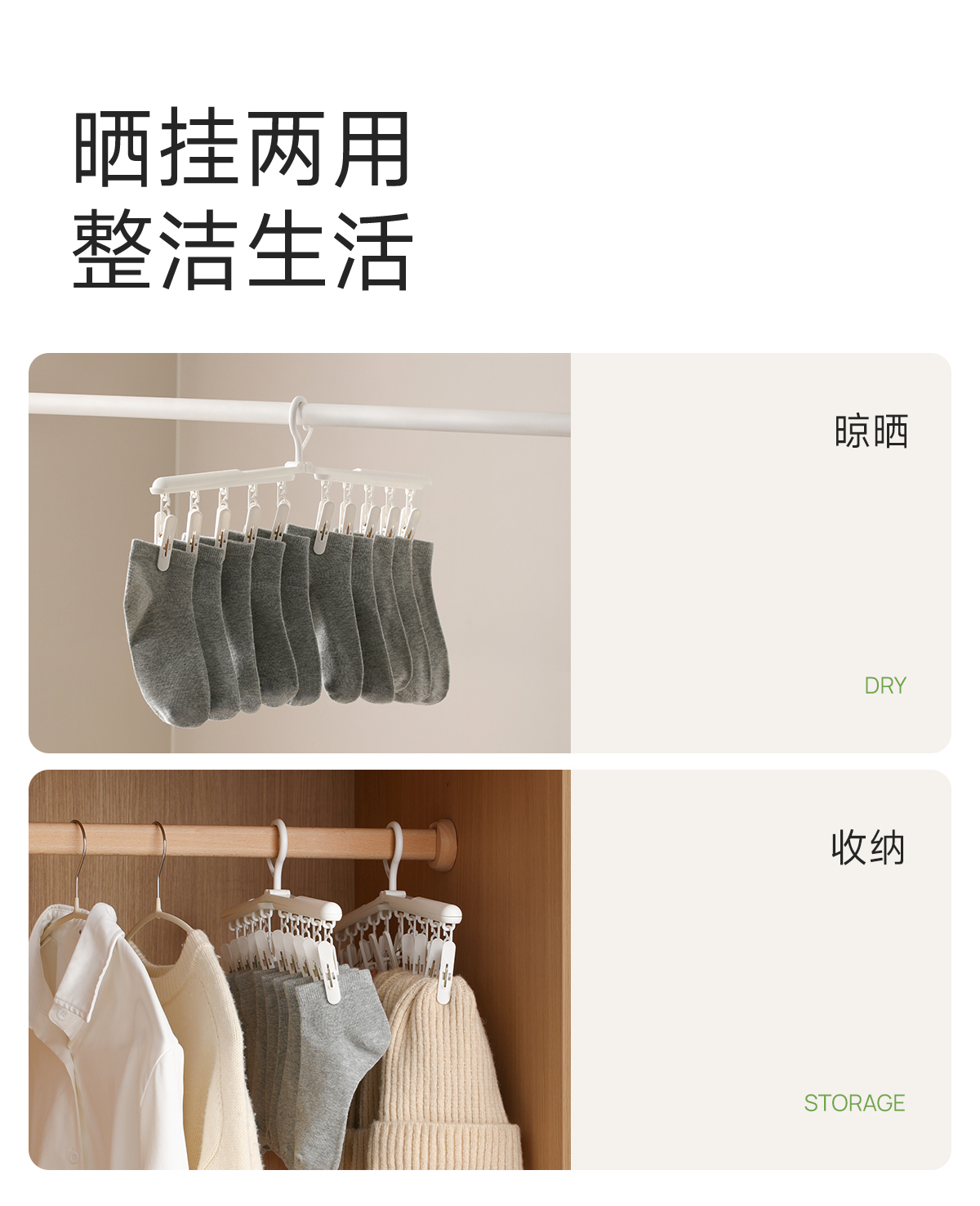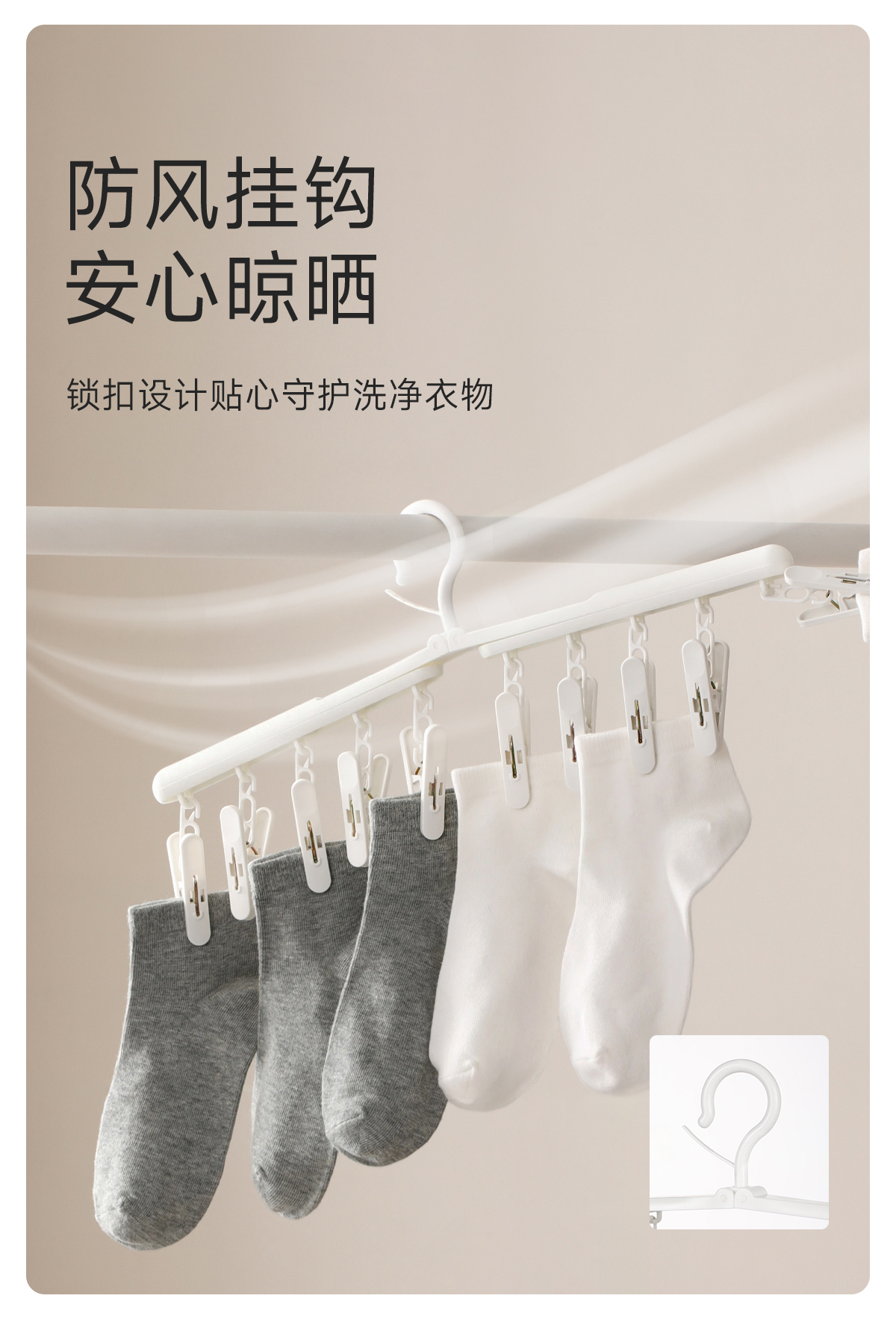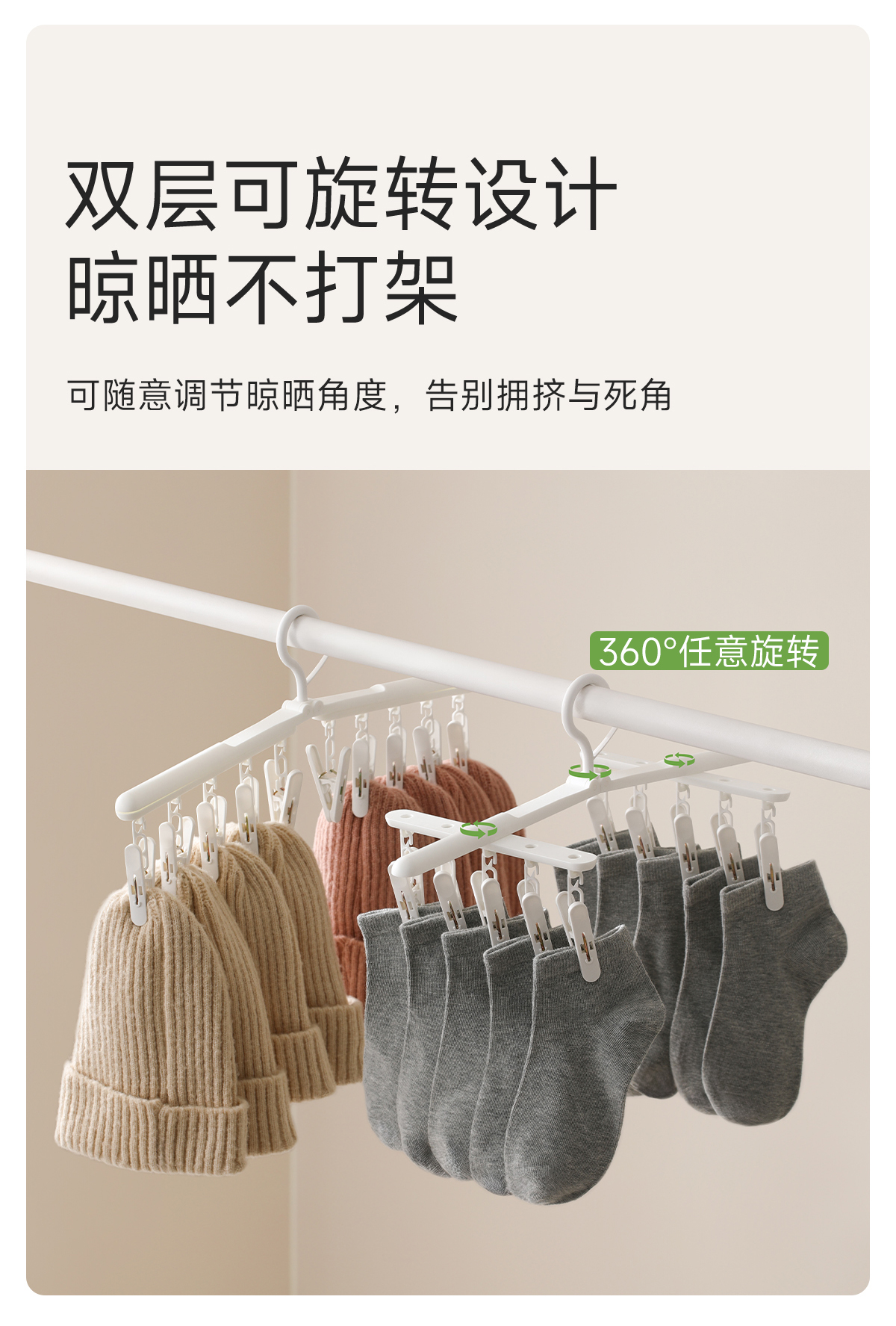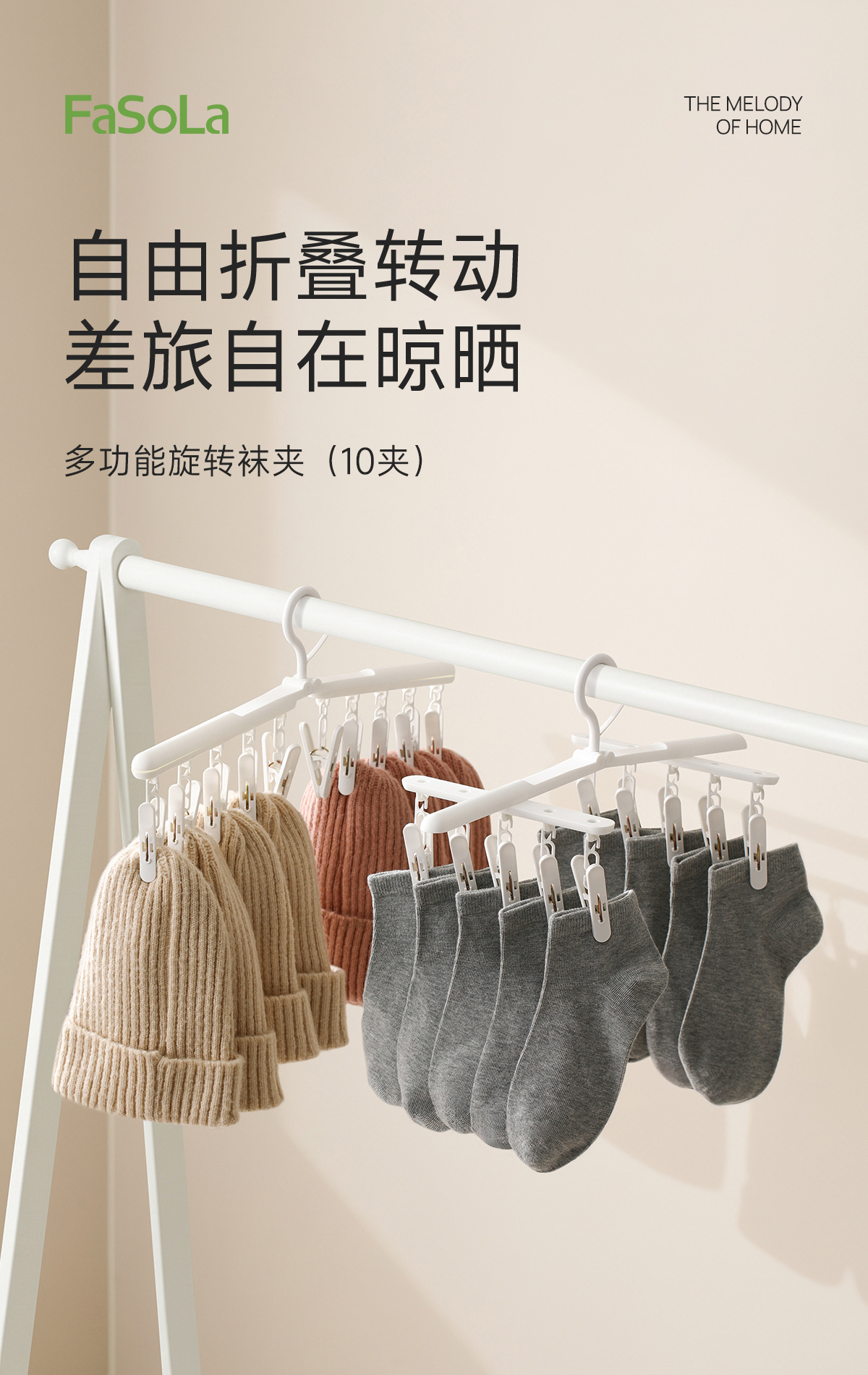 FaSoLa袜子晾晒架旋转折叠多夹子家用防风宿舍用学生多功能旋转袜夹