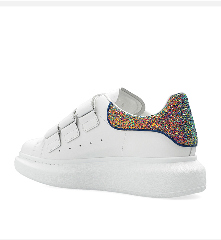 ALEXANDER MCQUEEN 麦昆 女士金色亮钻尾三绑带休闲运动鞋 白色 697106 WICG5 9994