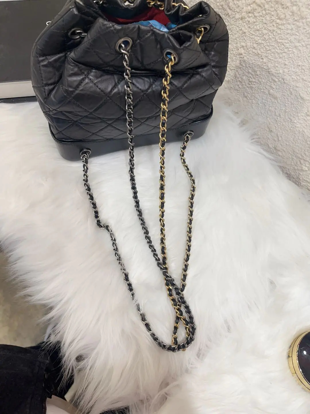 【商品详情】正品二手 Chanel 流浪 双肩包🎒98新 22*23 镭射30开 配件:卡 票 防尘袋。hobo风格极强