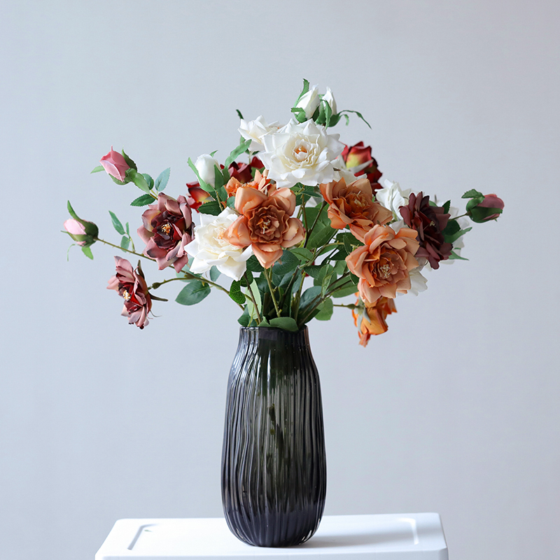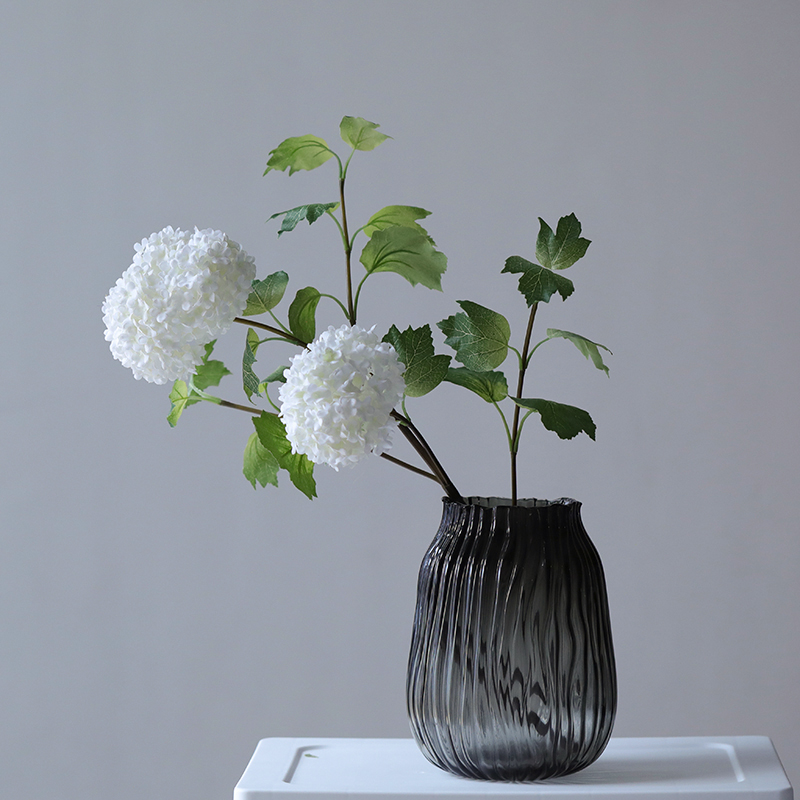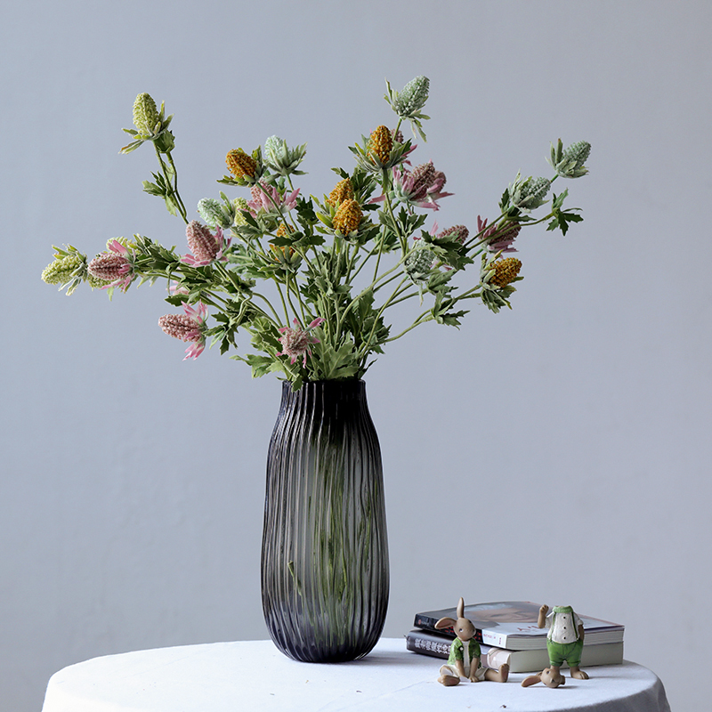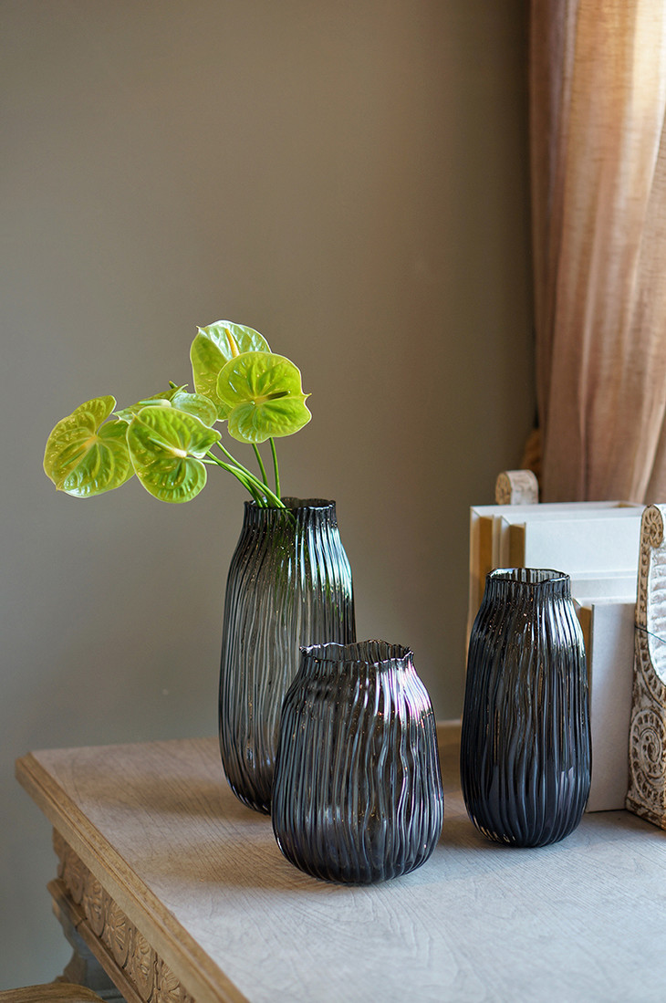 西班牙设计师经典款轻奢烟熏灰叶子造型浮雕纹理玻璃花瓶软装花器