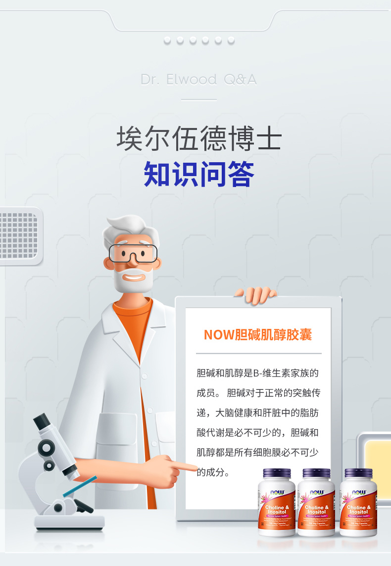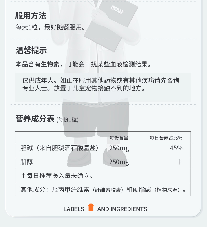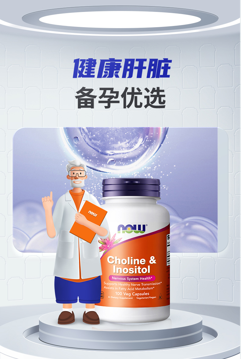 【多囊雄高闭经】NOW诺奥胆碱肌醇胶囊100粒/瓶