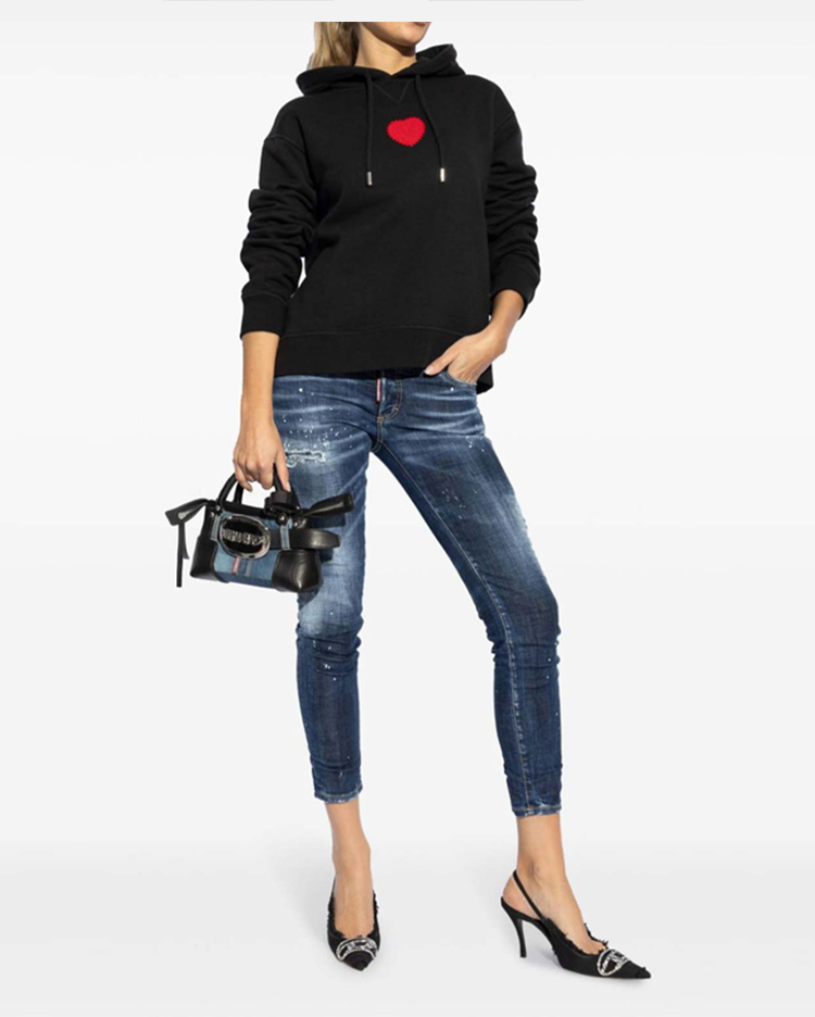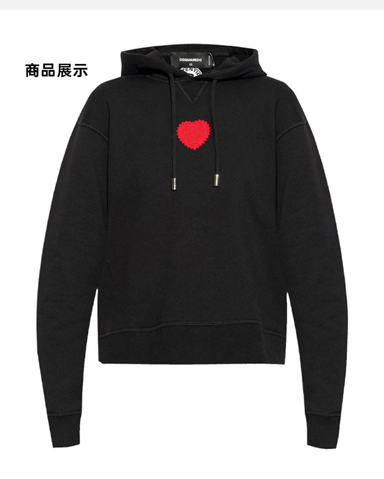 【二】DSQUARED2 女士配心形补丁棉质连帽卫衣 黑色 S75GU0554 S25516 900