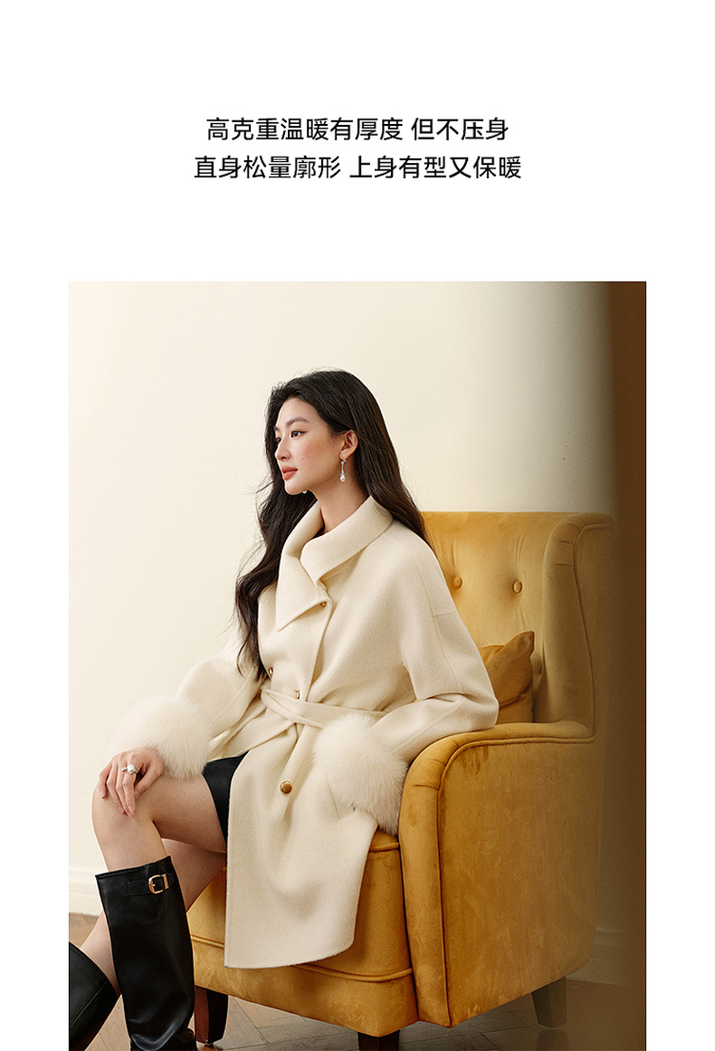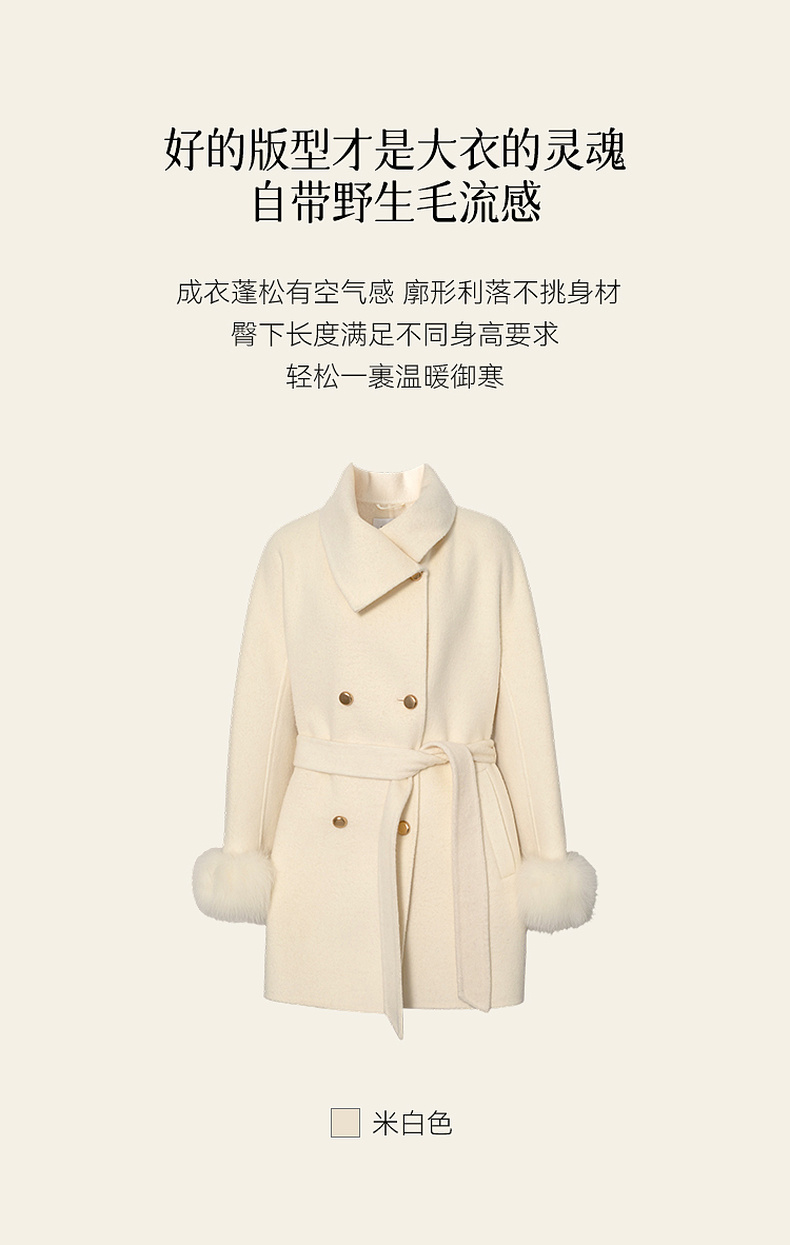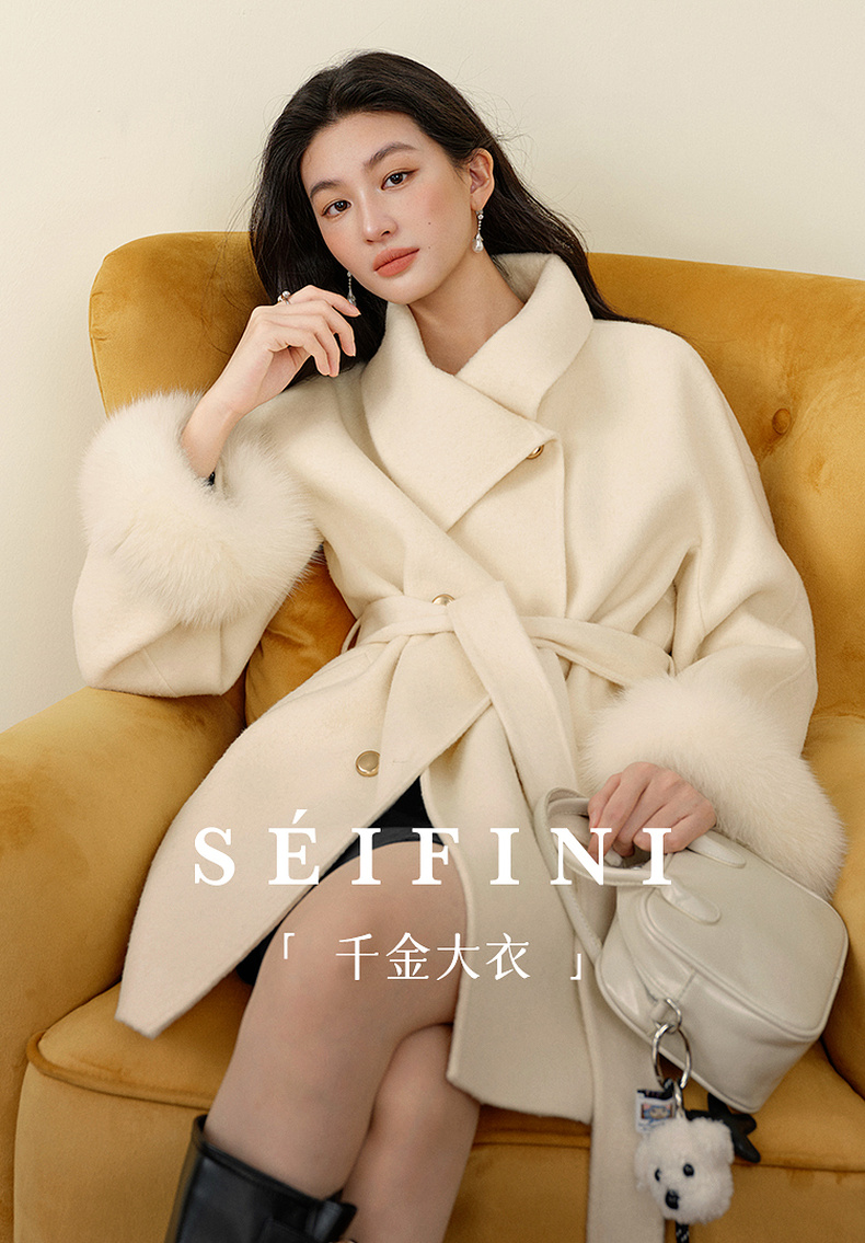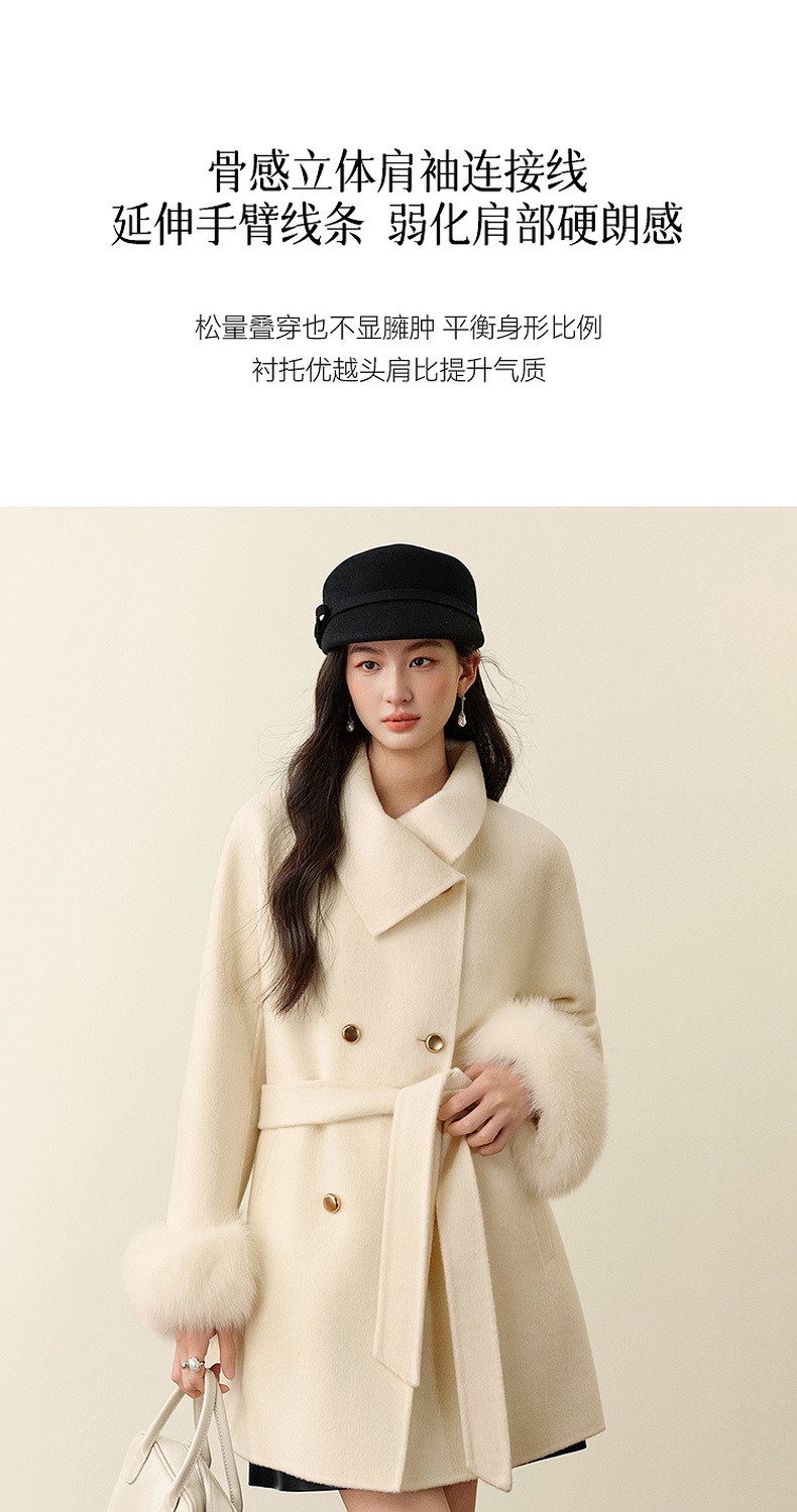 【严选】孟子义代言诗凡黎千金风双面呢外套25秋冬新款含骆驼绒系带大衣女7GA170231