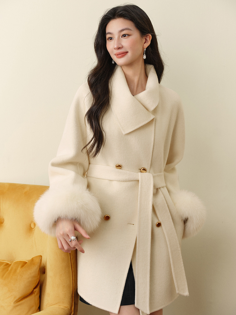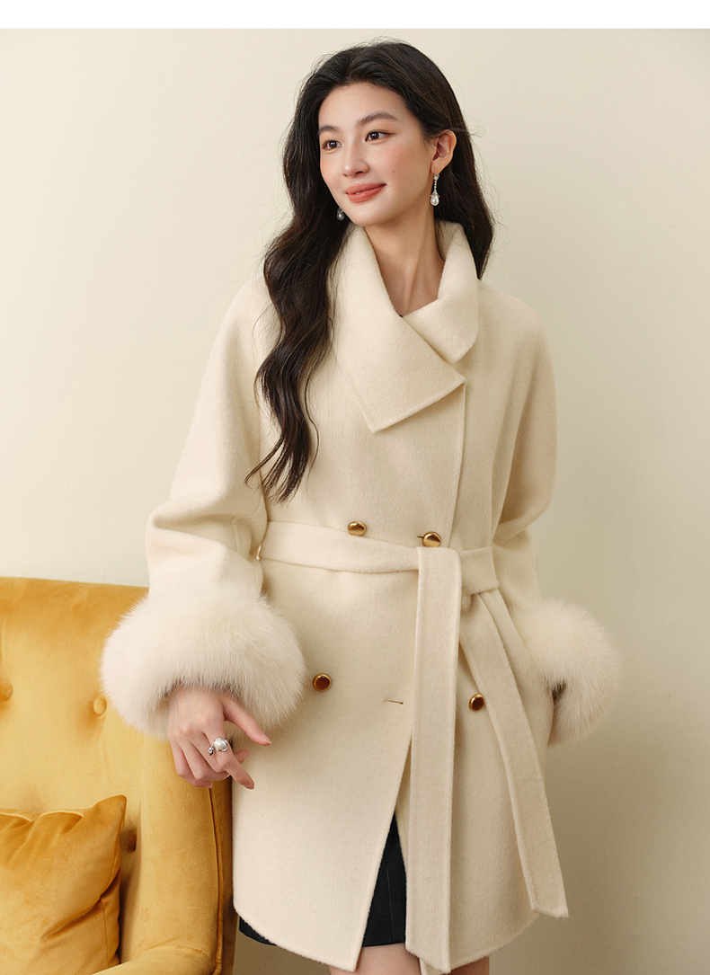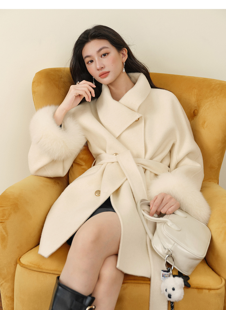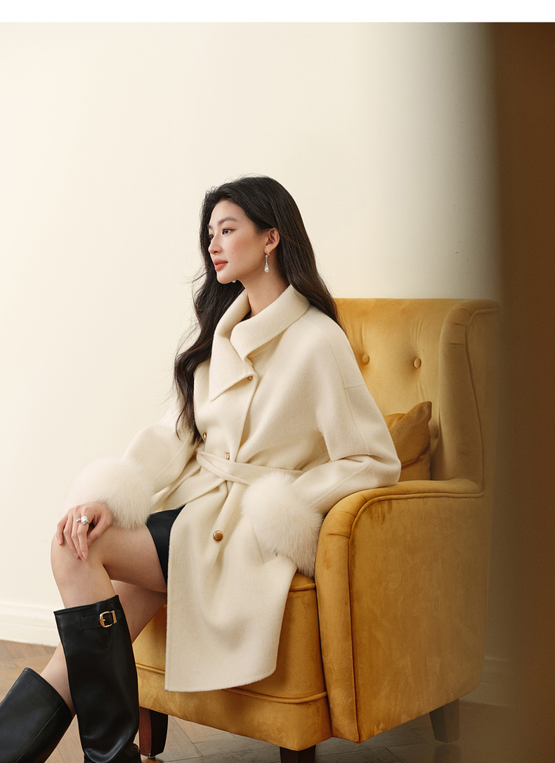 【严选】孟子义代言诗凡黎千金风双面呢外套25秋冬新款含骆驼绒系带大衣女7GA170231