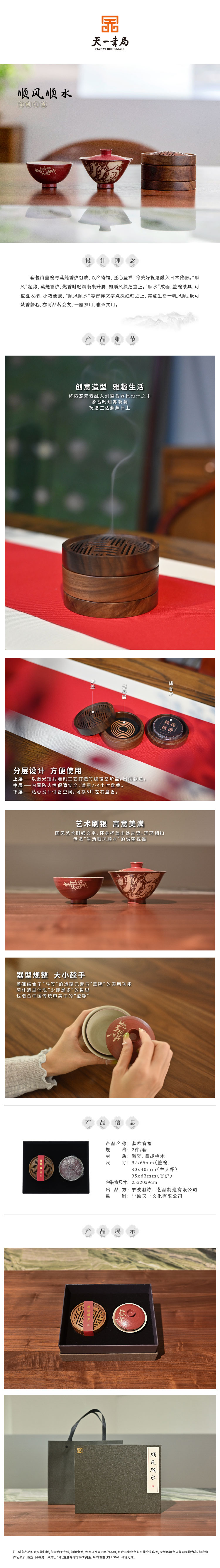 羽诗制造出品 顺风顺水斗笠盖碗便携茶具蒸笼香炉文创礼盒