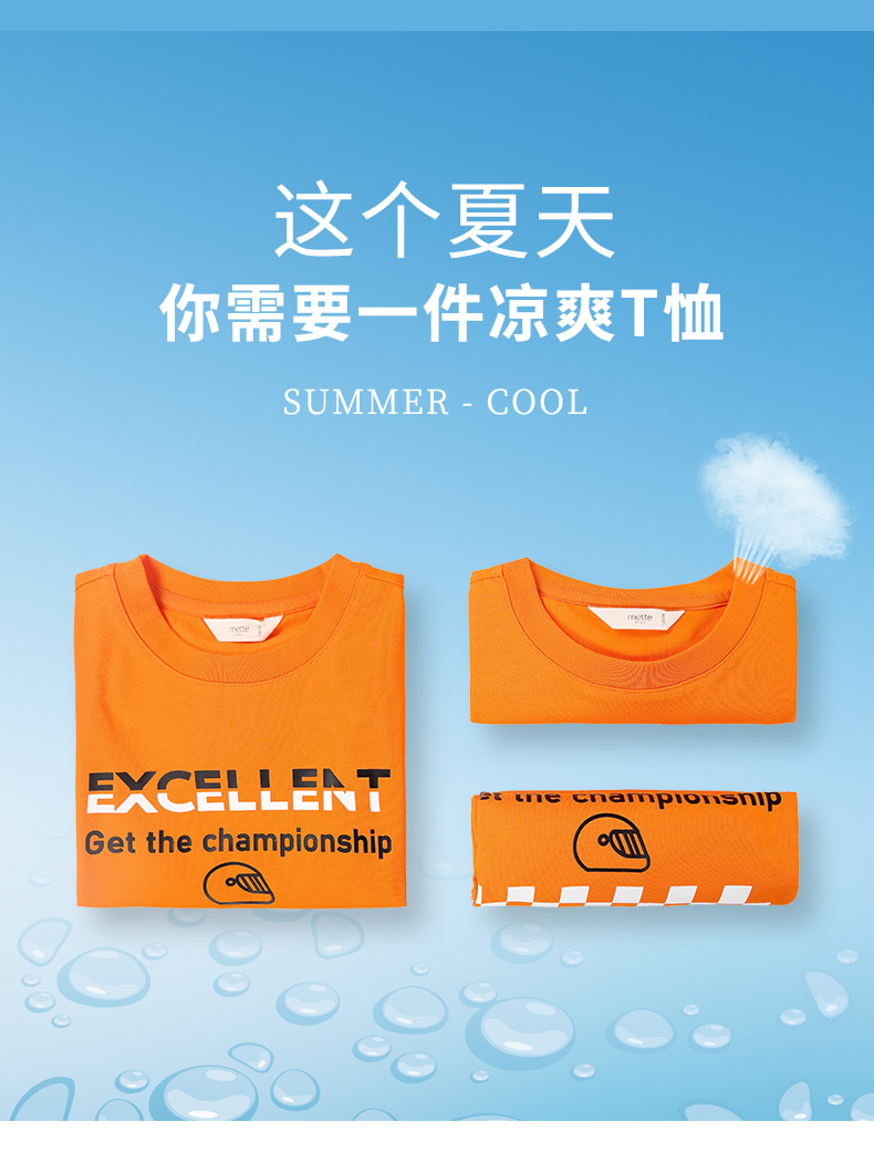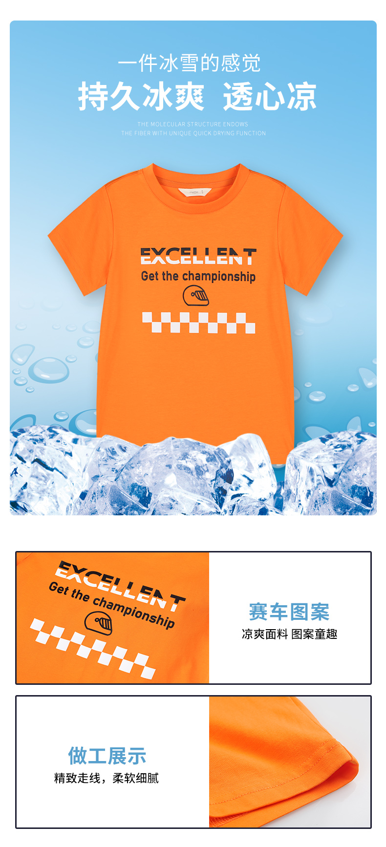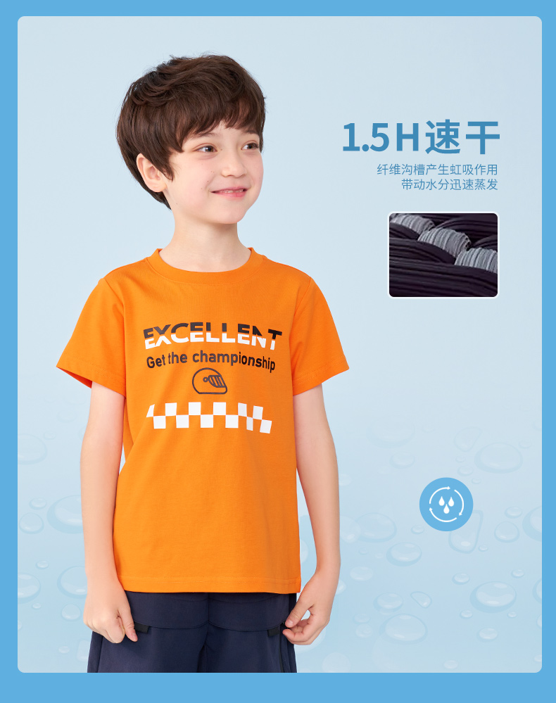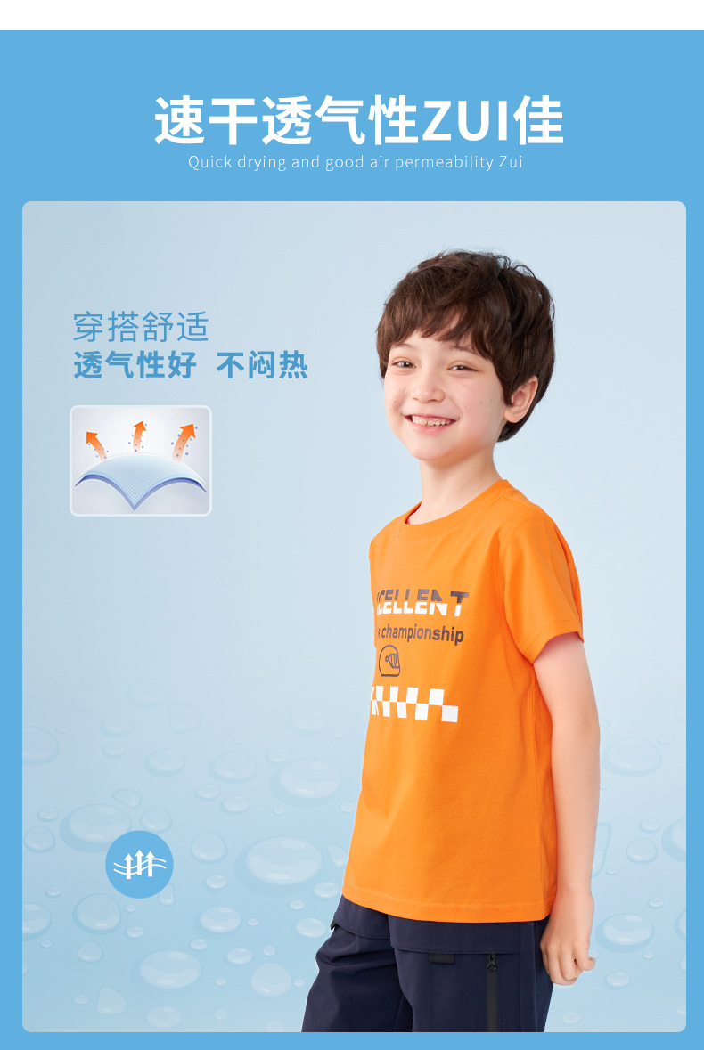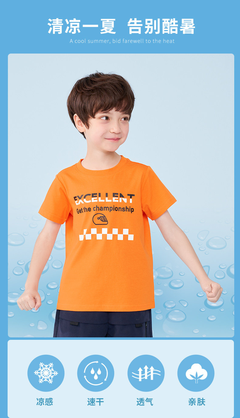 mettekids男童短袖t恤夏季儿童凉感透气童装中大童宽松休闲上衣