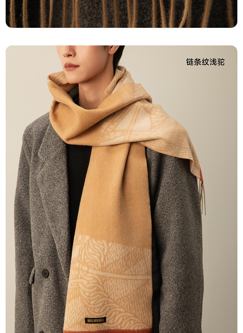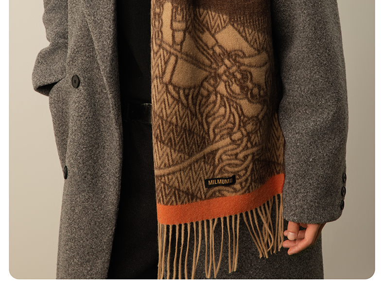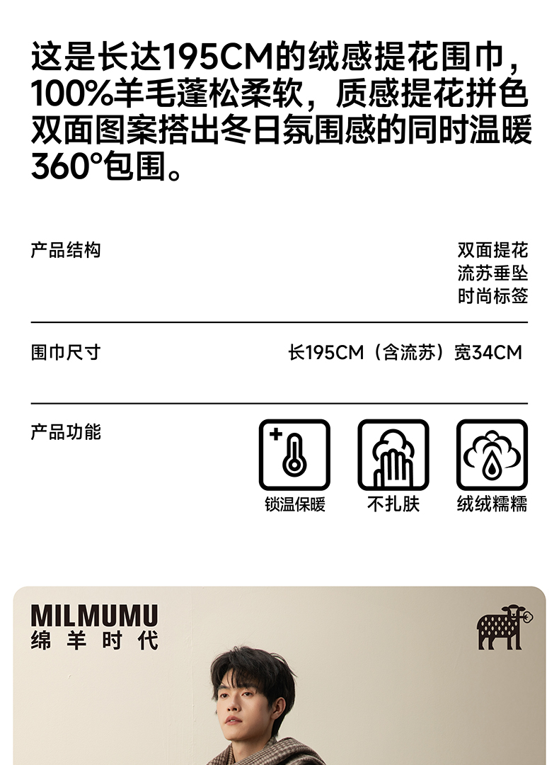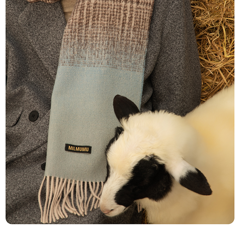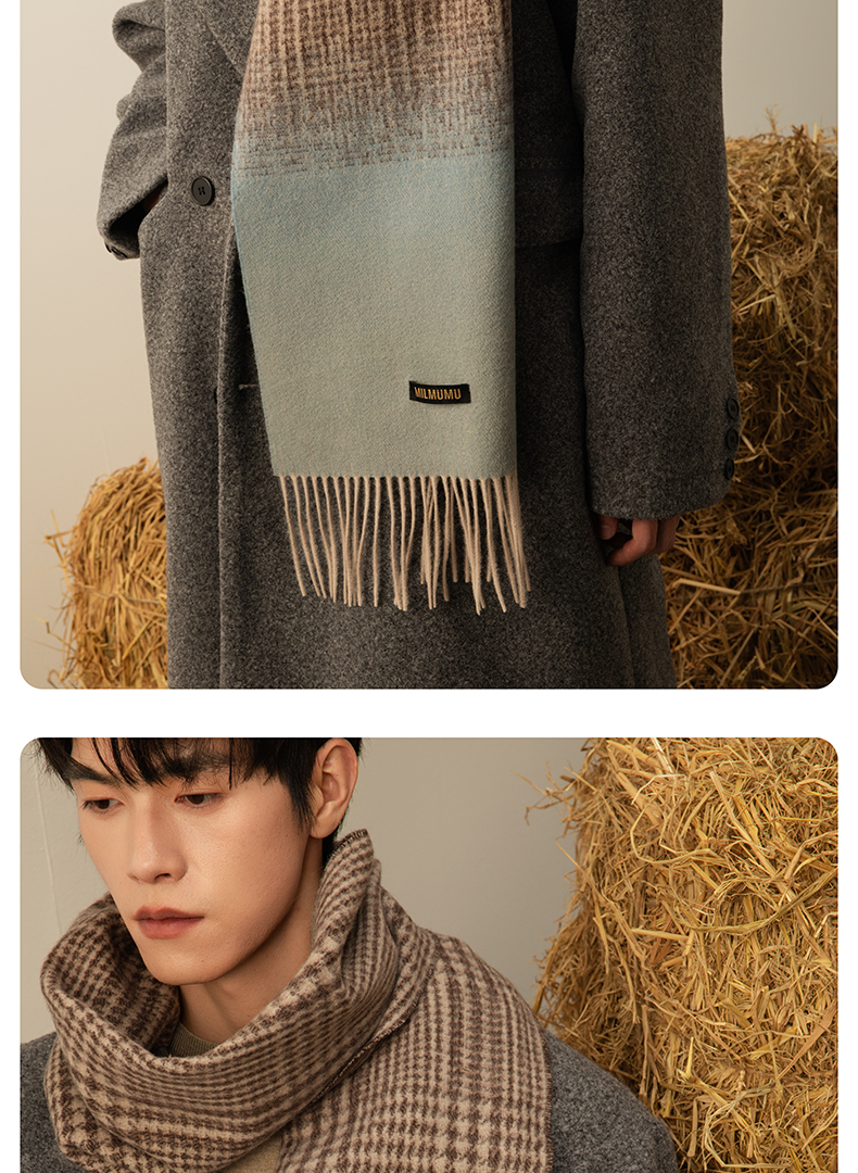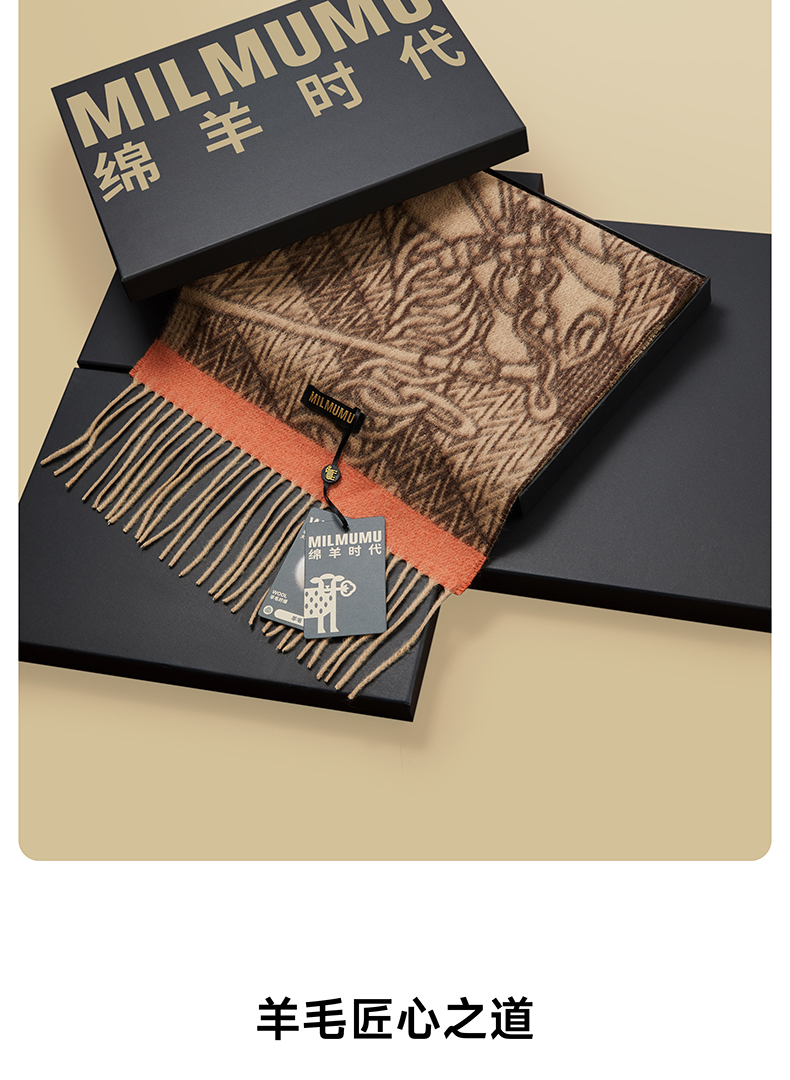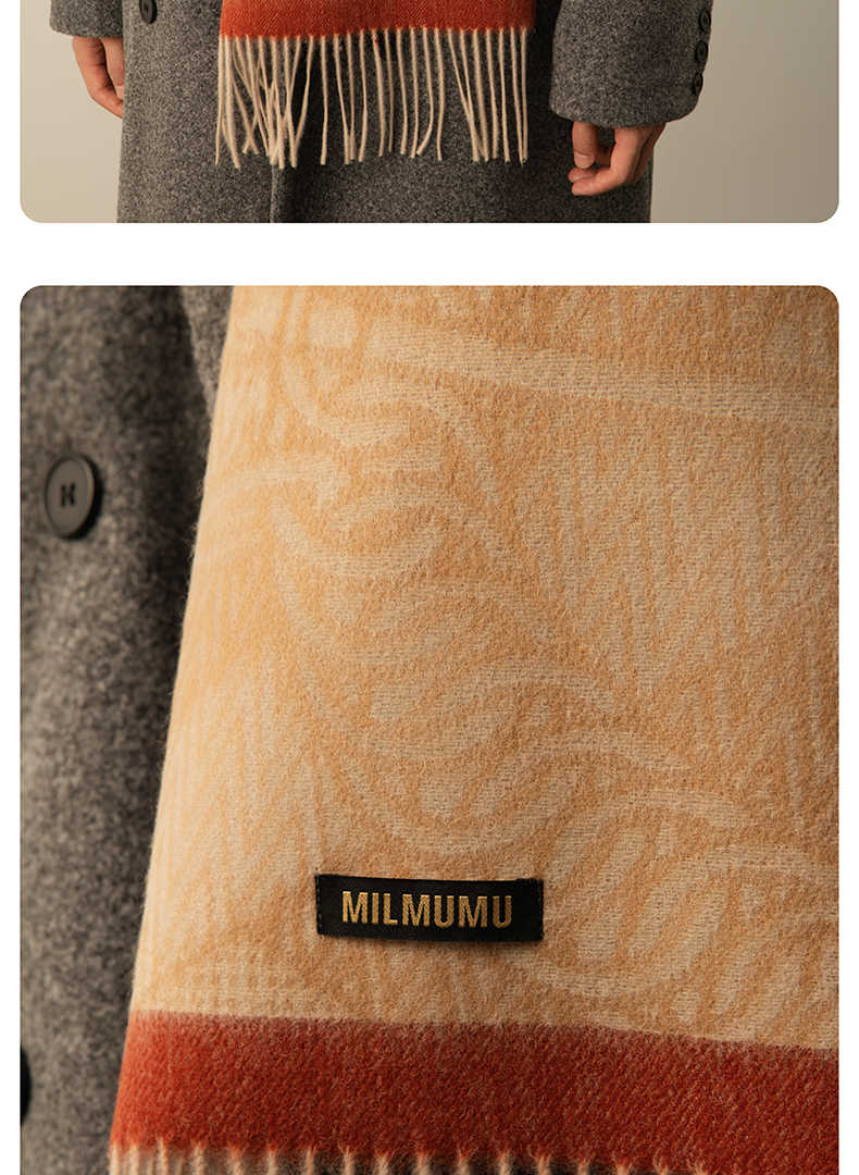 【MILMUMU 绒感提花百分百羊毛围巾】 男女同款礼盒装 195*34CM 质感提花拼色,搭出冬日氛围感
