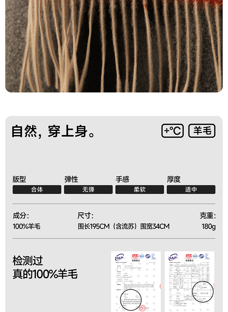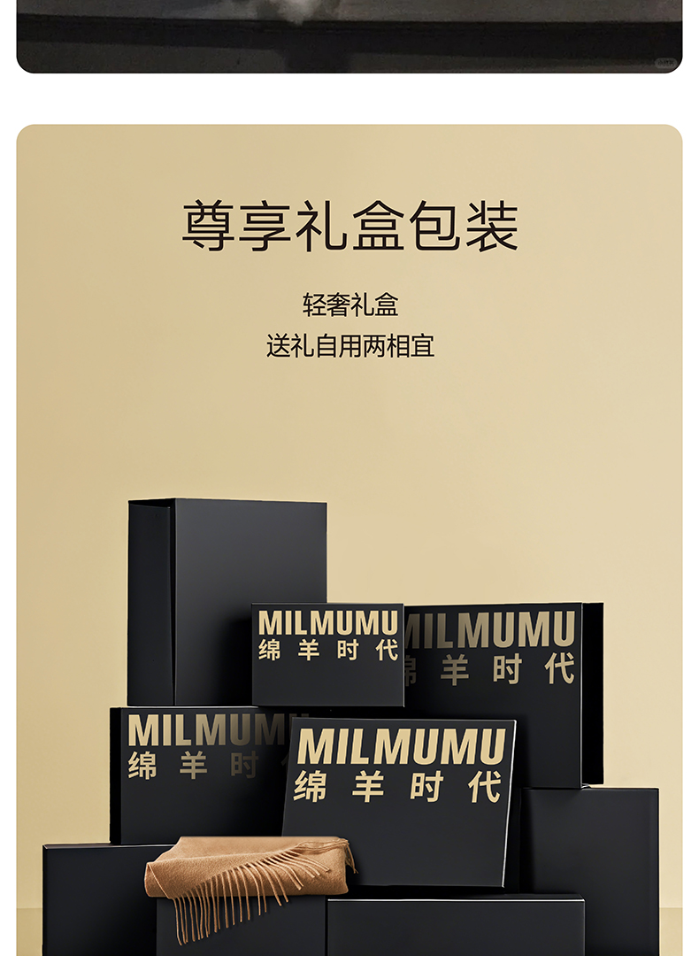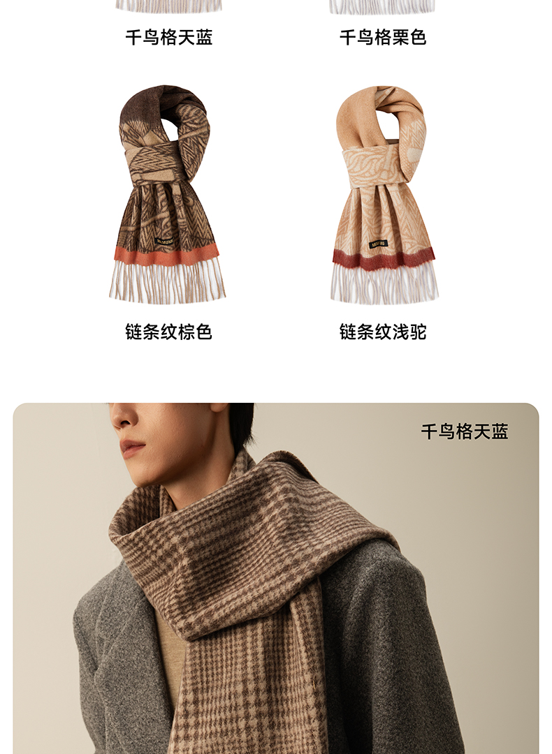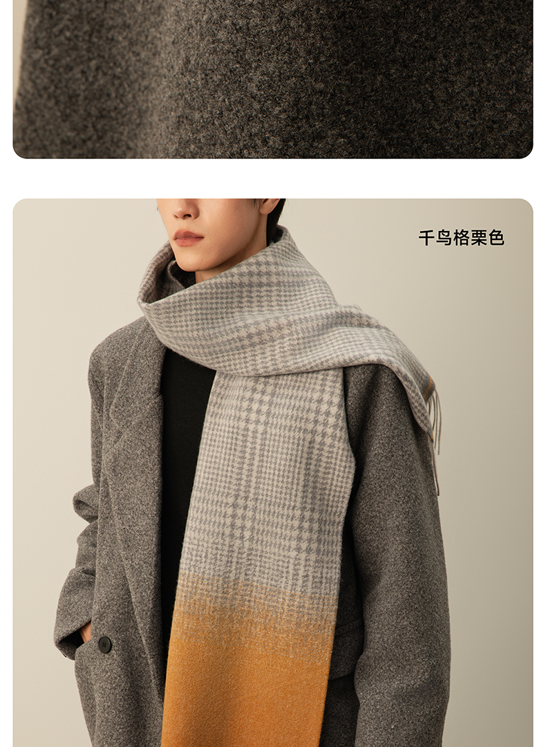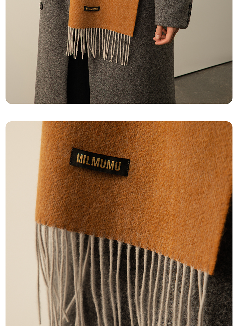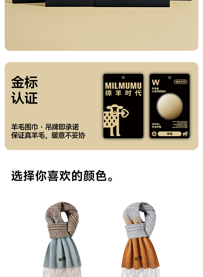 【MILMUMU 绒感提花百分百羊毛围巾】 男女同款礼盒装 195*34CM 质感提花拼色,搭出冬日氛围感