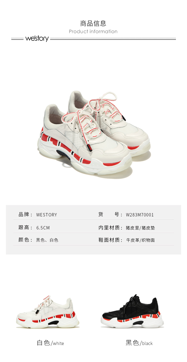 westory2018秋季款小白鞋百女鞋搭厚底老爹鞋休闲鞋W283M70001