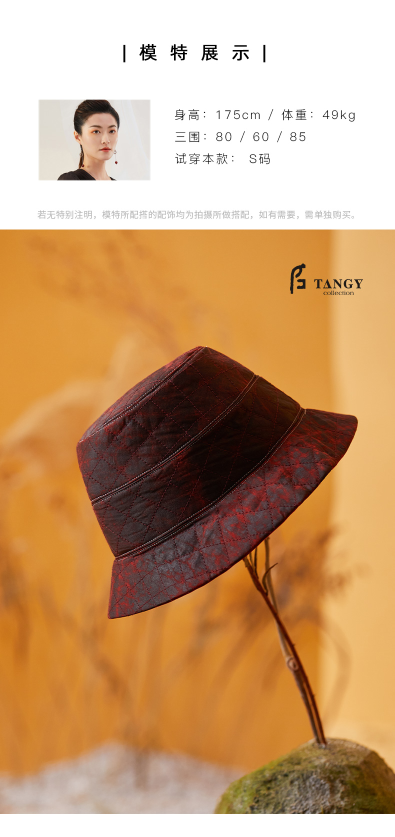 TANGY Collection/天意精品2021年秋冬新品复古龟裂纹莨绸渔夫帽