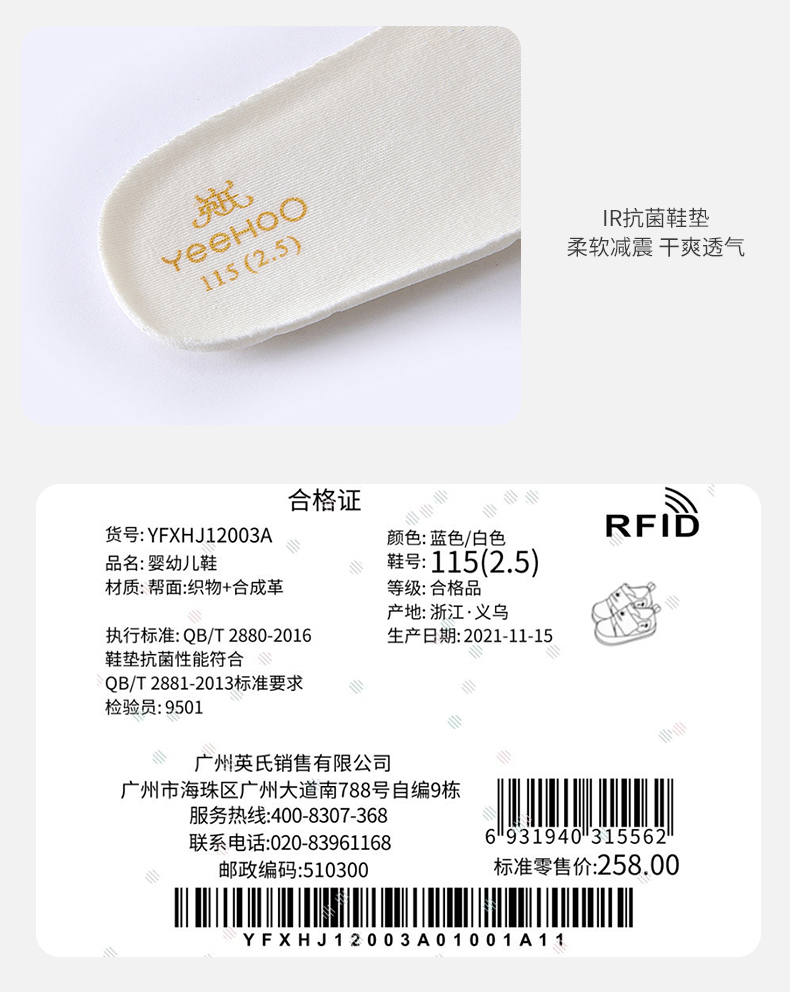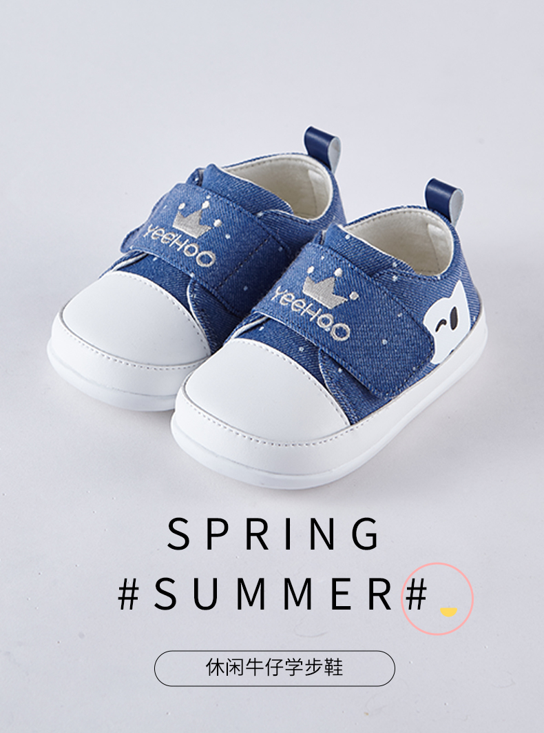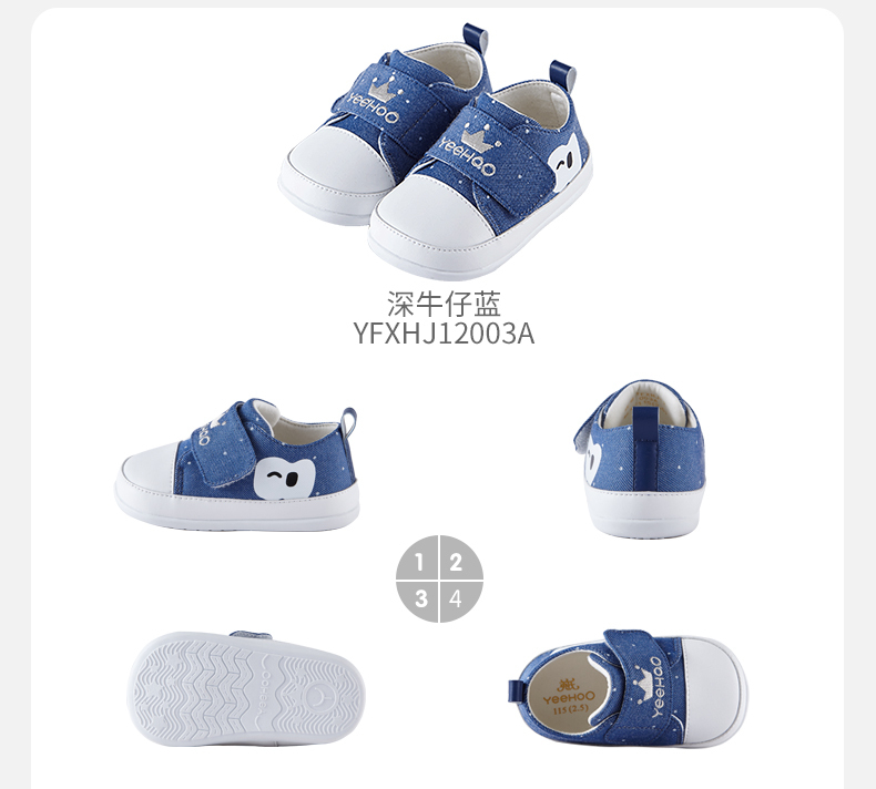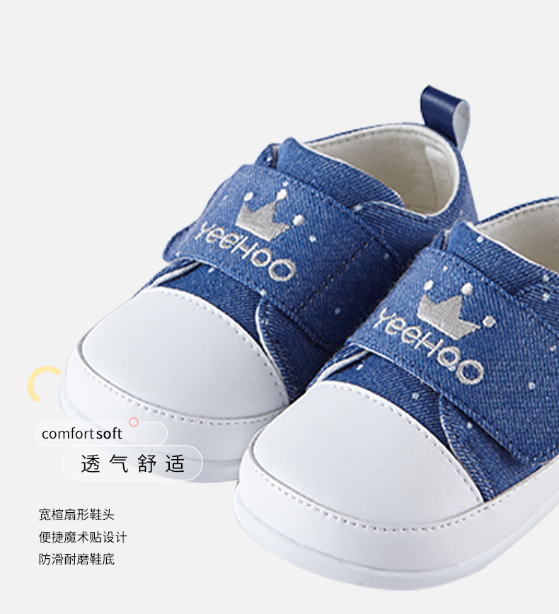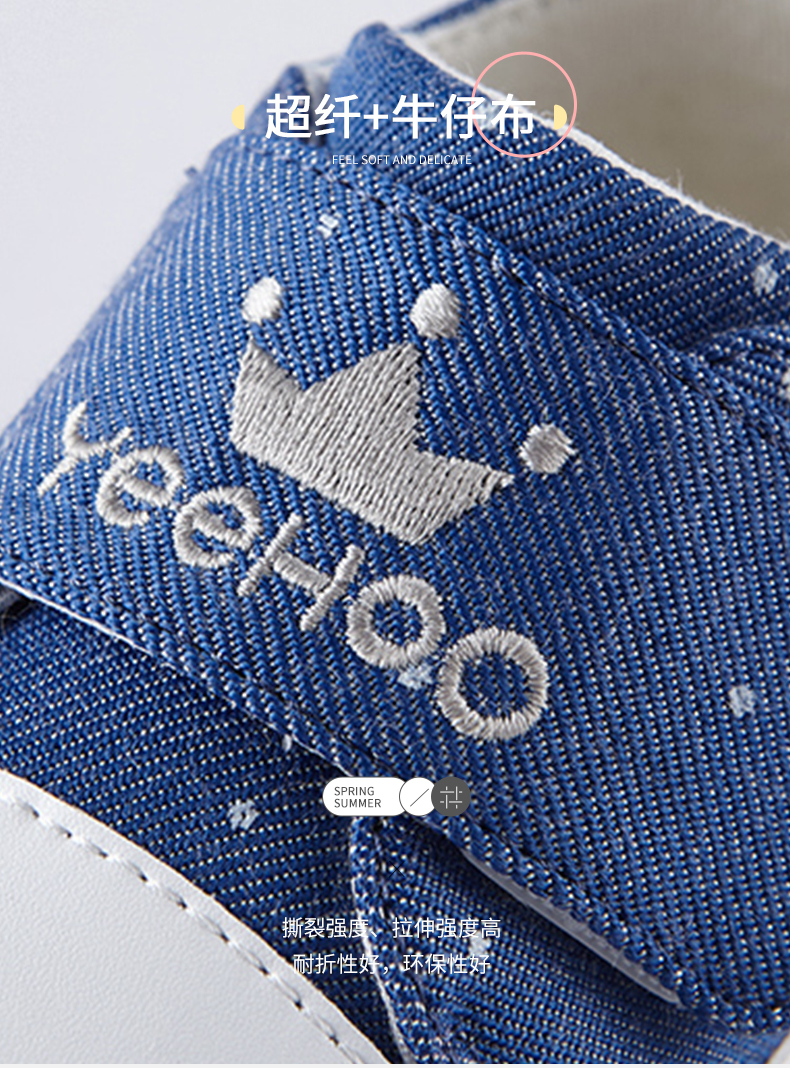英氏童鞋牛仔布鞋魔术贴平底鞋学步鞋22年春新品YFXHJ12003A