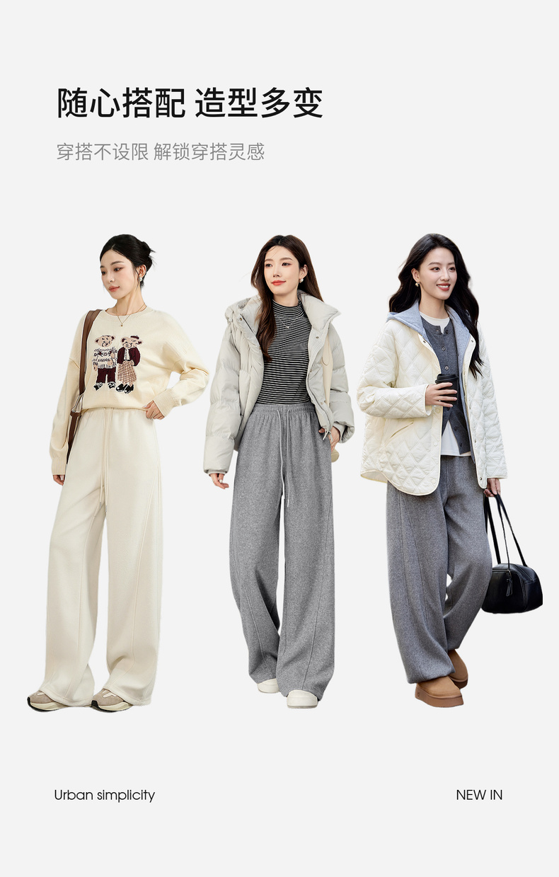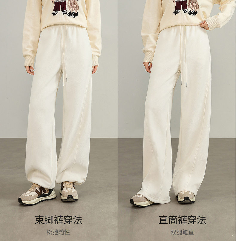 【内购】【两种造型】通勤抽绳松紧腰裤脚可调节抽绳弹力针织直筒裤束脚裤-154K80008