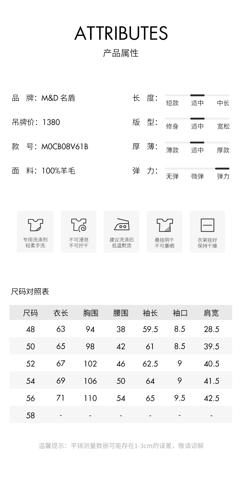 | 品牌: M&D/名盾 | 面料: 纯羊毛(95%以上) |
