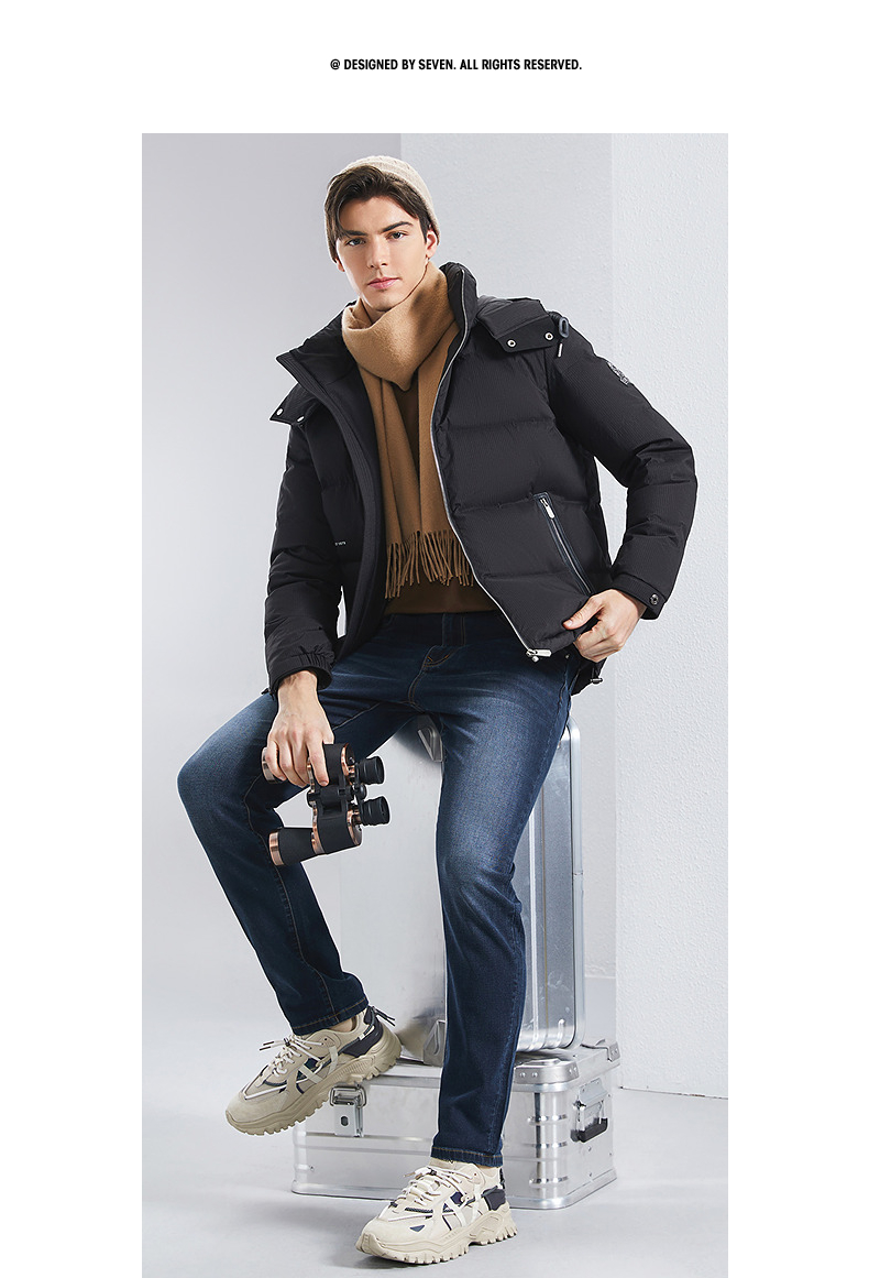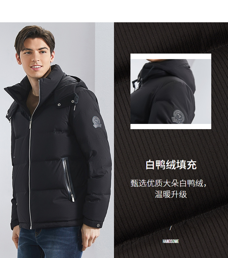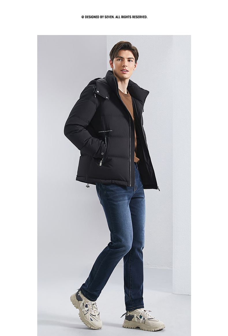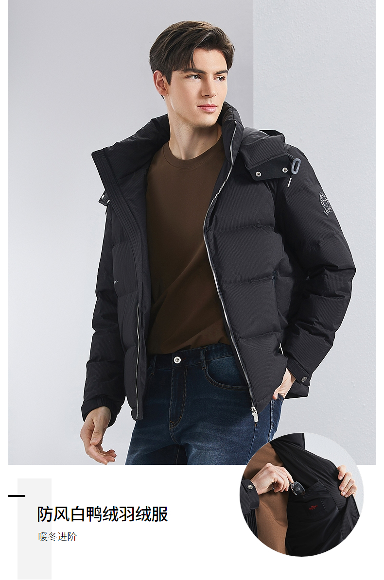 【石墨烯】柒牌可拆连帽羽绒服男2024冬季新款保暖鸭绒防寒厚外套 127E70090