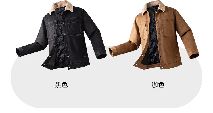 【白鸭绒 羊羔绒领】罗蒙仿麂皮绒羽绒服百搭工装夹克男士羽绒服工装男羽绒服