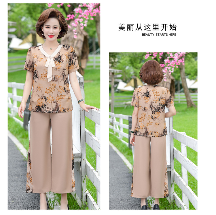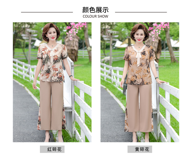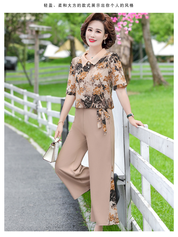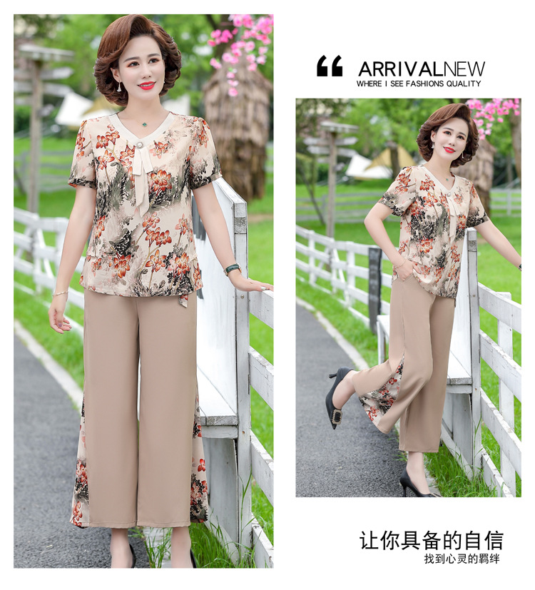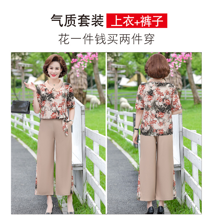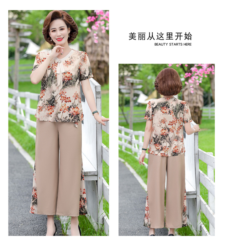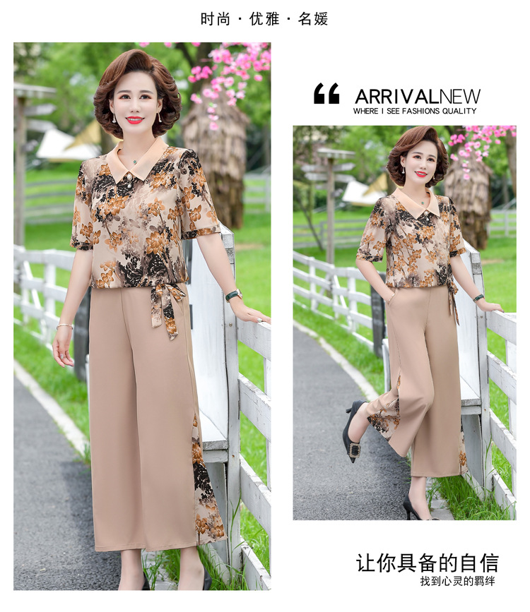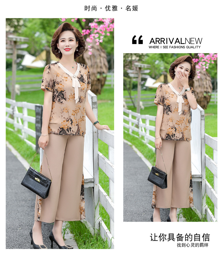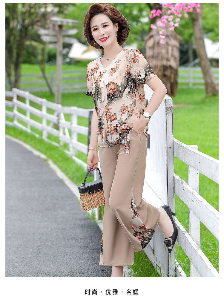 服饰鞋包-夏季新款妈妈装洋气减龄雪纺上衣阔腿裤套装