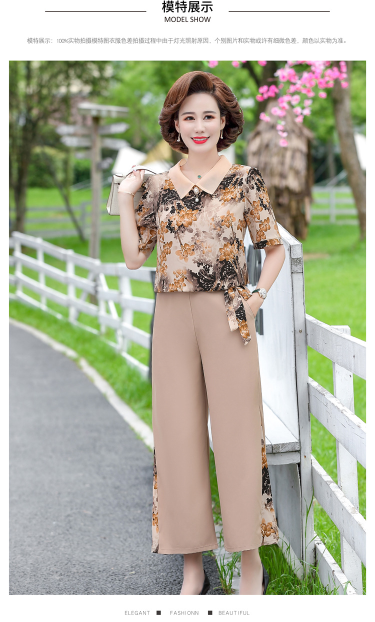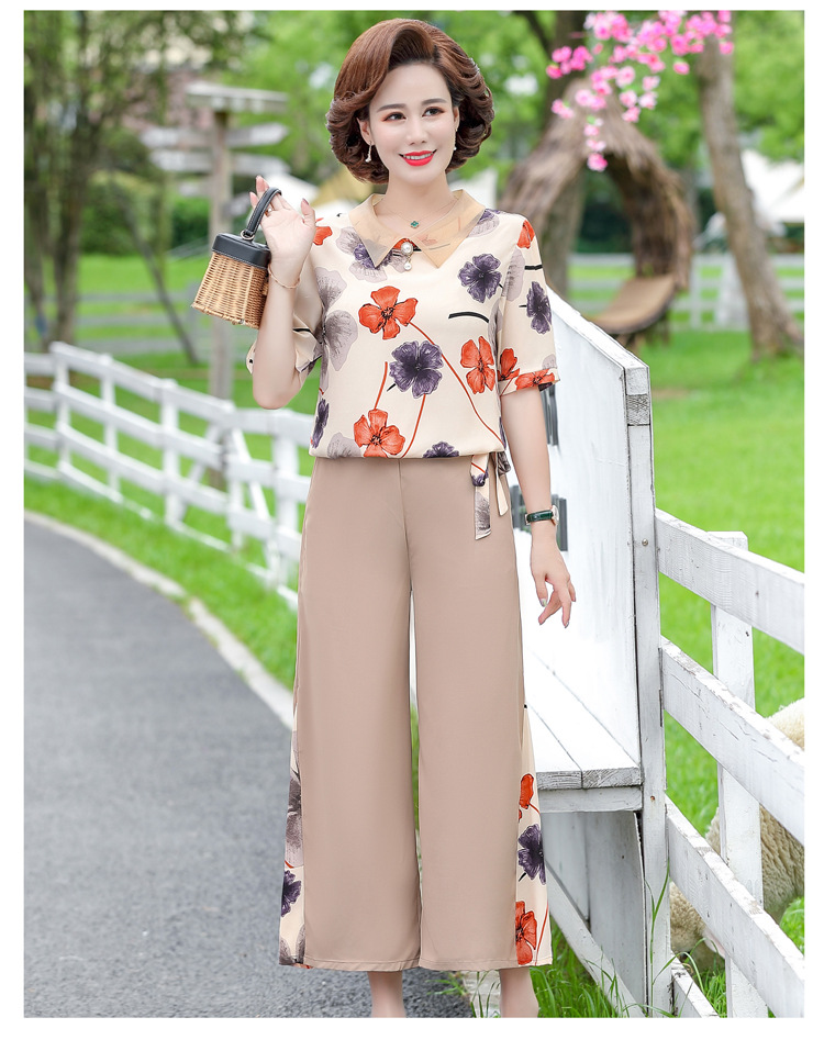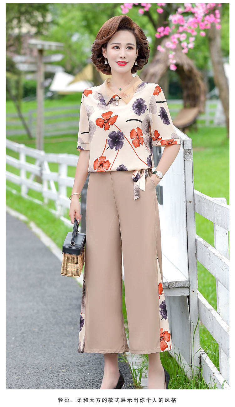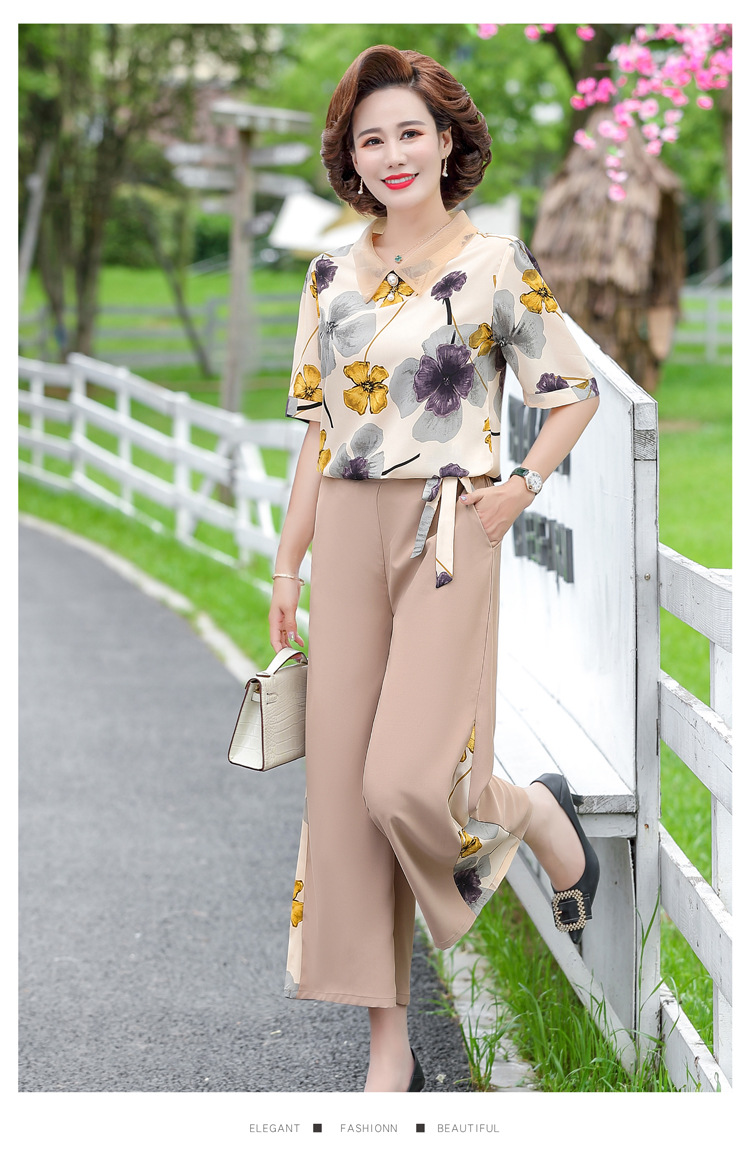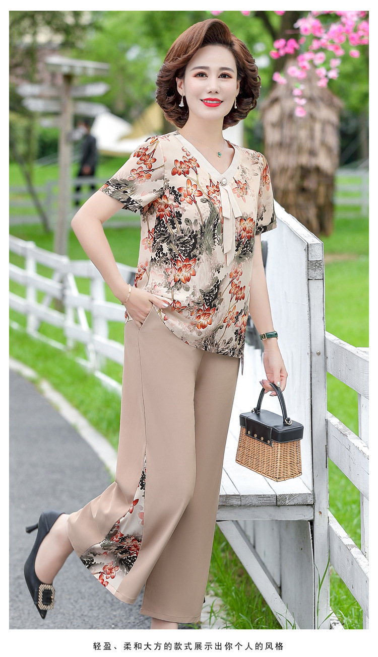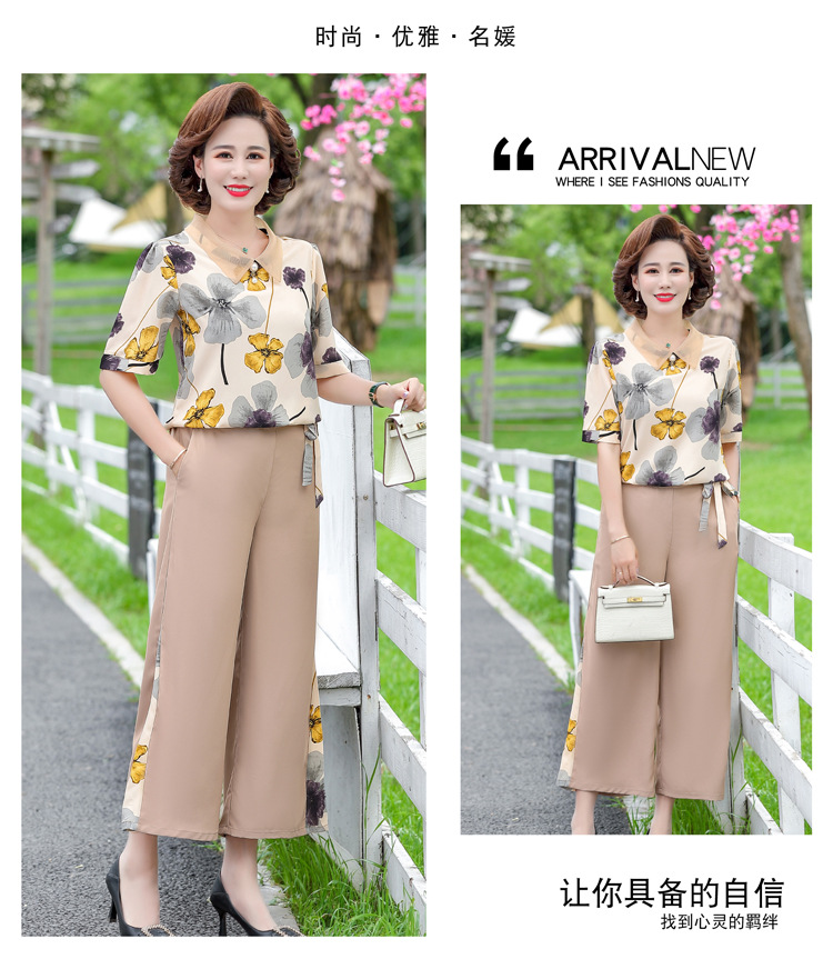 服饰鞋包-夏季新款妈妈装洋气减龄雪纺上衣阔腿裤套装