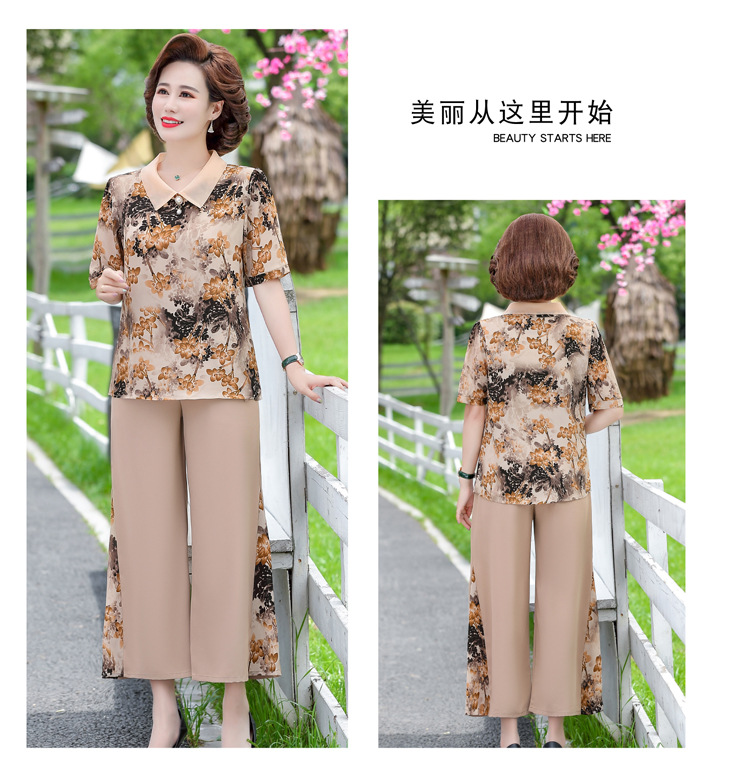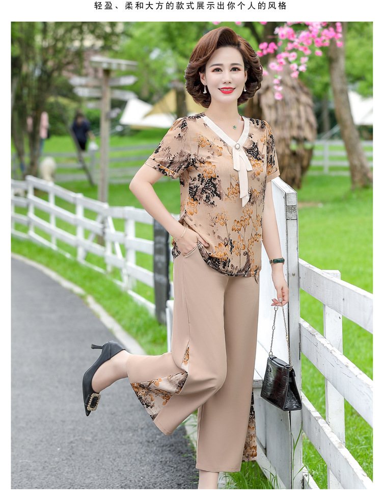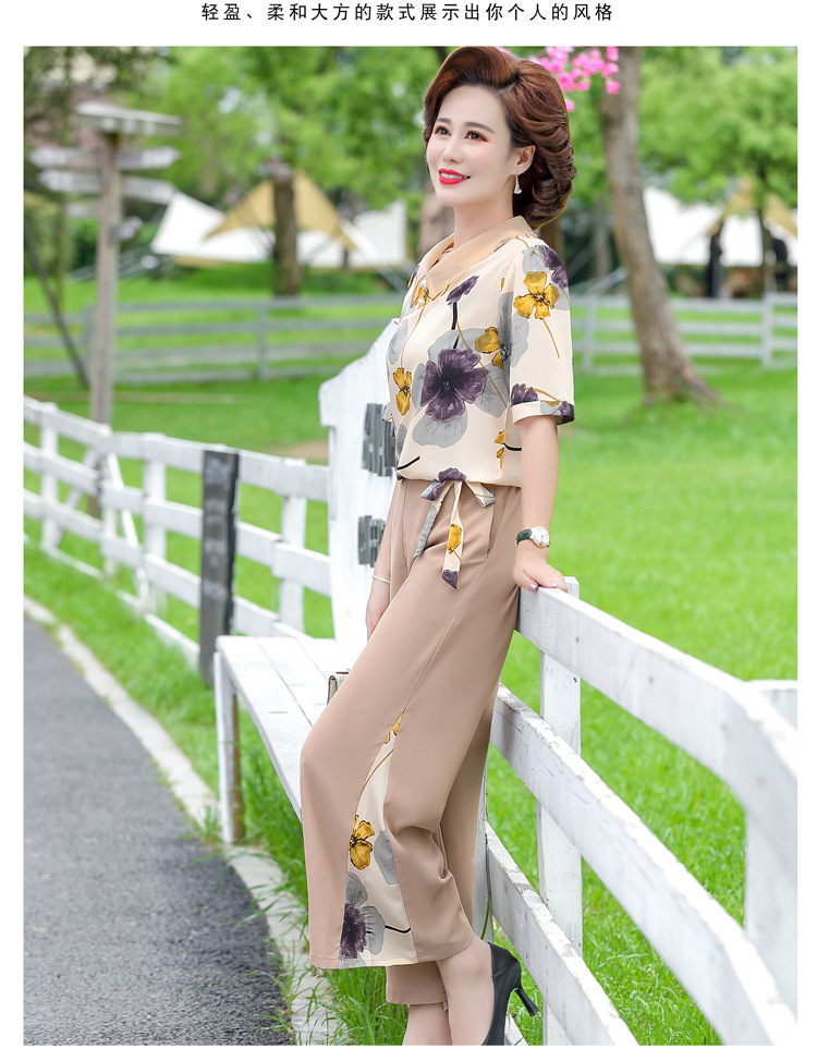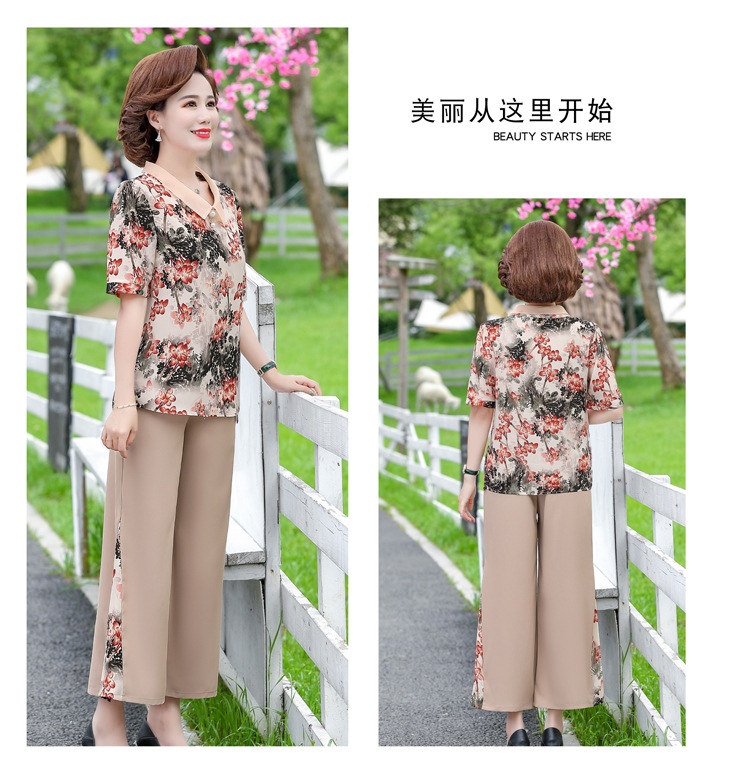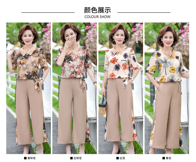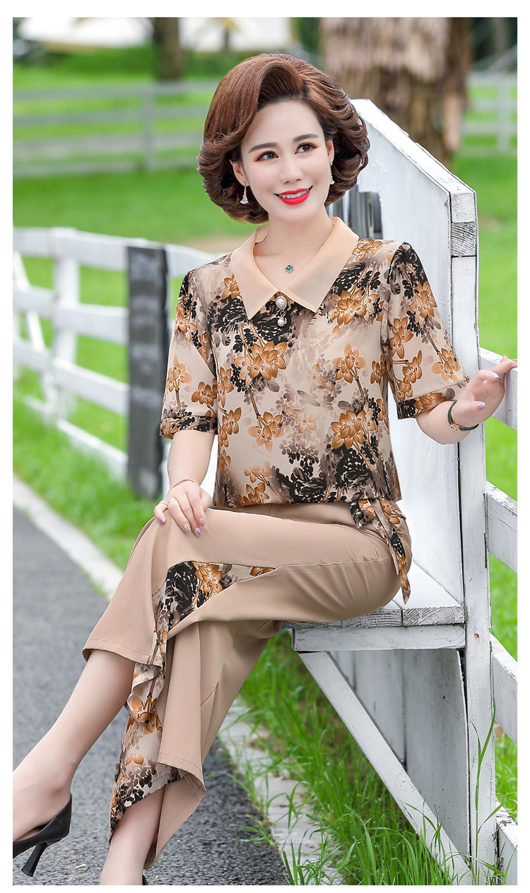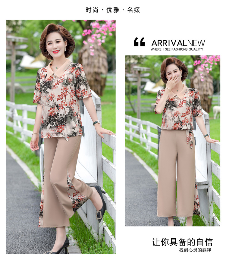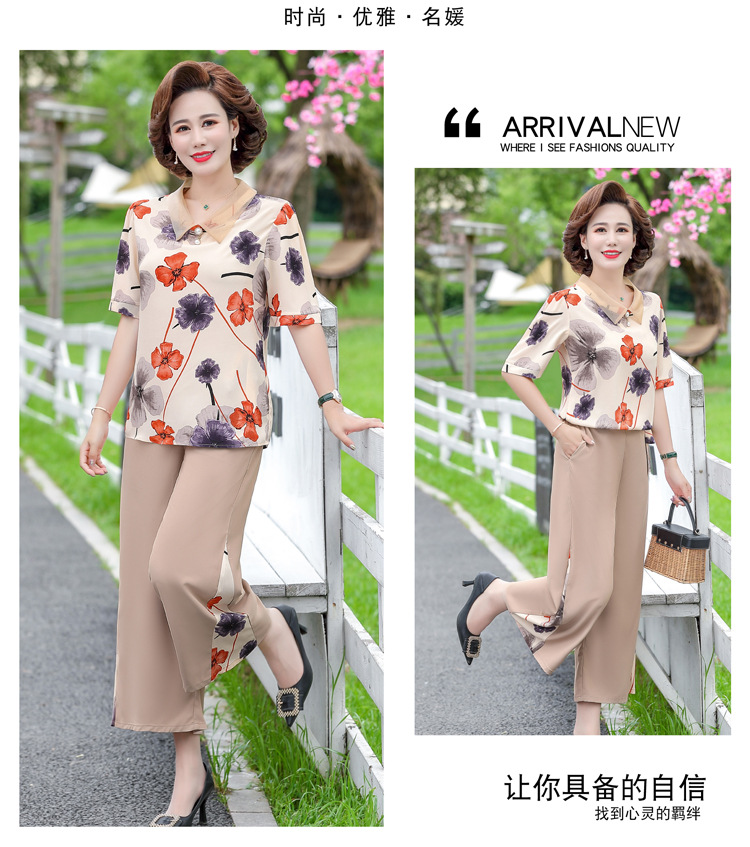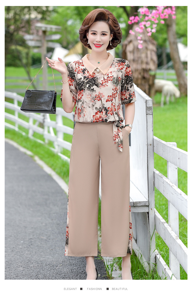 服饰鞋包-夏季新款妈妈装洋气减龄雪纺上衣阔腿裤套装