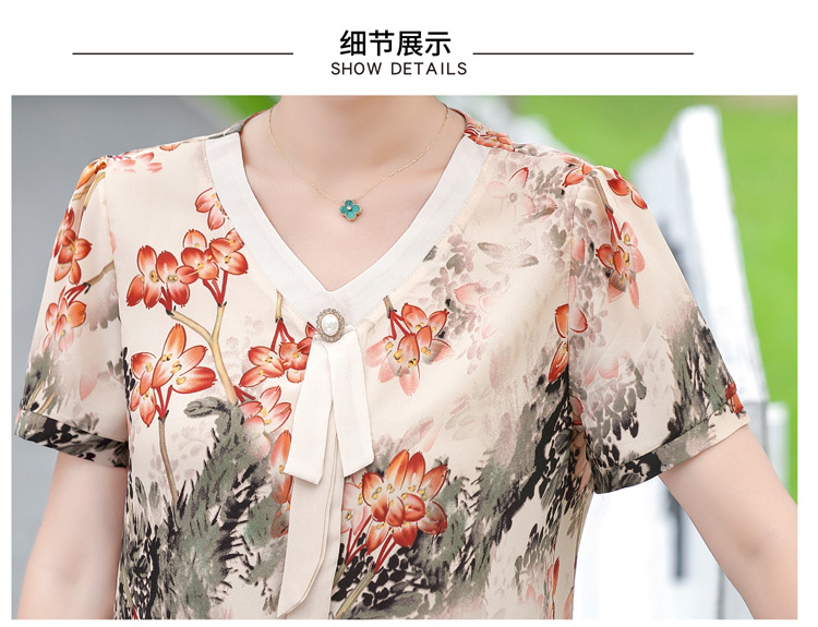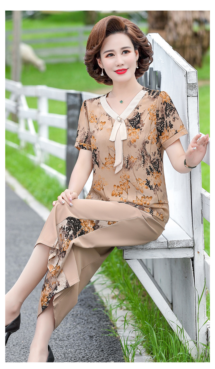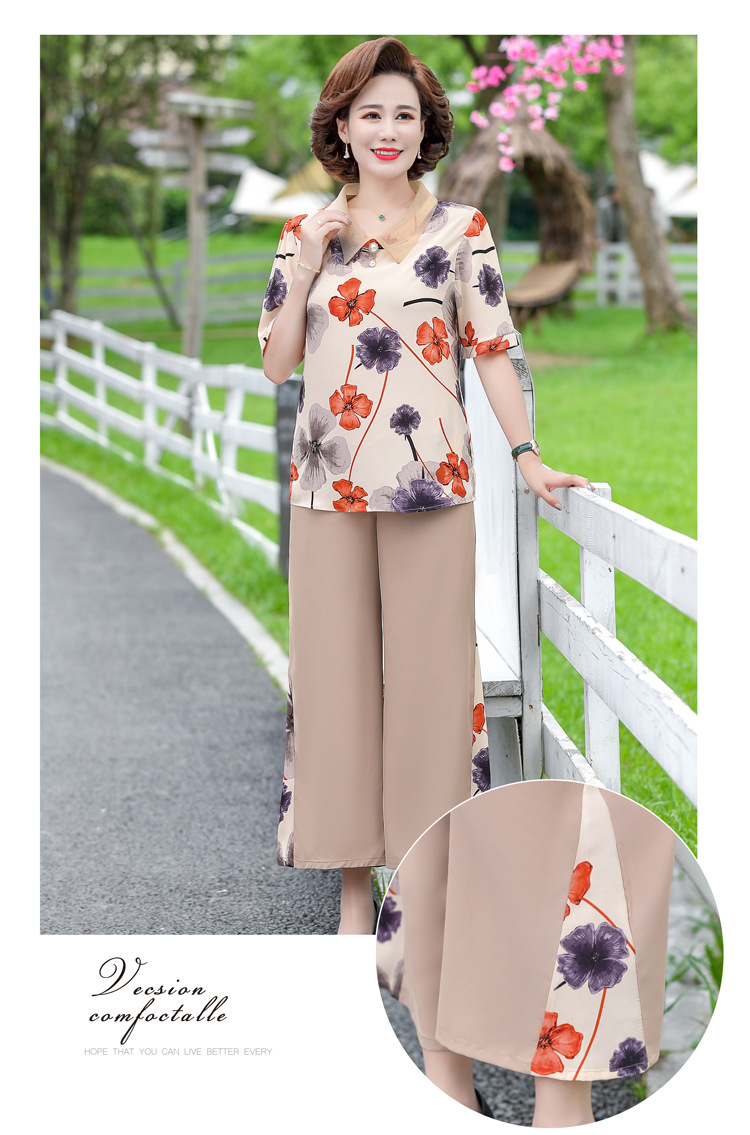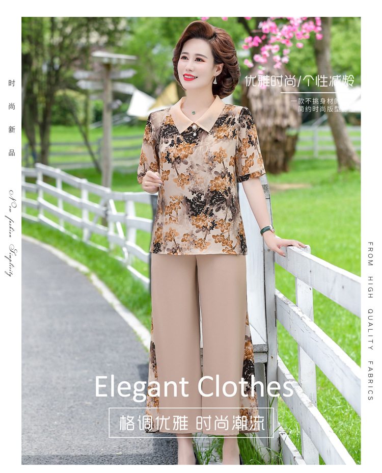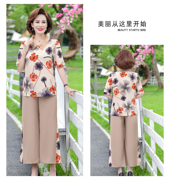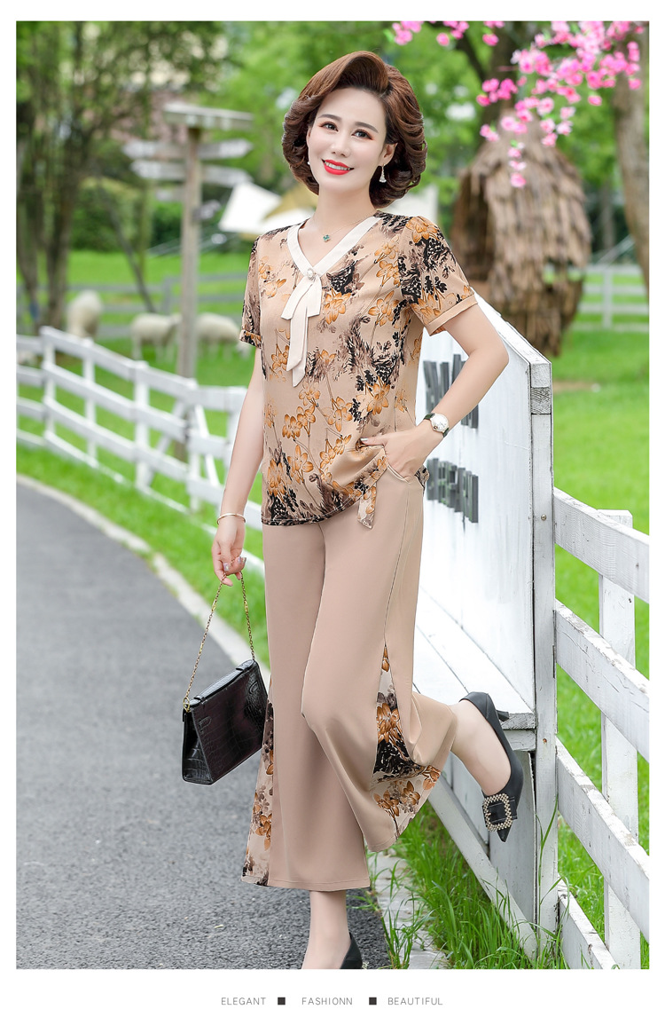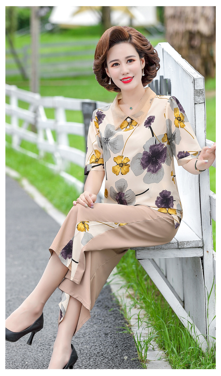 服饰鞋包-夏季新款妈妈装洋气减龄雪纺上衣阔腿裤套装