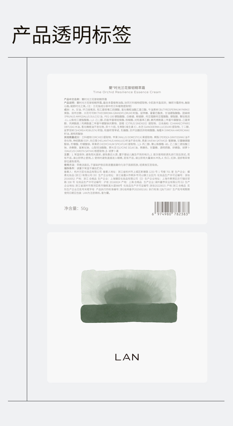 LAN兰时光兰花冷霜50G DAN纹修护保湿KAN皱补水滋润面霜