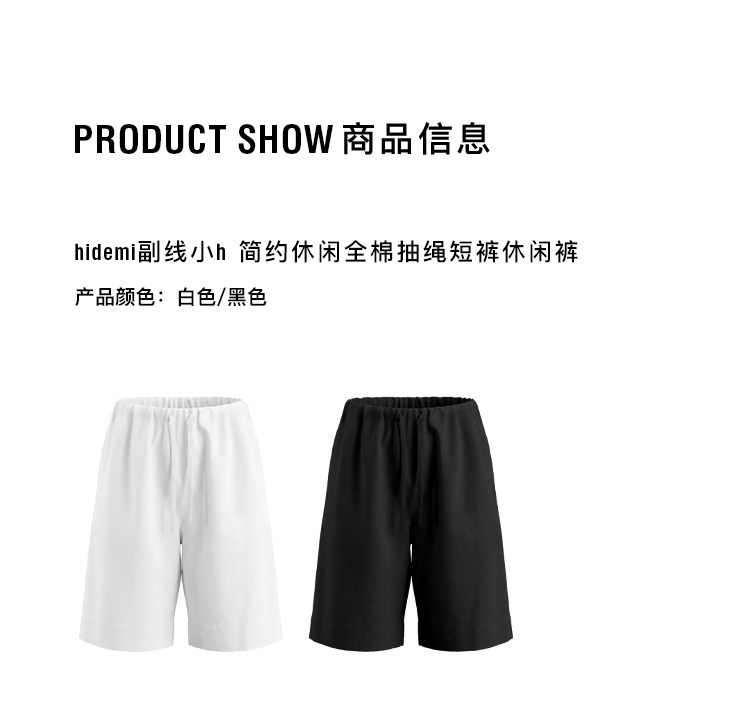 hidemi副线小h 简约休闲全棉抽绳短裤休闲裤