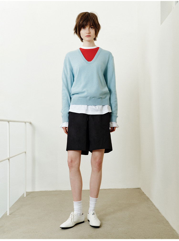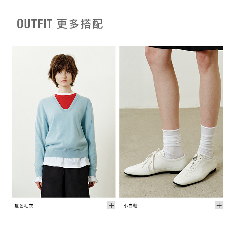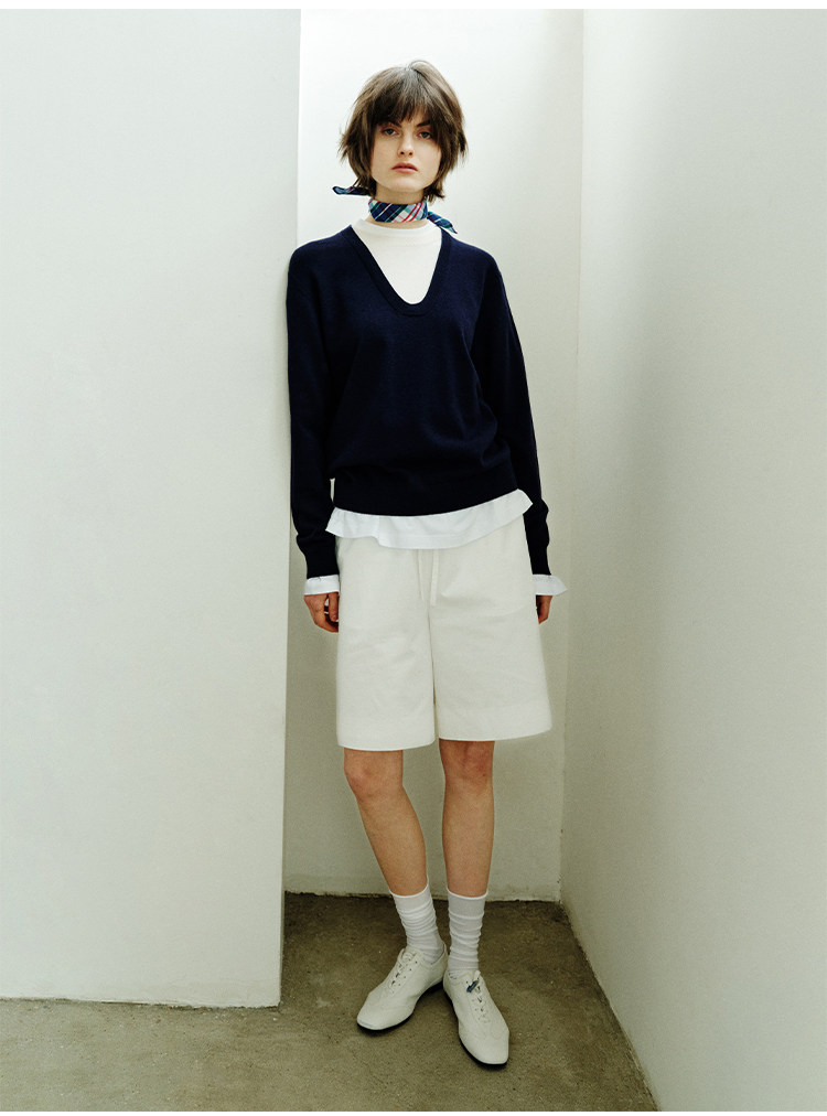 HIDEMI 美利奴羊毛绞花V领背心 原白色/藏蓝色