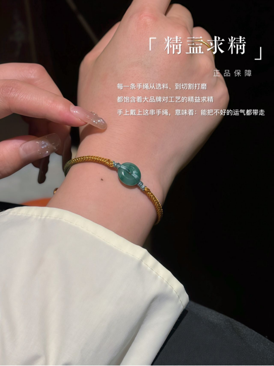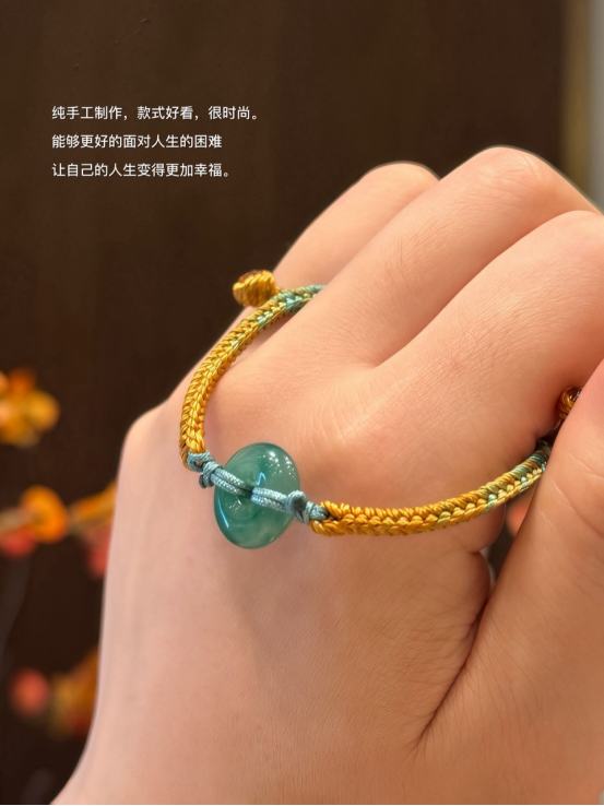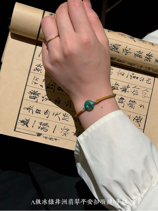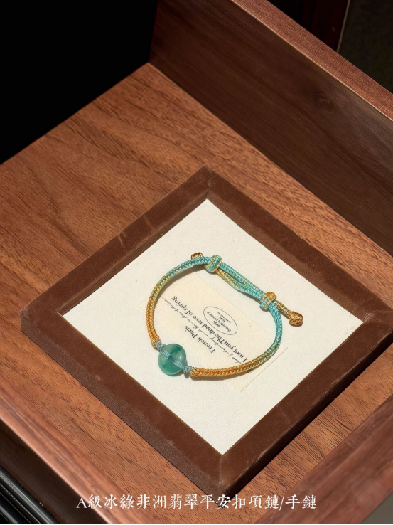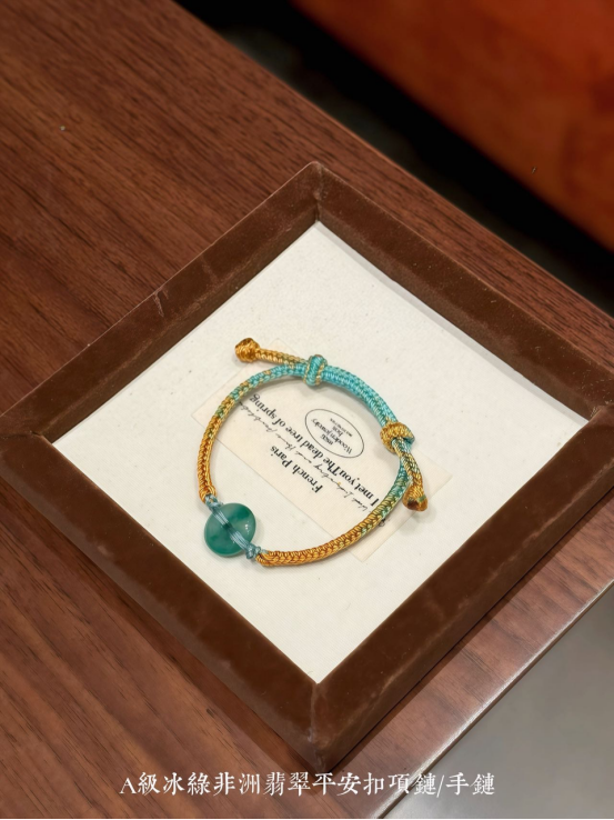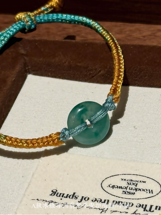 ③A级冰绿非洲翡翠平安扣古法手编手链