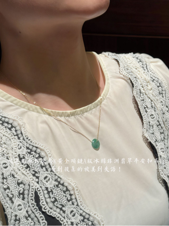 ②K黄金项链A级冰绿非洲翡翠平安扣吊坠