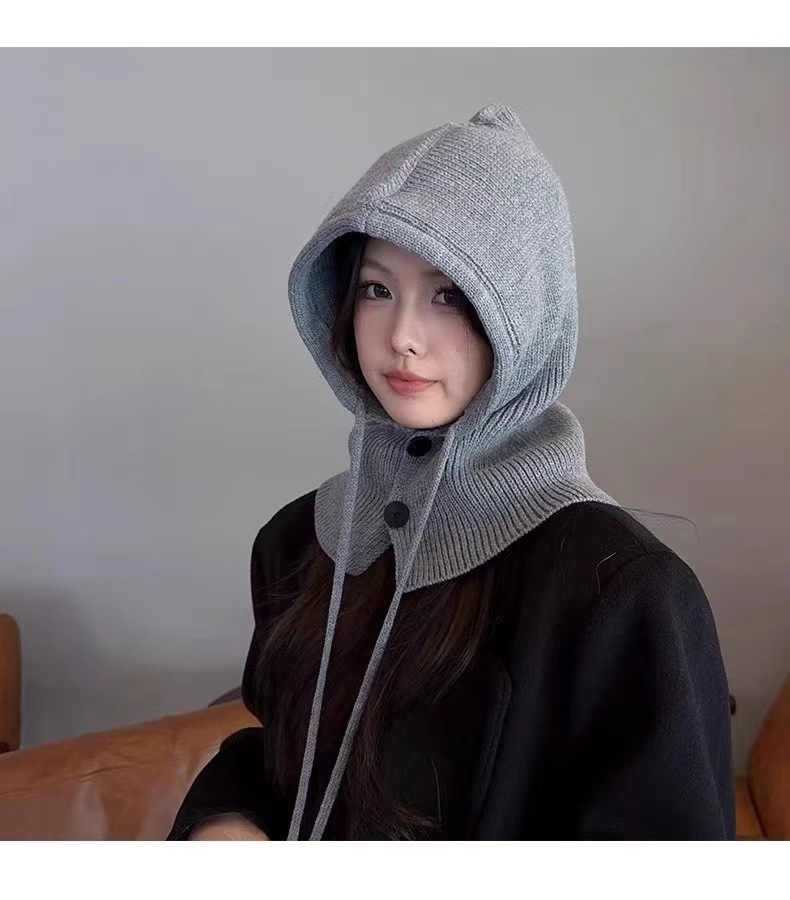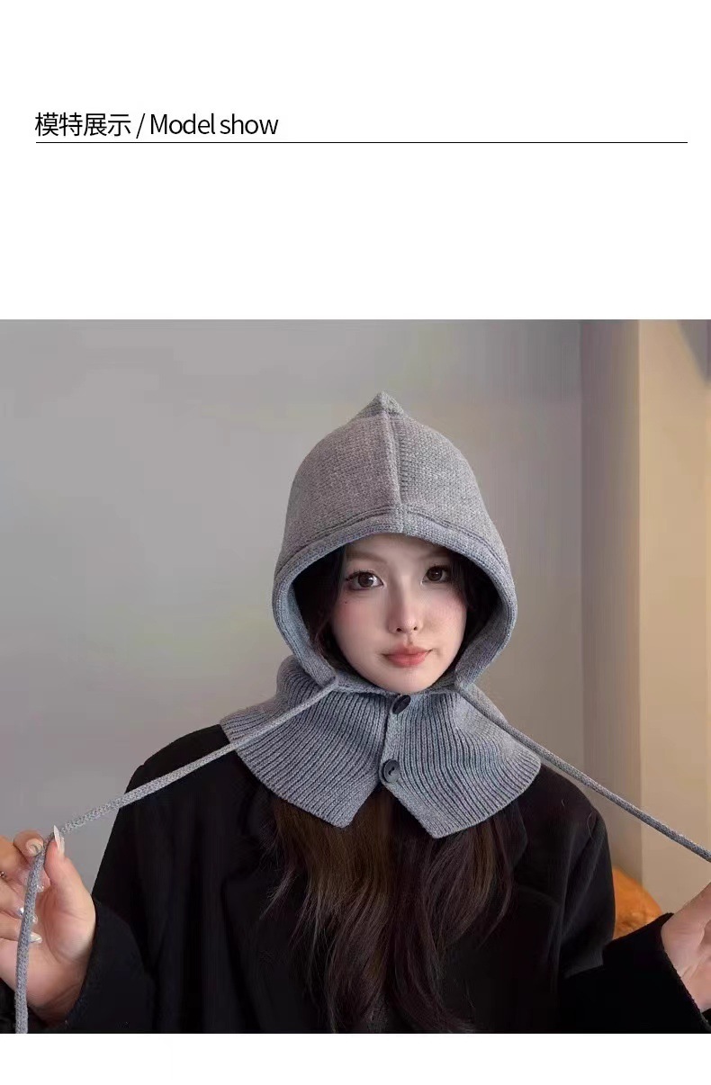 【百搭显脸小!披肩一体帽】毛绒绒的,脖颈双纽扣,可自由拆解,穿戴更方便,围脖一体帽子女秋冬季保暖护耳毛线针织帽新款。rc