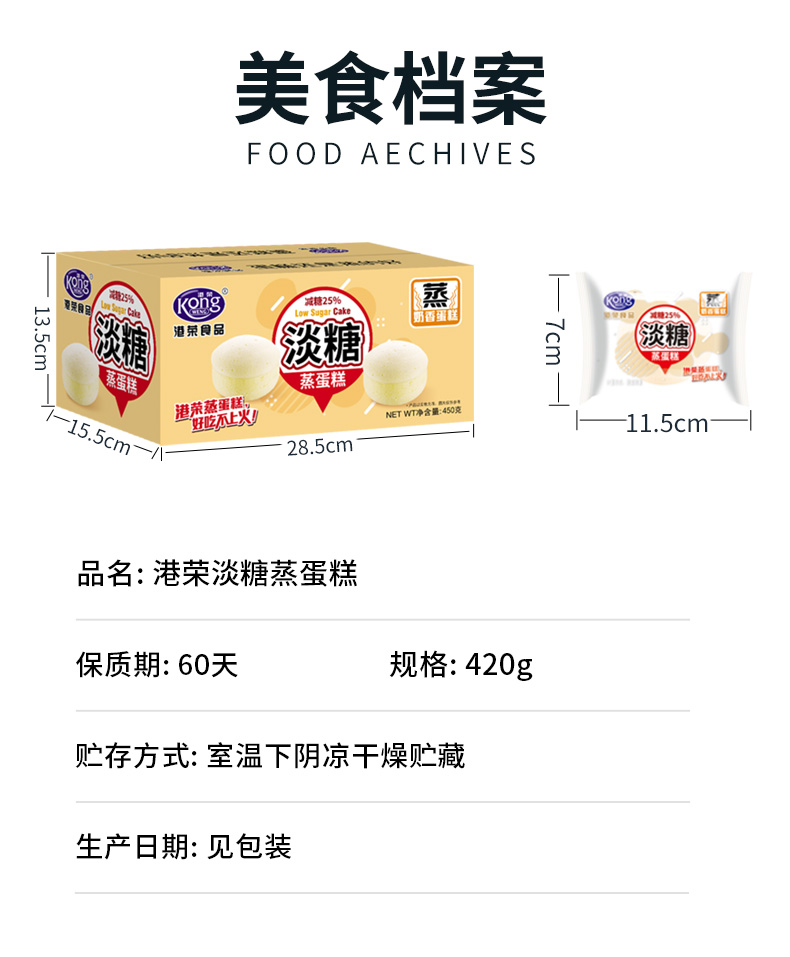 港荣淡糖蒸蛋糕两件组合减糖网红代餐零食小吃面包早餐整箱营养健康糕点心