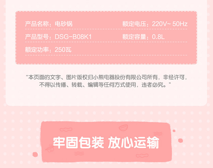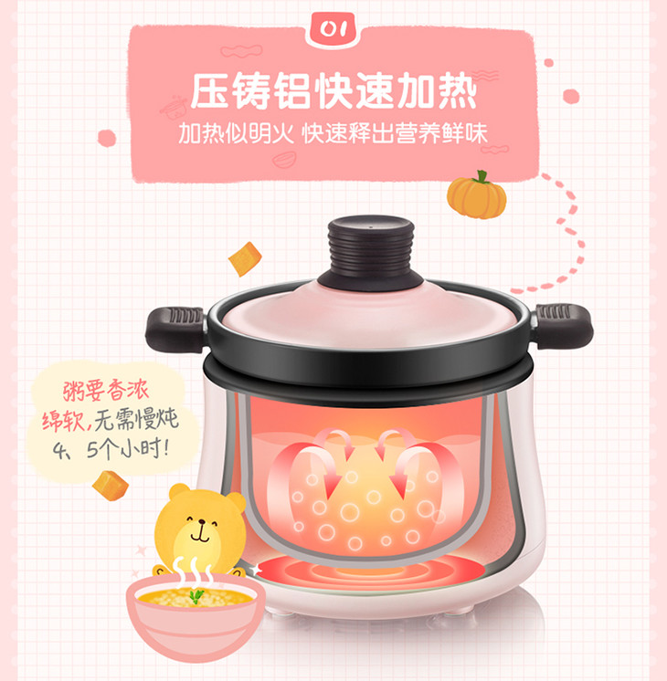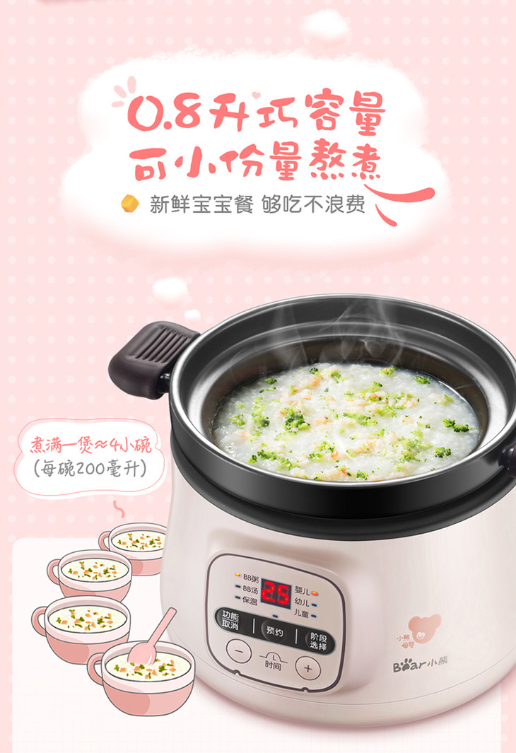 小熊(Bear)婴儿辅食锅 多功能BB煲 电炖锅 婴儿电粥锅 电砂锅 宝宝辅食煮粥锅 陶瓷内胆智能预约 DSG-B08K1