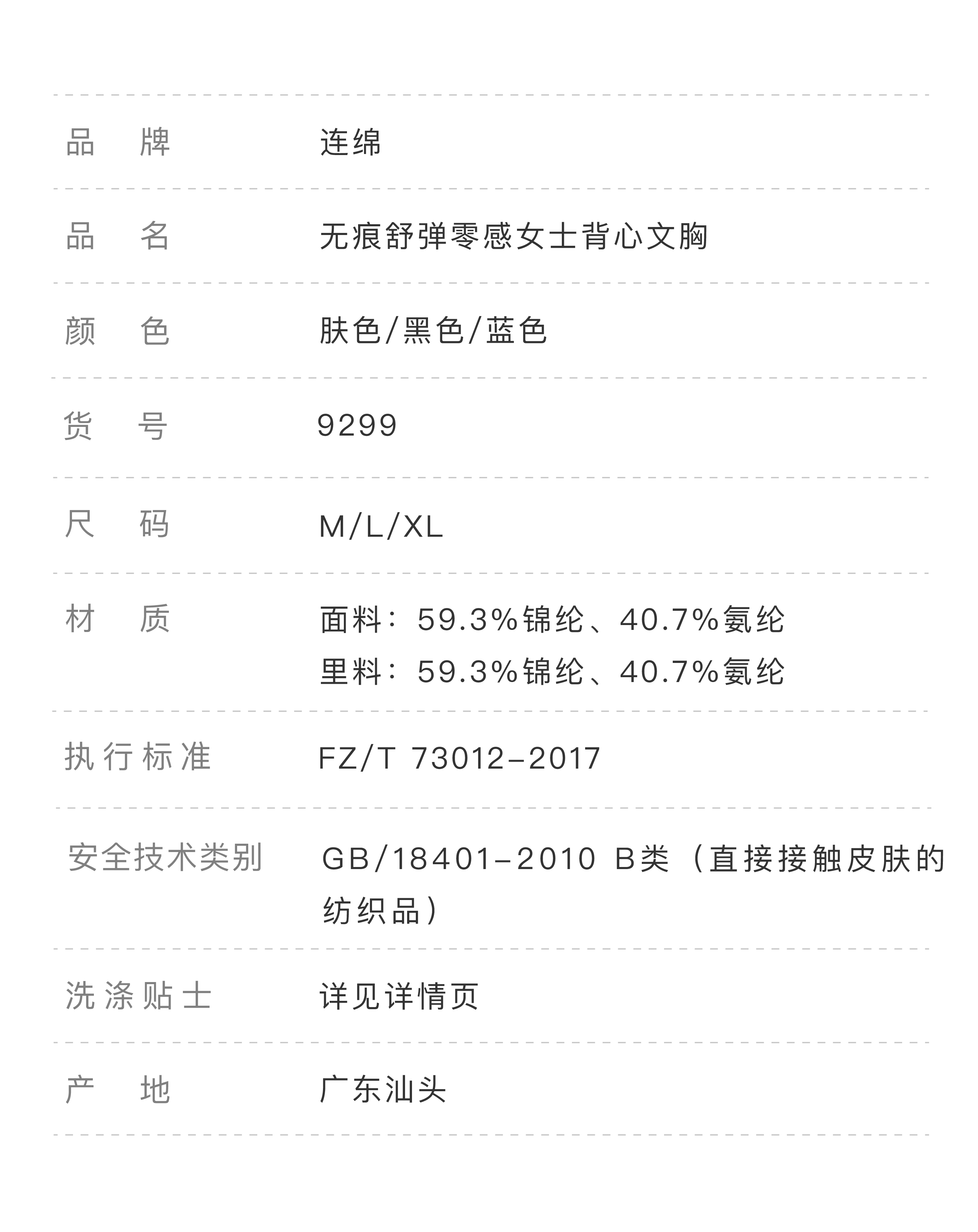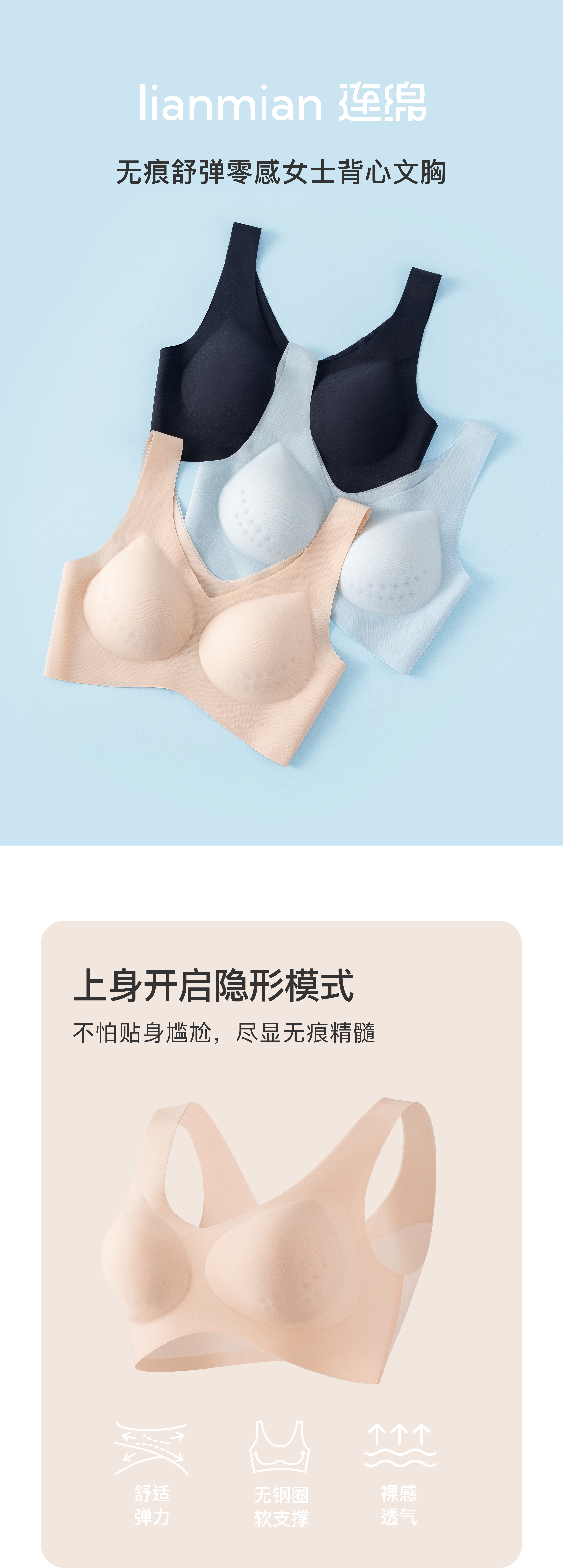 连绵·无痕舒弹零感女士背心文胸 9299